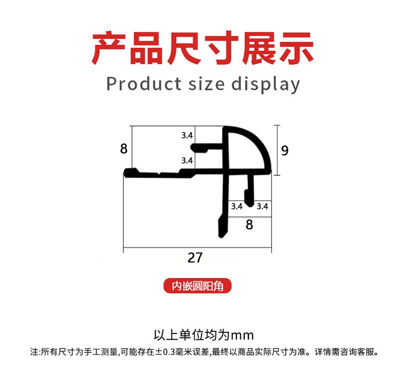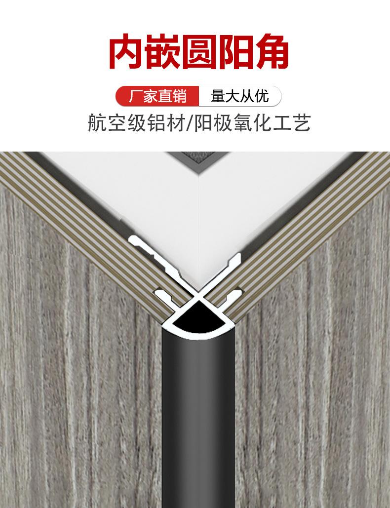 Faixa de fechamento de canto redondo de liga de alumínio painel de parede folheado de madeira linha de canto placa de cristal de carbono canto macho embutido faixa de fechamento de canto macho
