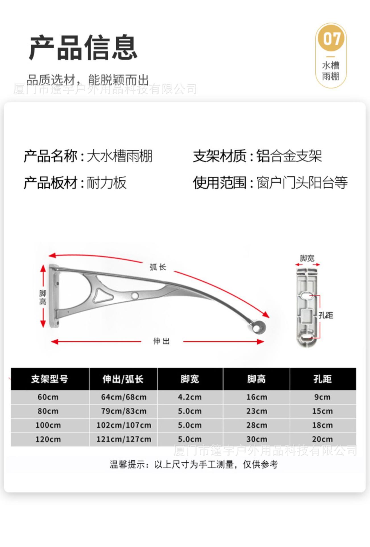Suporte de liga de alumínio, toldo, pia grande, guarda-sol, chuva, varanda, beirados, pátio, janela externa, fábrica, atacado
