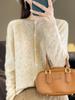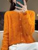 Cardigã Feminino 100% Lã Pura, Suéter Casaco para Mulheres, Suéter de Lã de Gola Redonda Curto para Outono e Inverno 2024, Elegante e Adequado para o Dia a Dia