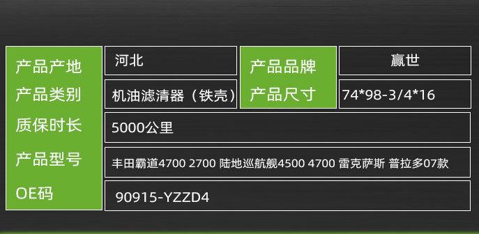 90915-Yzzd4 É Adequado para Toyota Overbearing Land Cruiser Prado Filtro de Óleo Telas de Óleo Elemento Filtrante de Carro