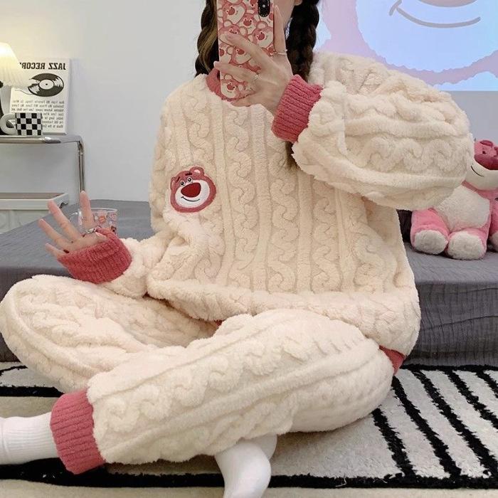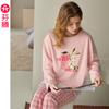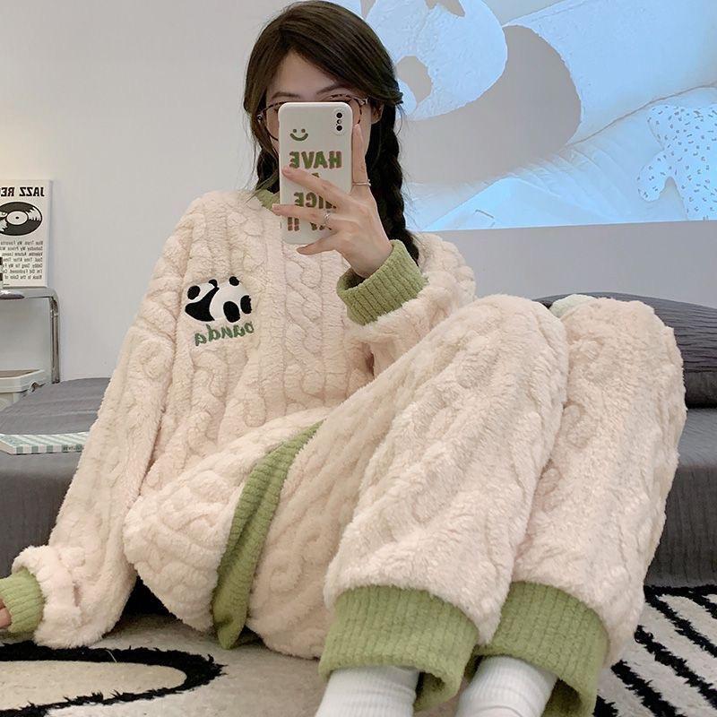 Pijamas Femininos Inverno Flanela Bordado Quente Doce Desenho Animado Menina Ao Vivo Explosões Casa Roupas Terno Pode Usar