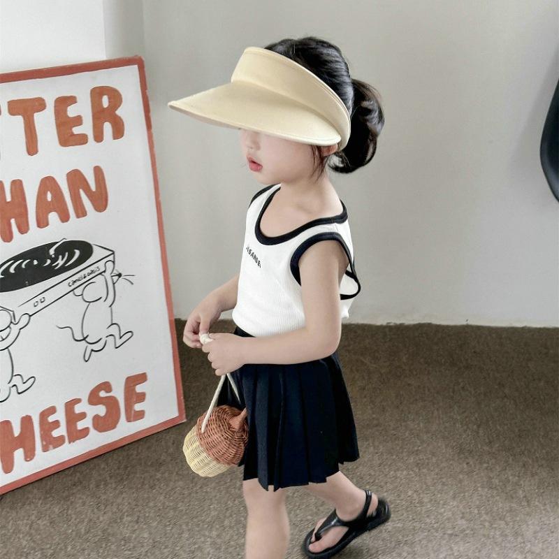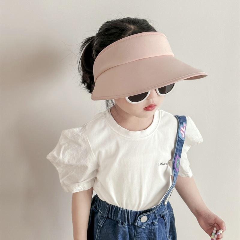 Tecido de algodão de seda gelo verão novo crianças guarda-sol protetor solar chapéu viagem Joker chapéu de sol meninas vazio chapéu alto atacado