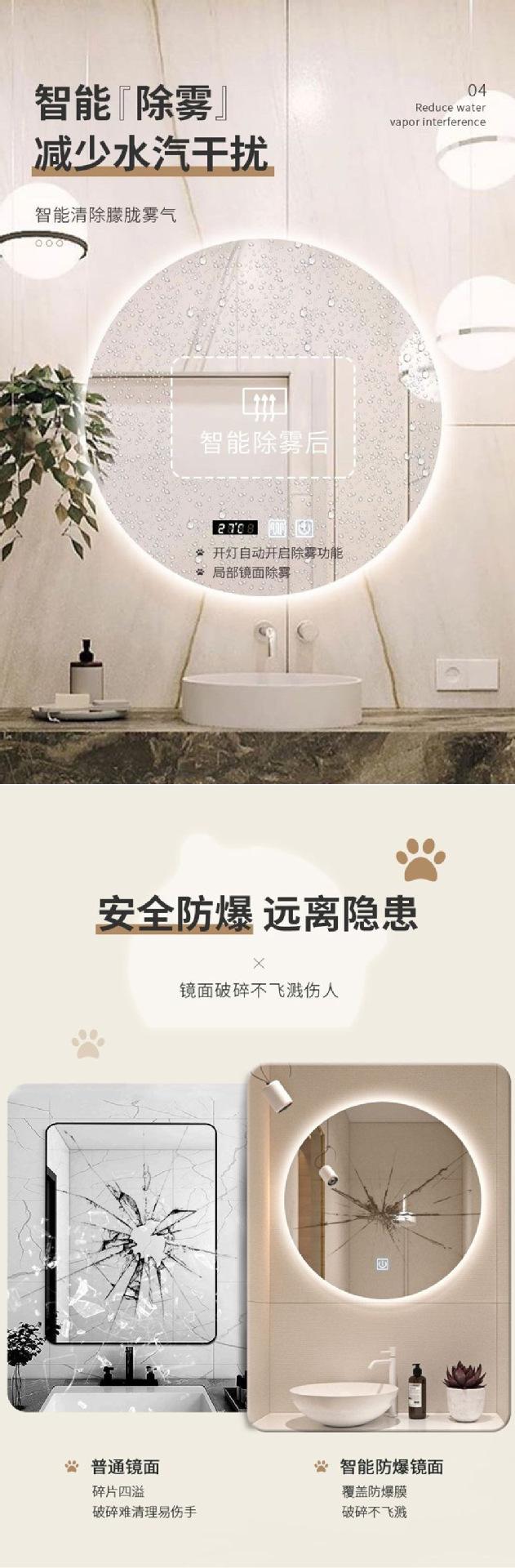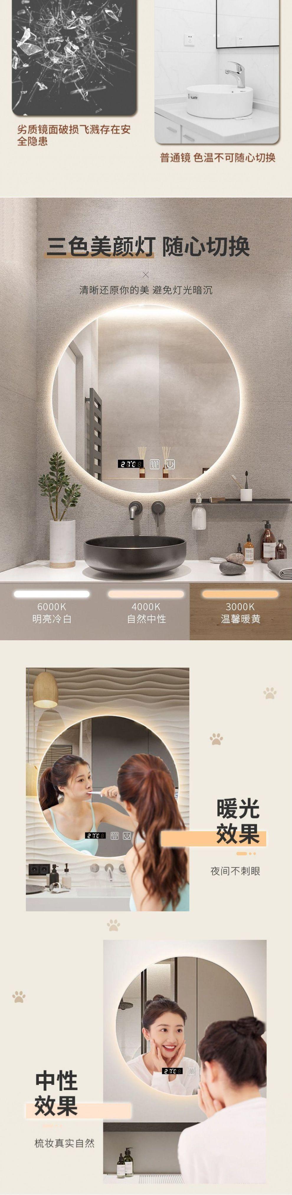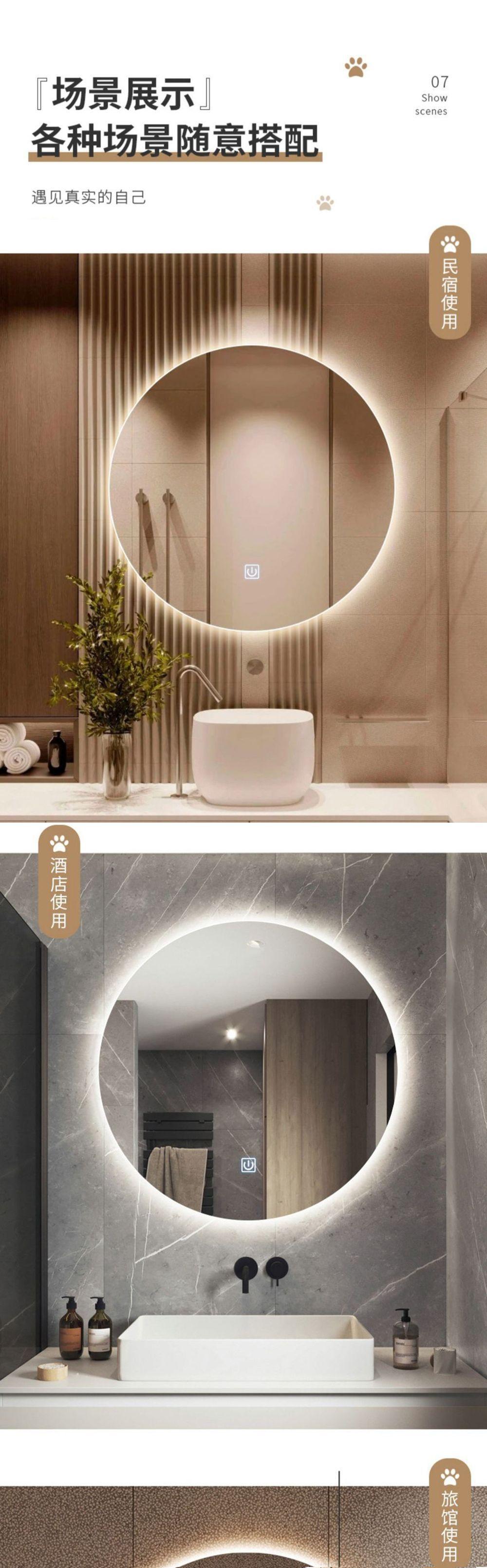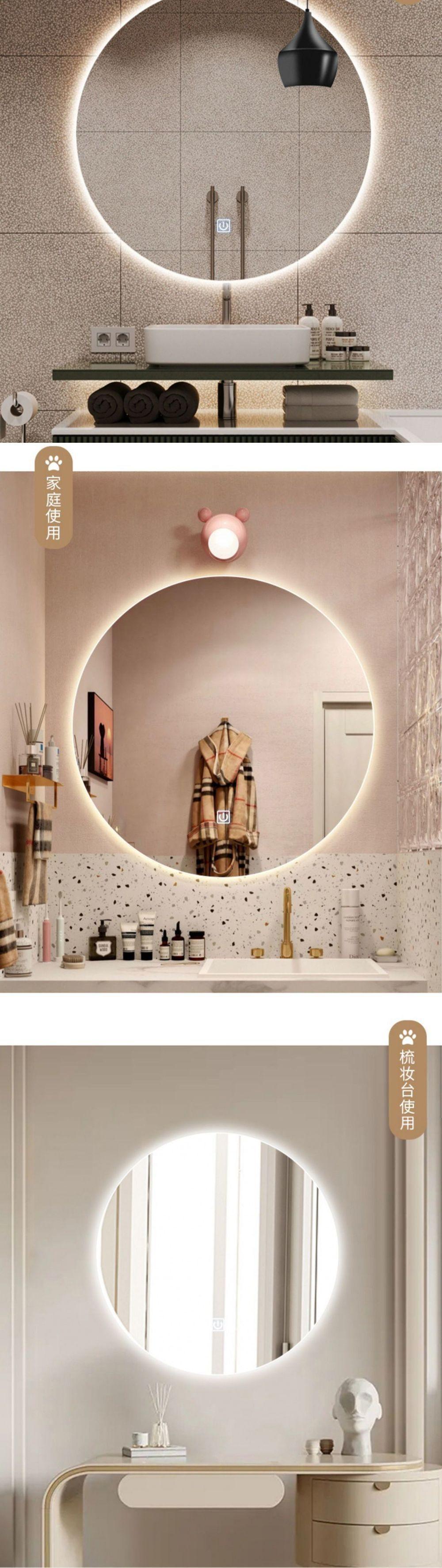 Espelho Redondo Personalizado, Espelho de Banheiro Antiembaçante, Espelho de Maquiagem, Espelho Redondo de Parede com Luz LED para Banheiro, Luz LED Desembaçante para Hotel