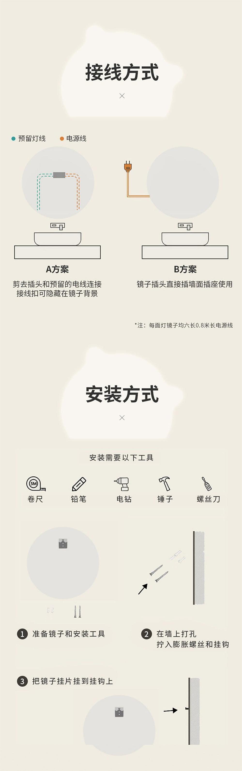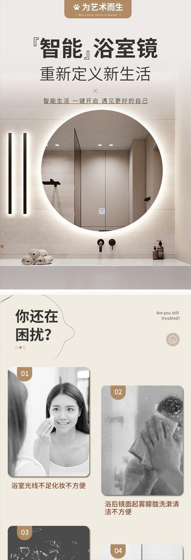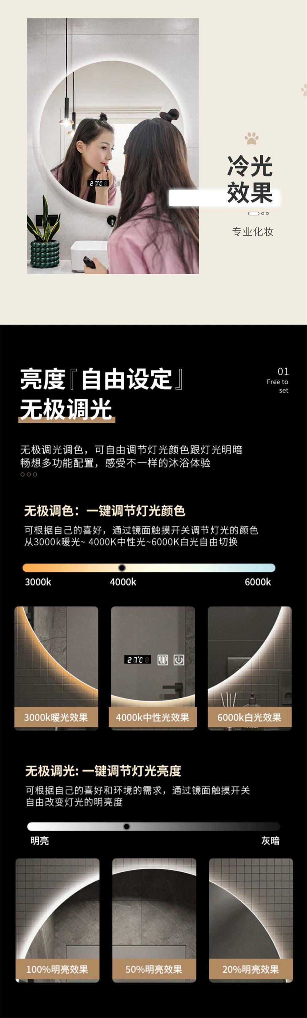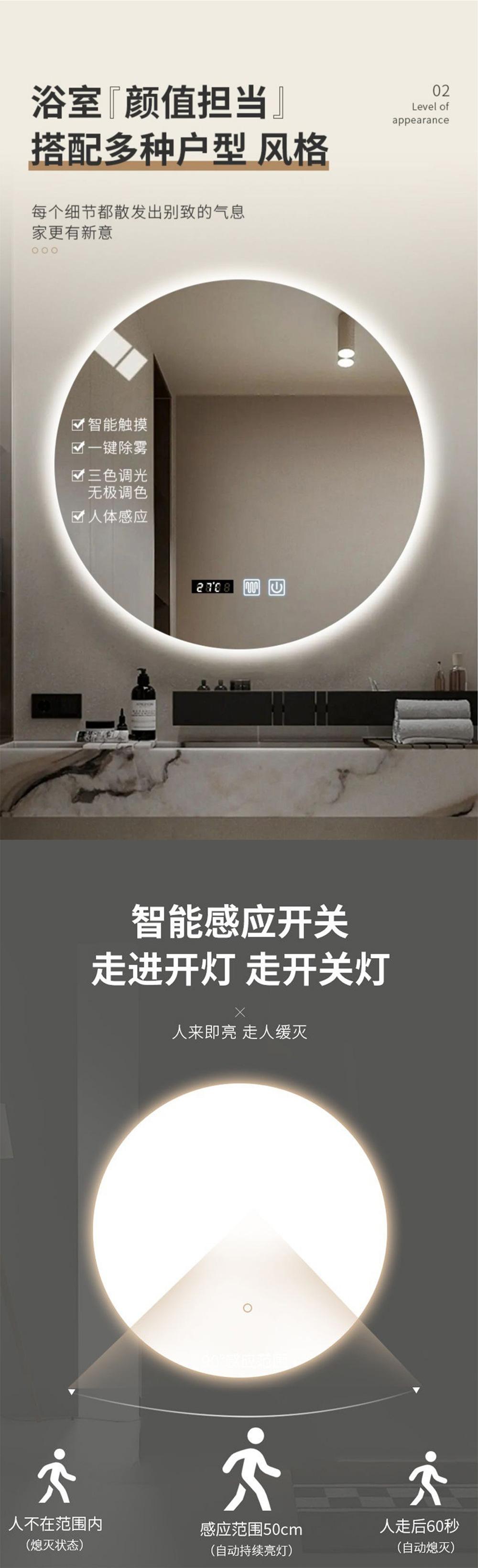 Espelho Redondo Personalizado, Espelho de Banheiro Antiembaçante, Espelho de Maquiagem, Espelho Redondo de Parede com Luz LED para Banheiro, Luz LED Desembaçante para Hotel