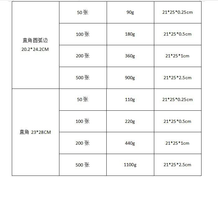 50 sheets, 100 sheets, 200 sheets, 500 sheets