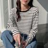 Design senso de moda cor combinando gola redonda casual parte inferior top 2024 primavera e outono nova manga comprida costura solta camiseta