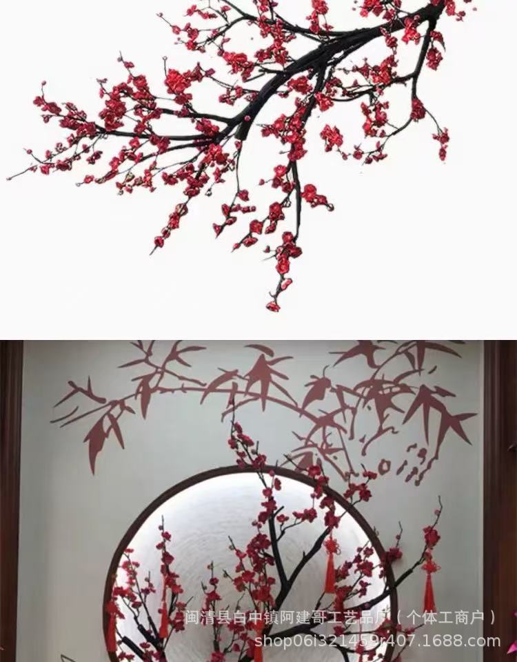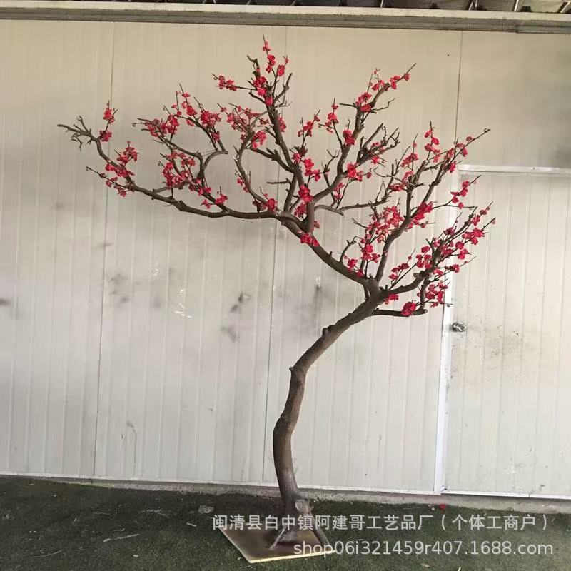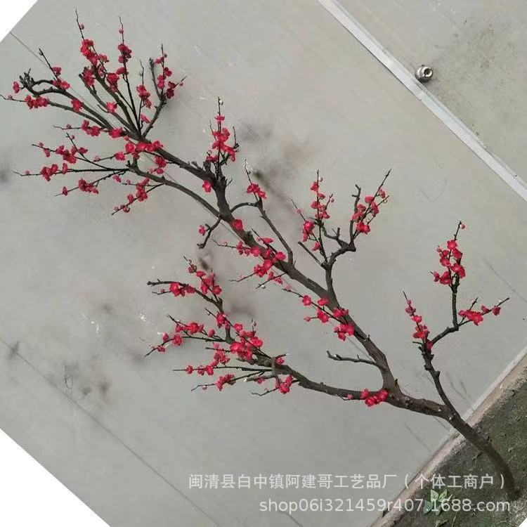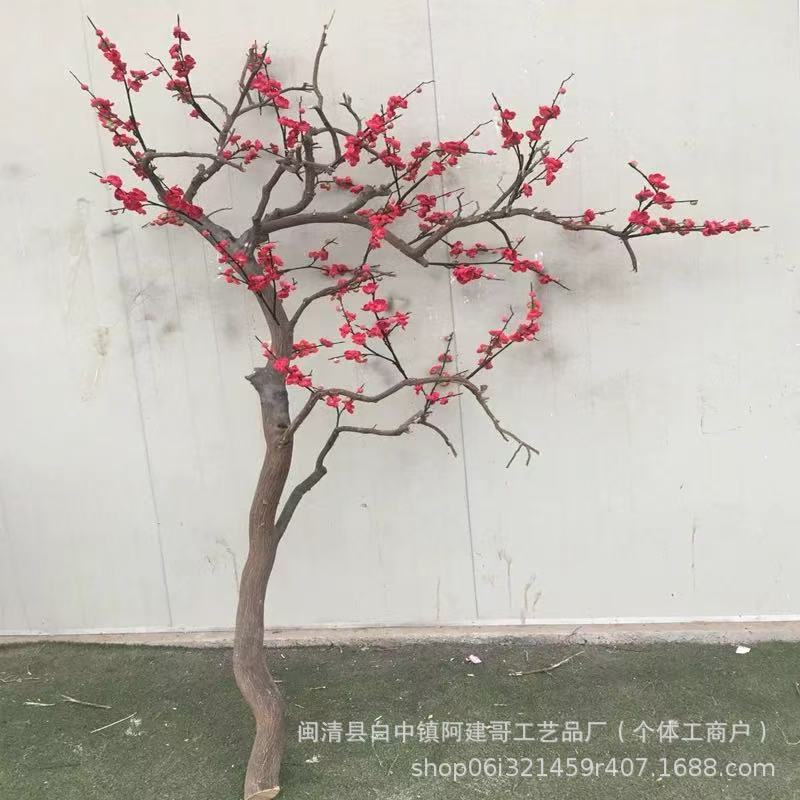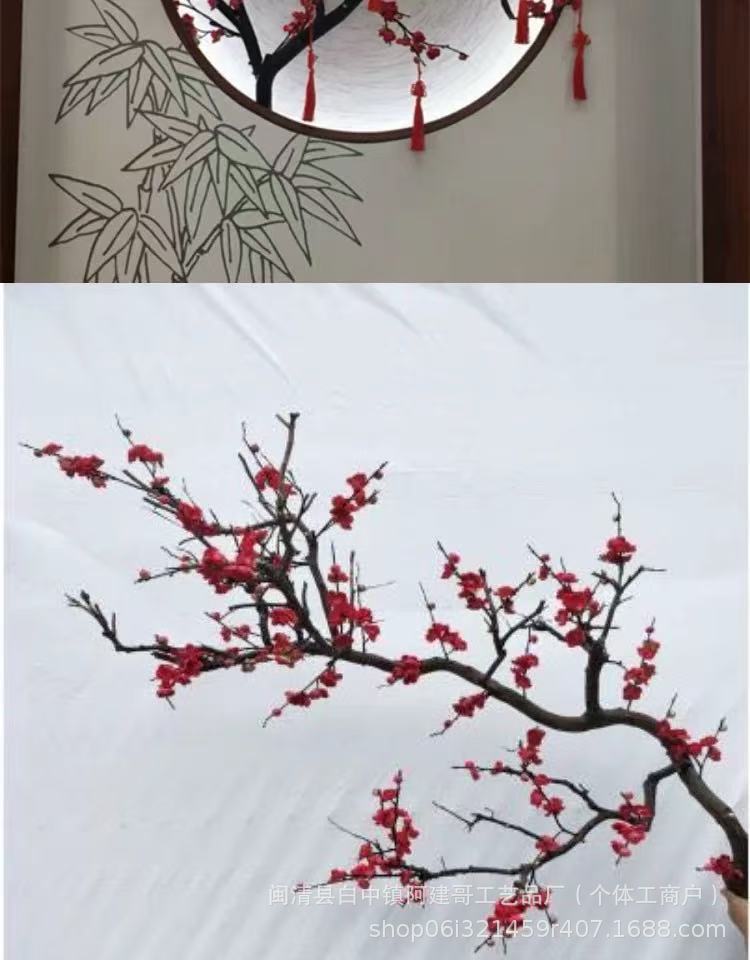 Nova Árvore Artificial de Flor de Ameixeira em Estilo Chinês com Flores Vermelhas, Arranjo de Flores Falsas, Bonsai de Sala de Estar, Ornamento de Decoração de Flor Seca