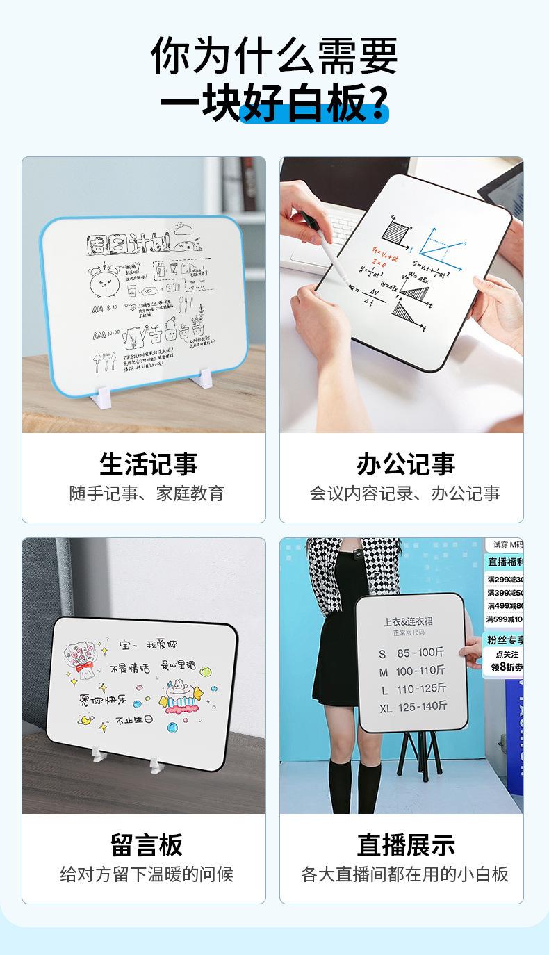 21*30cm black frame double-sided whiteboard + stand + gift bag, 21*30cm blue frame double-sided whiteboard + s...