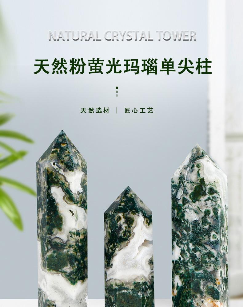 Pó de cristal natural transfronteiriço Ágata fluorescente Coluna de ponta única Pedra bruta Polida Coluna de quatro lados Enfeites artesanais de gema Promoção