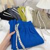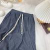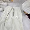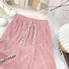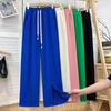 Calças femininas de cintura alta com cordão e textura plissada Chiba, pernas largas, drapeadas, retas, casuais, para primavera e verão