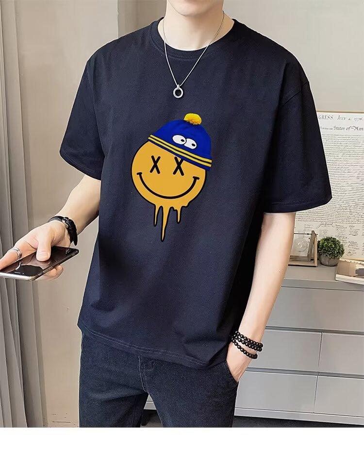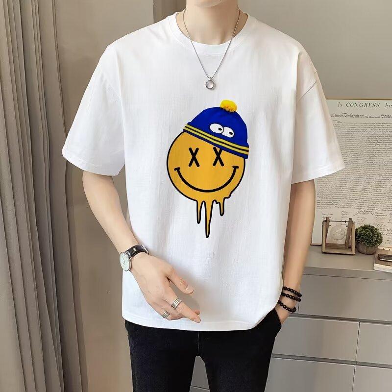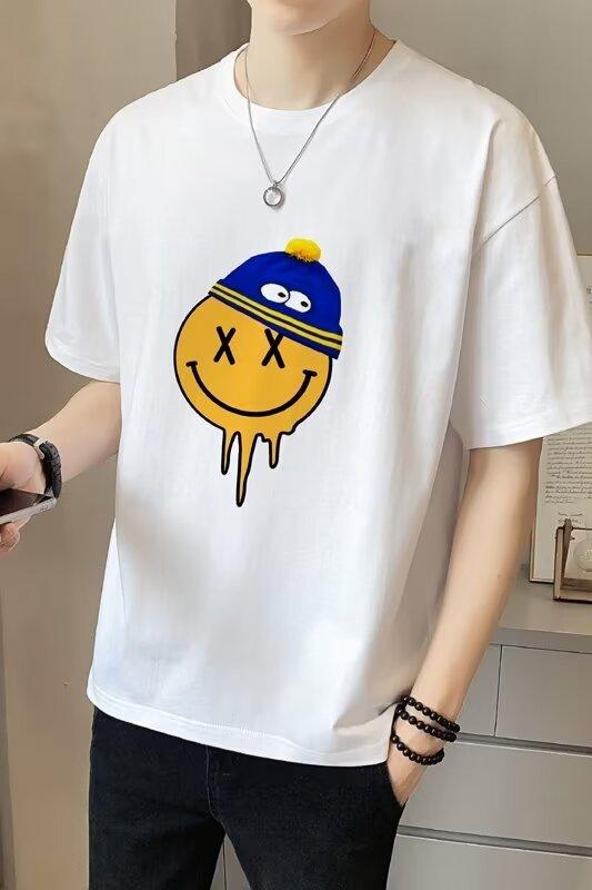 Camiseta de manga curta masculina, marca de moda verão, solta, meia manga, 2024, nova moda, ins, top simples estampado