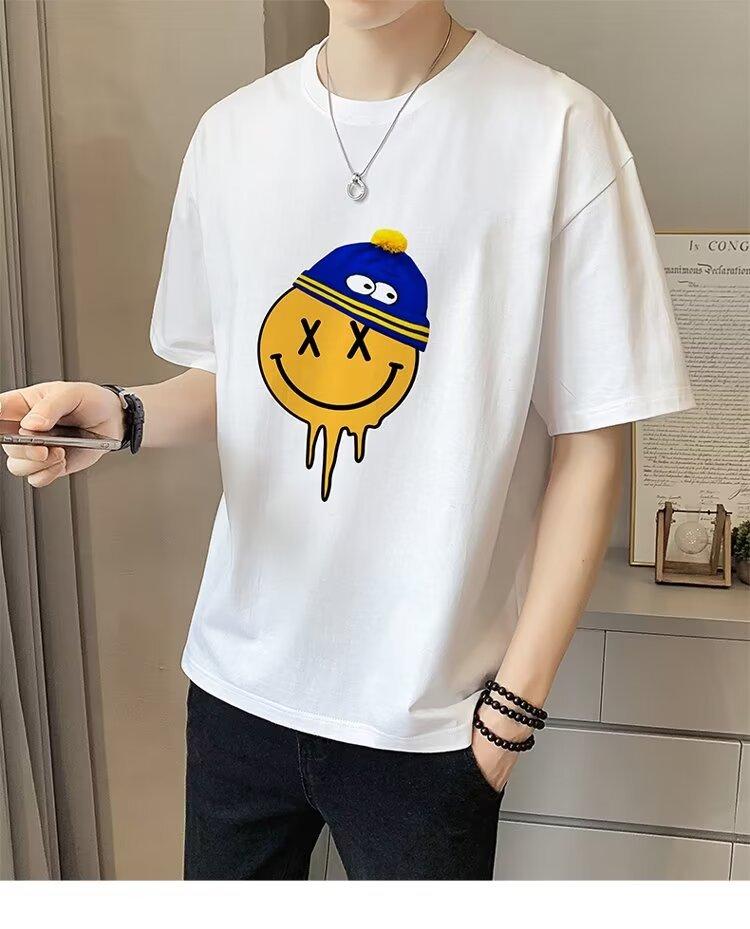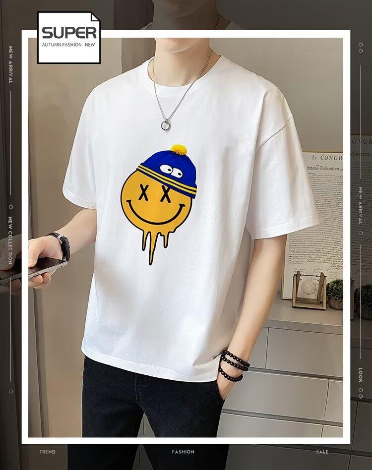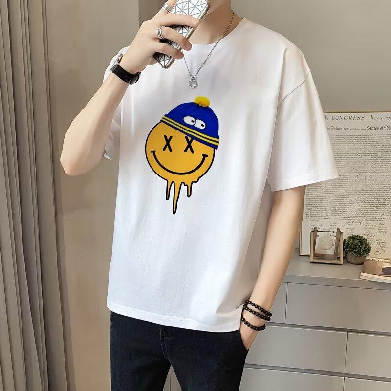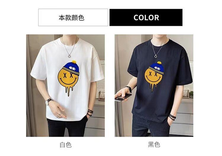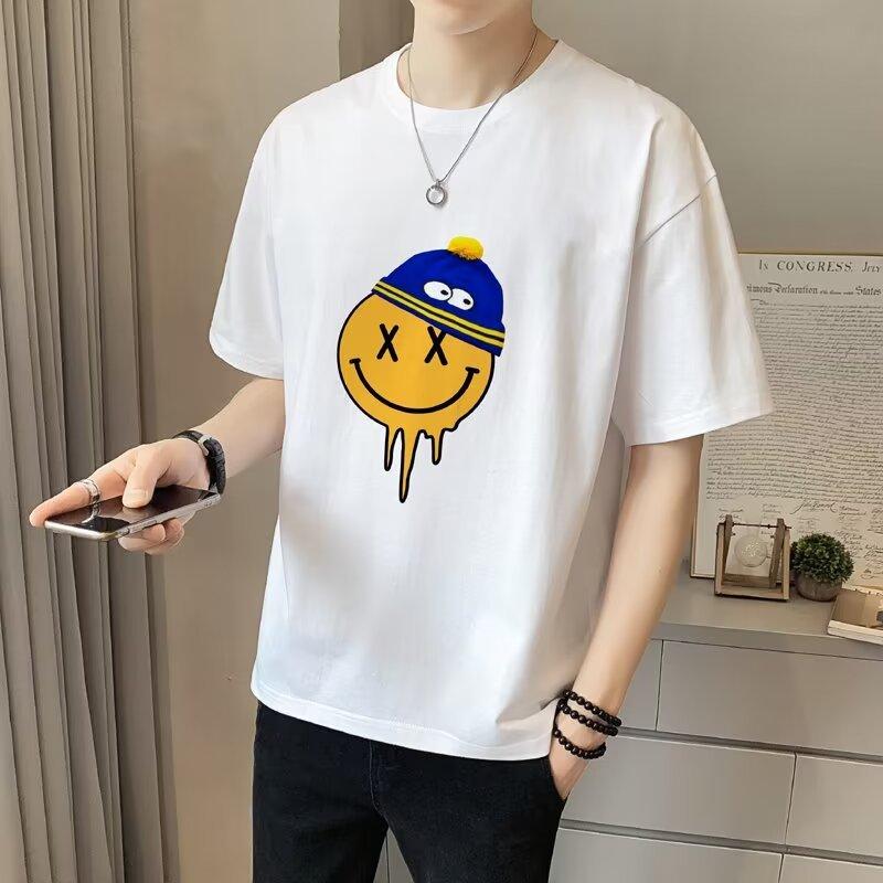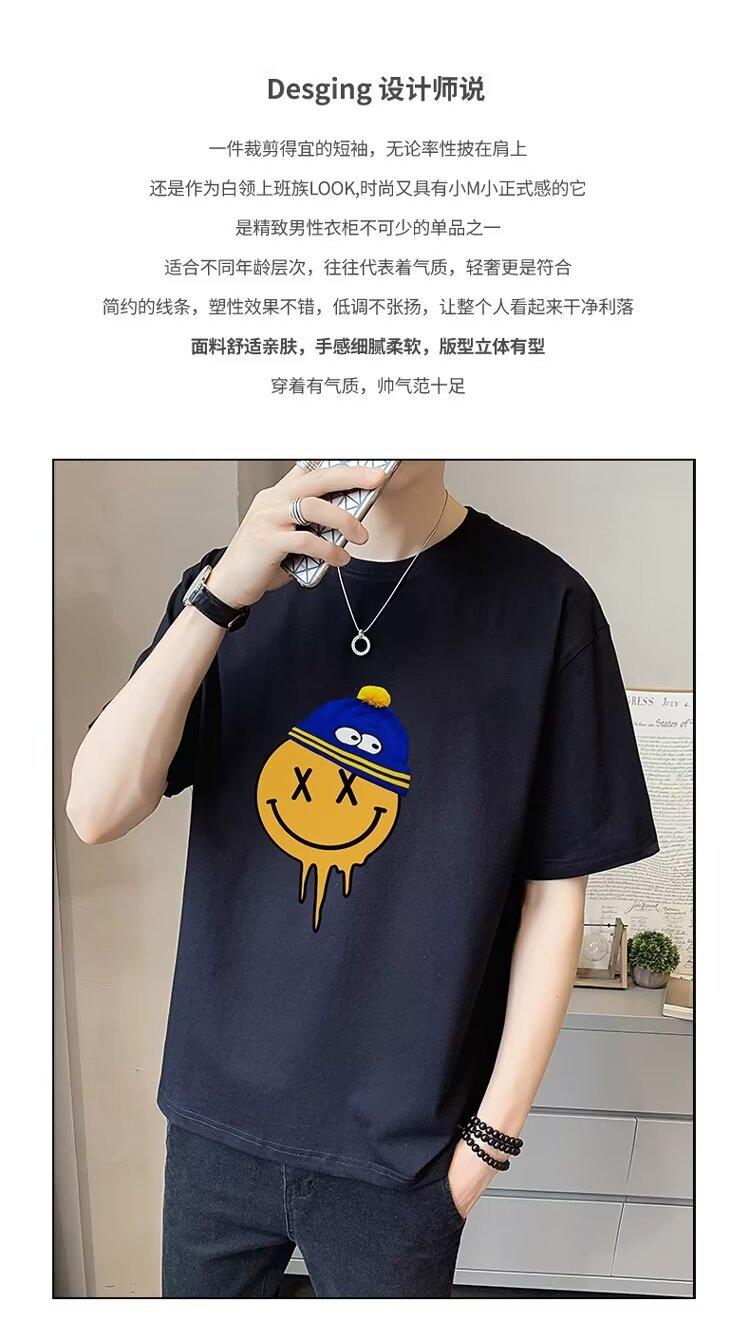 Compre Camiseta de manga curta masculina, marca de moda verão, solta, meia manga, 2024, nova moda, ins, top simples estampado no atacado no Joom.pro