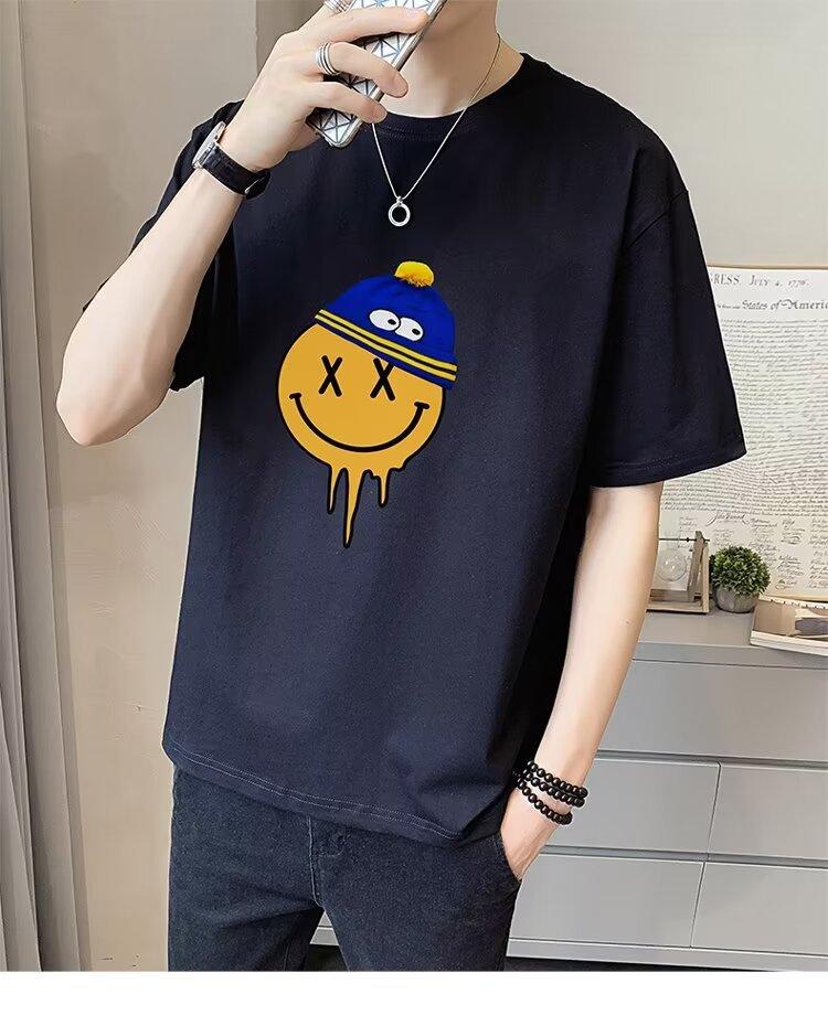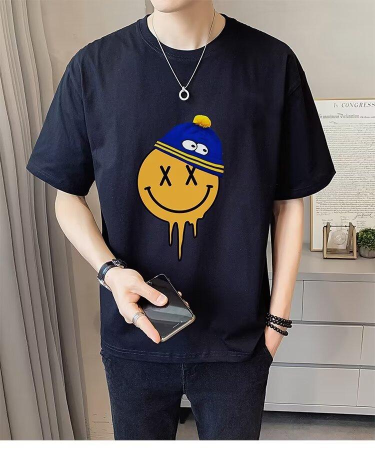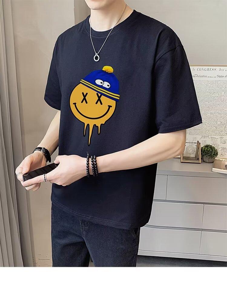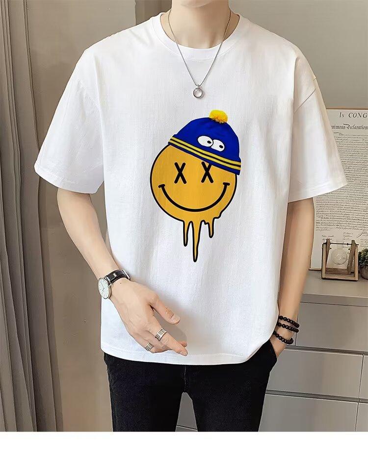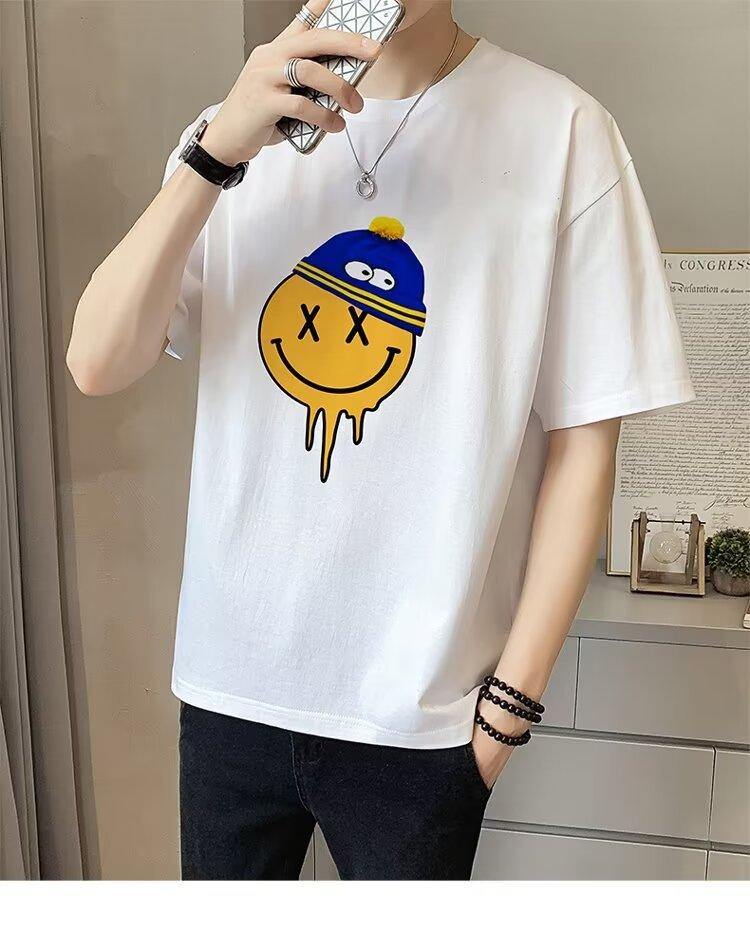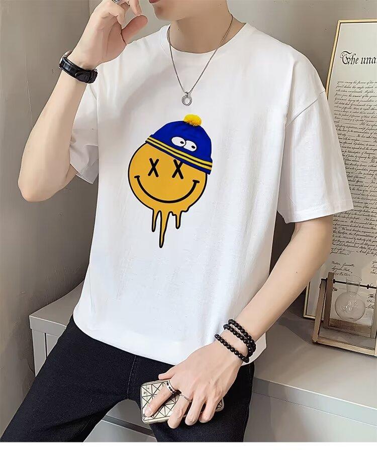 Compre Camiseta de manga curta masculina, marca de moda verão, solta, meia manga, 2024, nova moda, ins, top simples estampado no atacado no Joom.pro