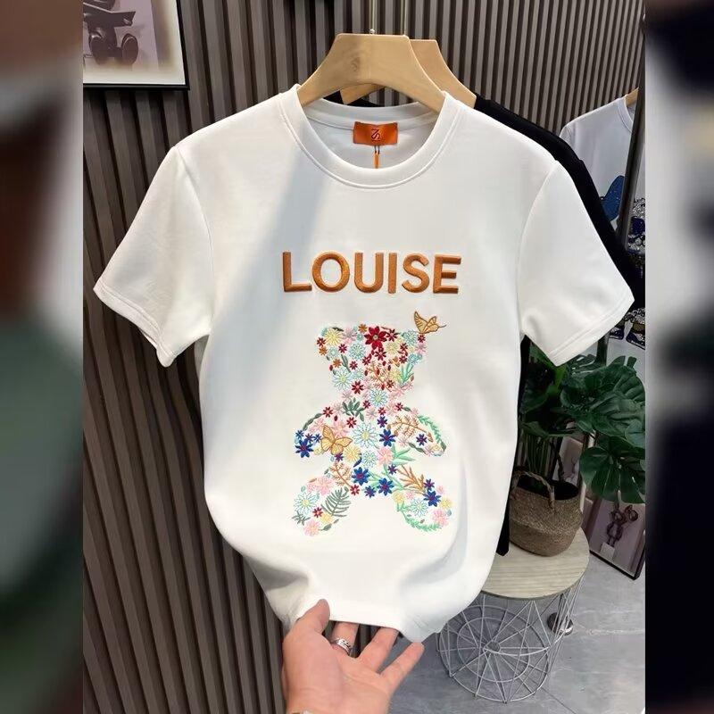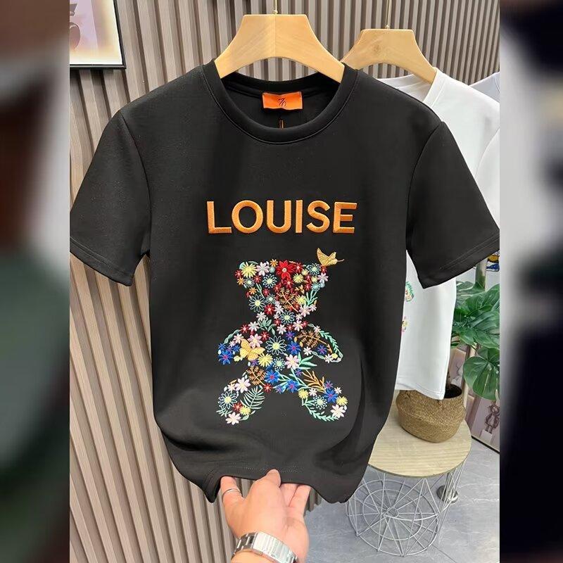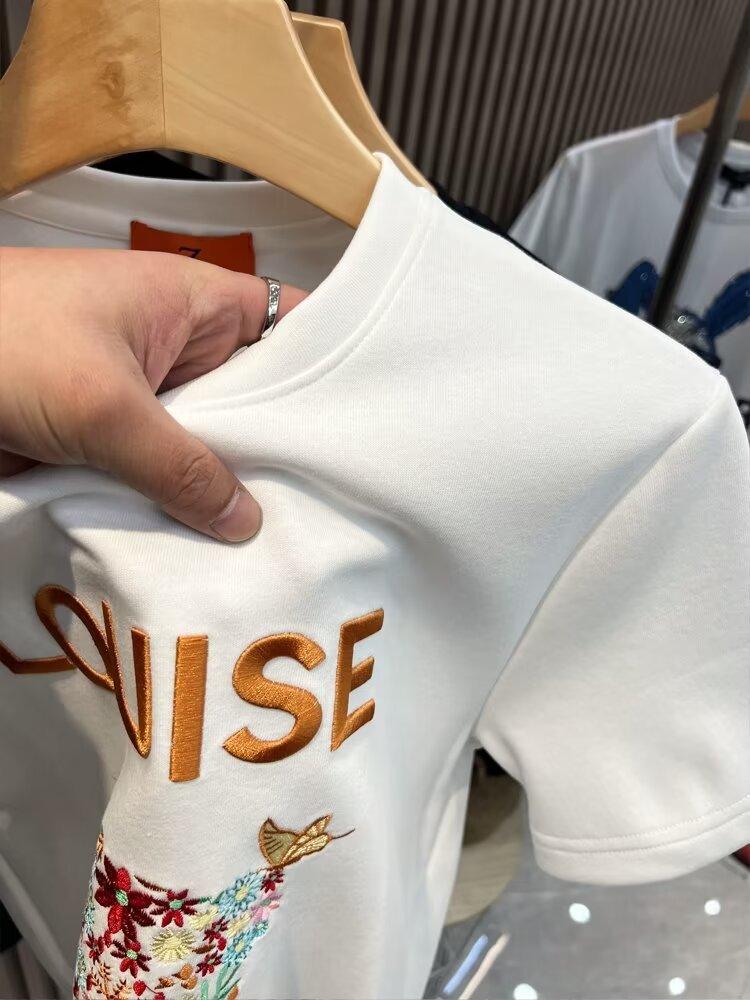 Nova camiseta de manga curta masculina verão estilo coreano tendência simples estampado meia manga top solto casual tendência marca camiseta
