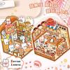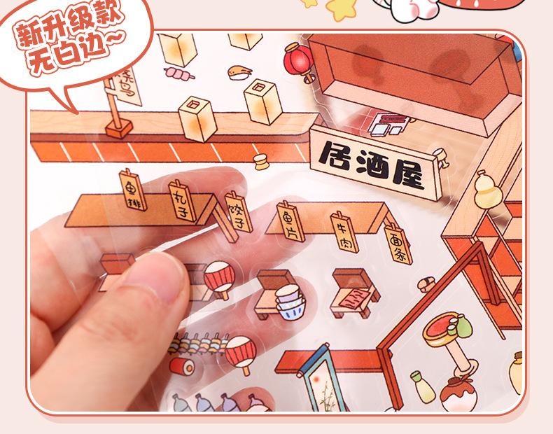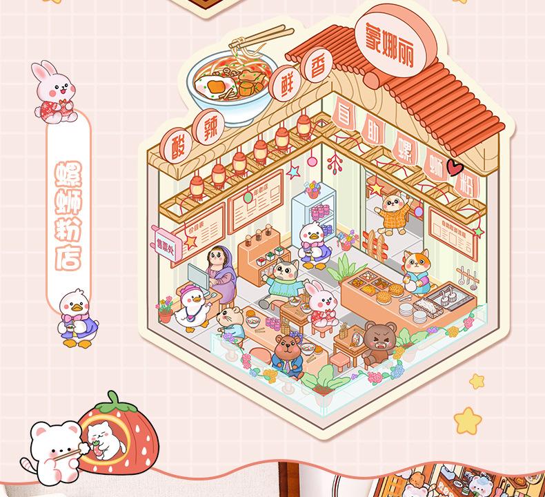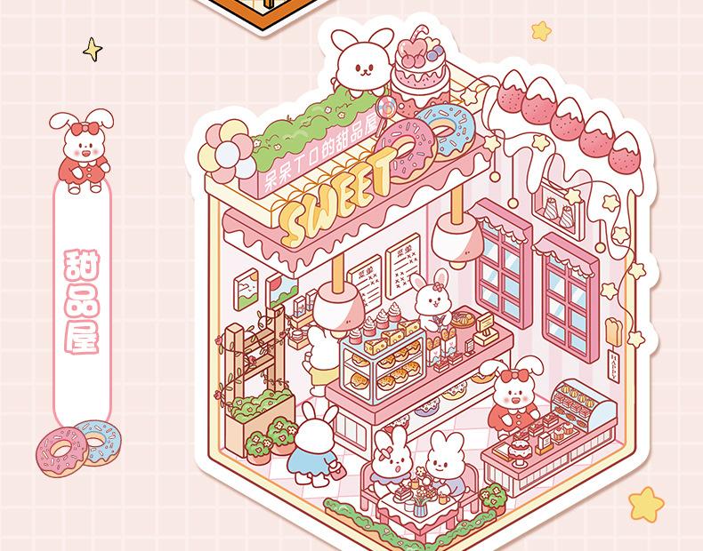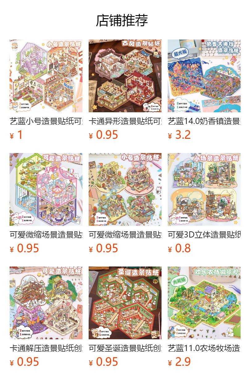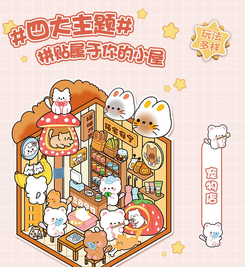 Adesivos de paisagismo de tamanho pequeno Art Blue Novos adesivos de paisagem em miniatura stand-up 3D tridimensional cabana cena fofa adesivos de pilha