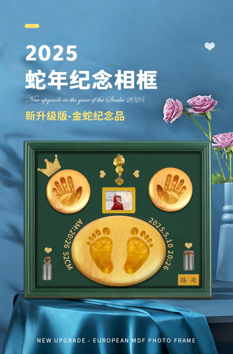 Ano da Cobra Moldura para fotos com impressão de mãos e pés Cerimônia de lembrança para recém-nascidos Impressão de mãos e pés Impressão de mãos e pés Pit Baby Presente de cem dias