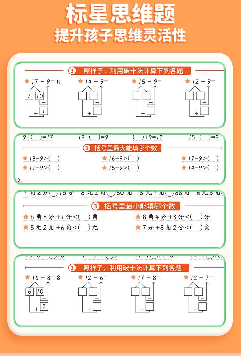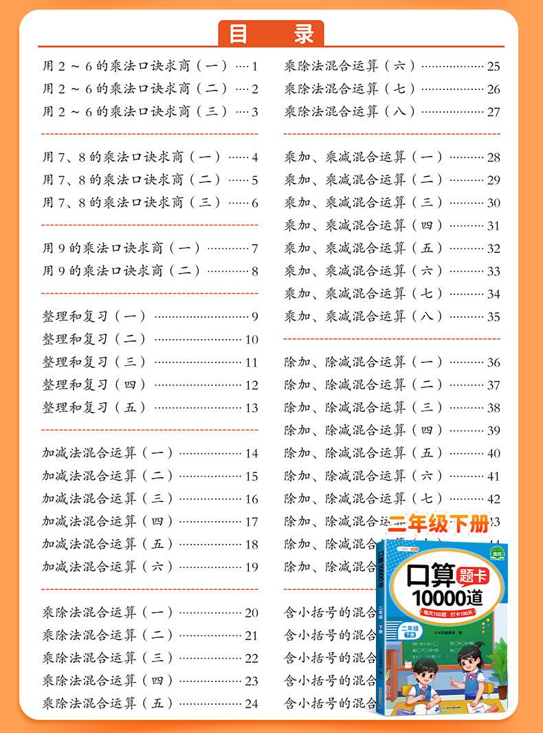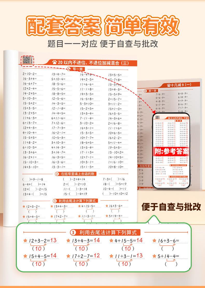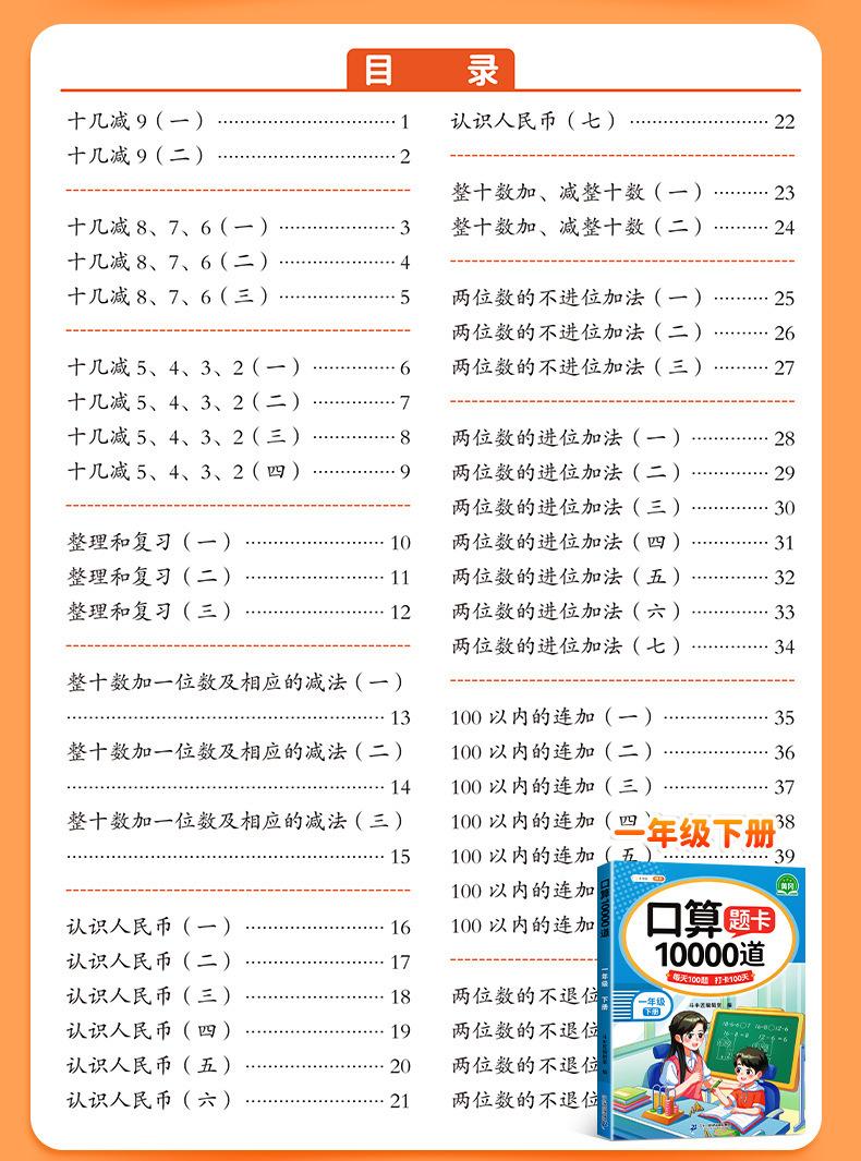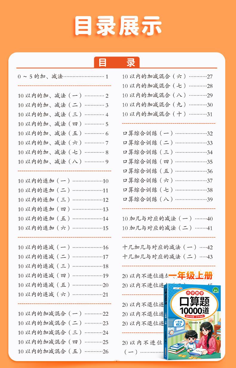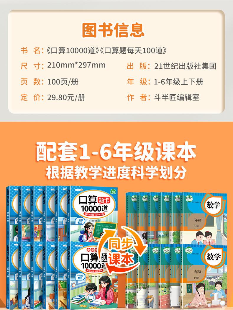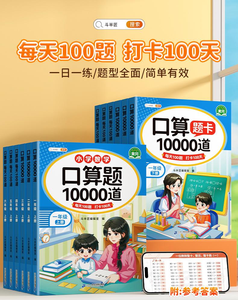 Cartão de problemas de matemática de um, dois, três, quatro, cinco e seis anos, primeiro e segundo volumes, problema de matemática do ensino fundamental 10000, 100