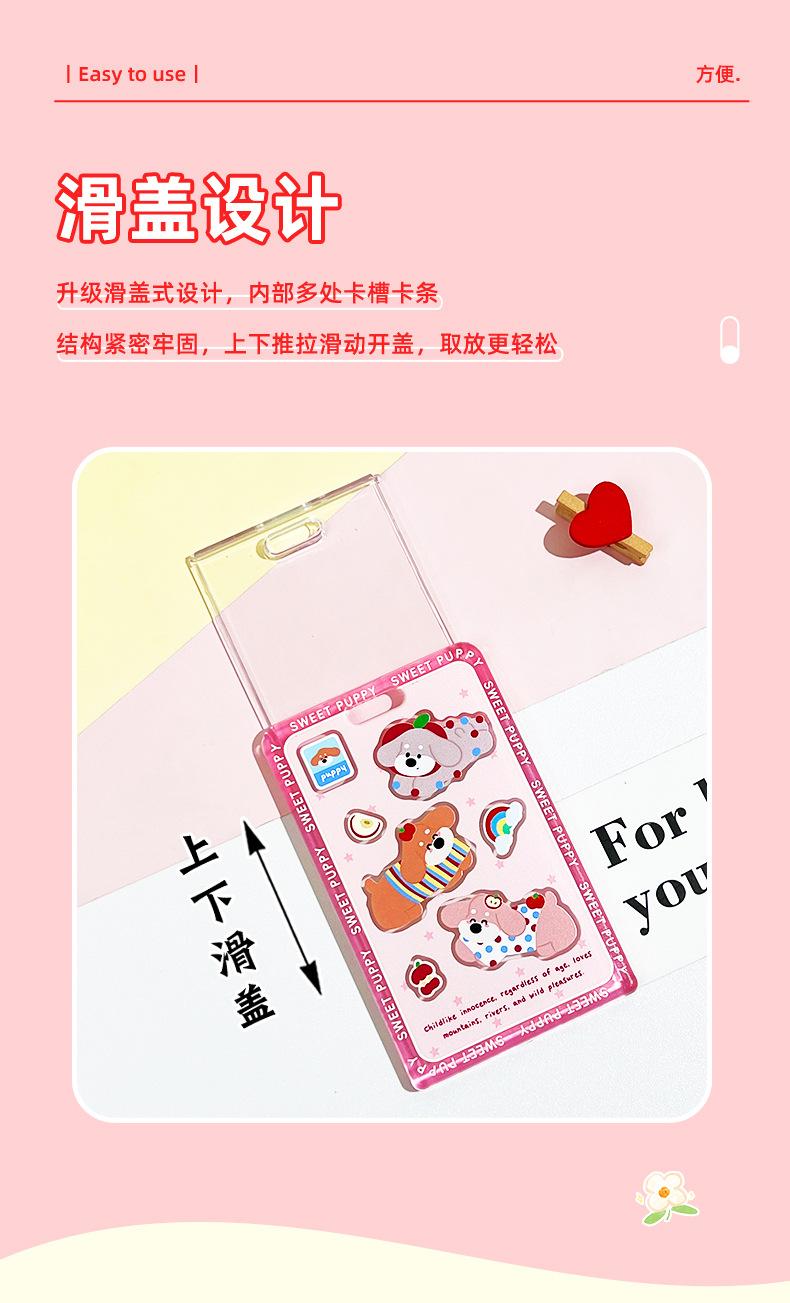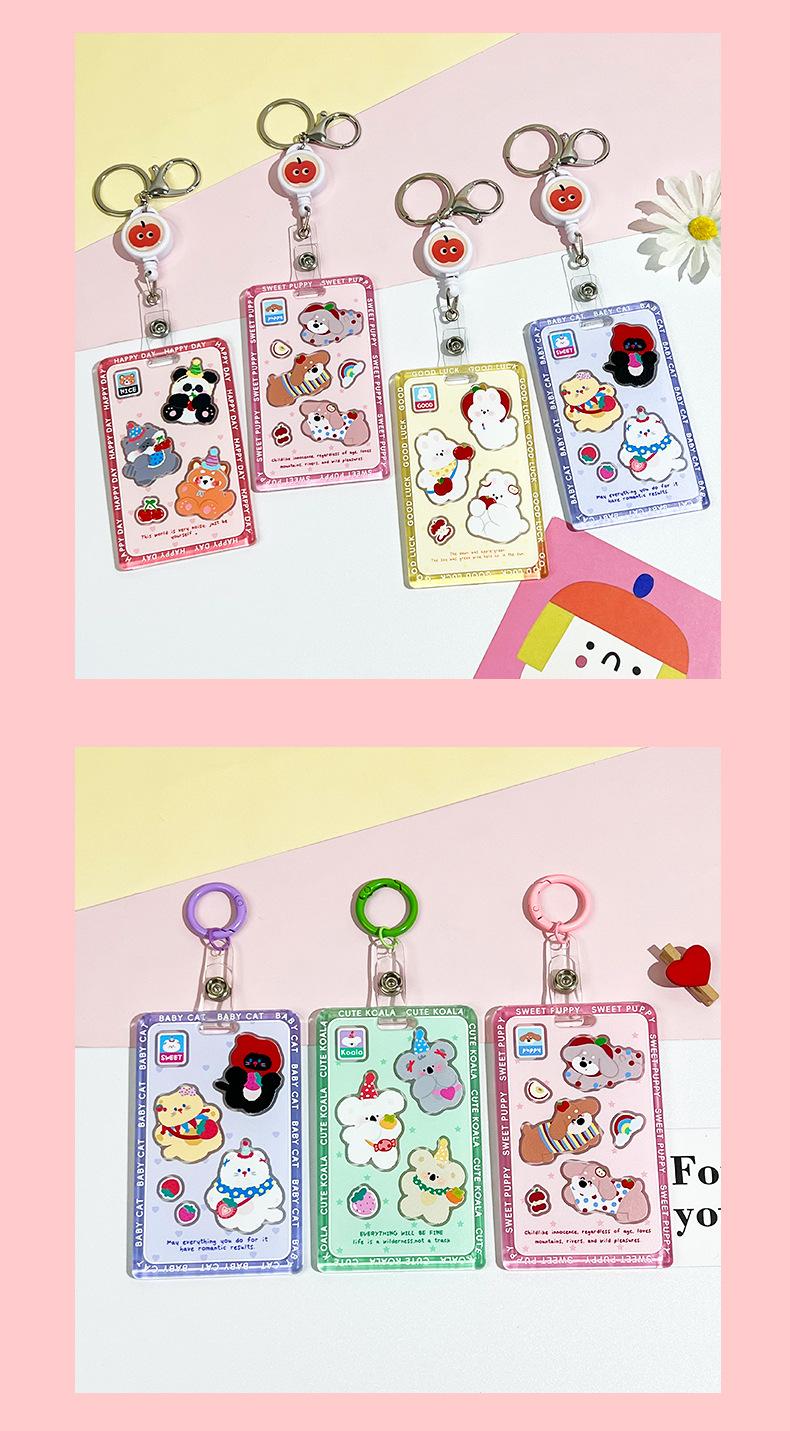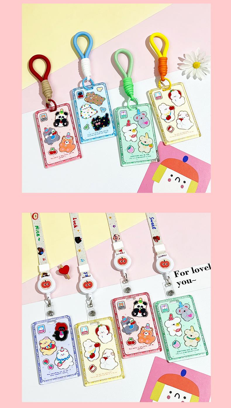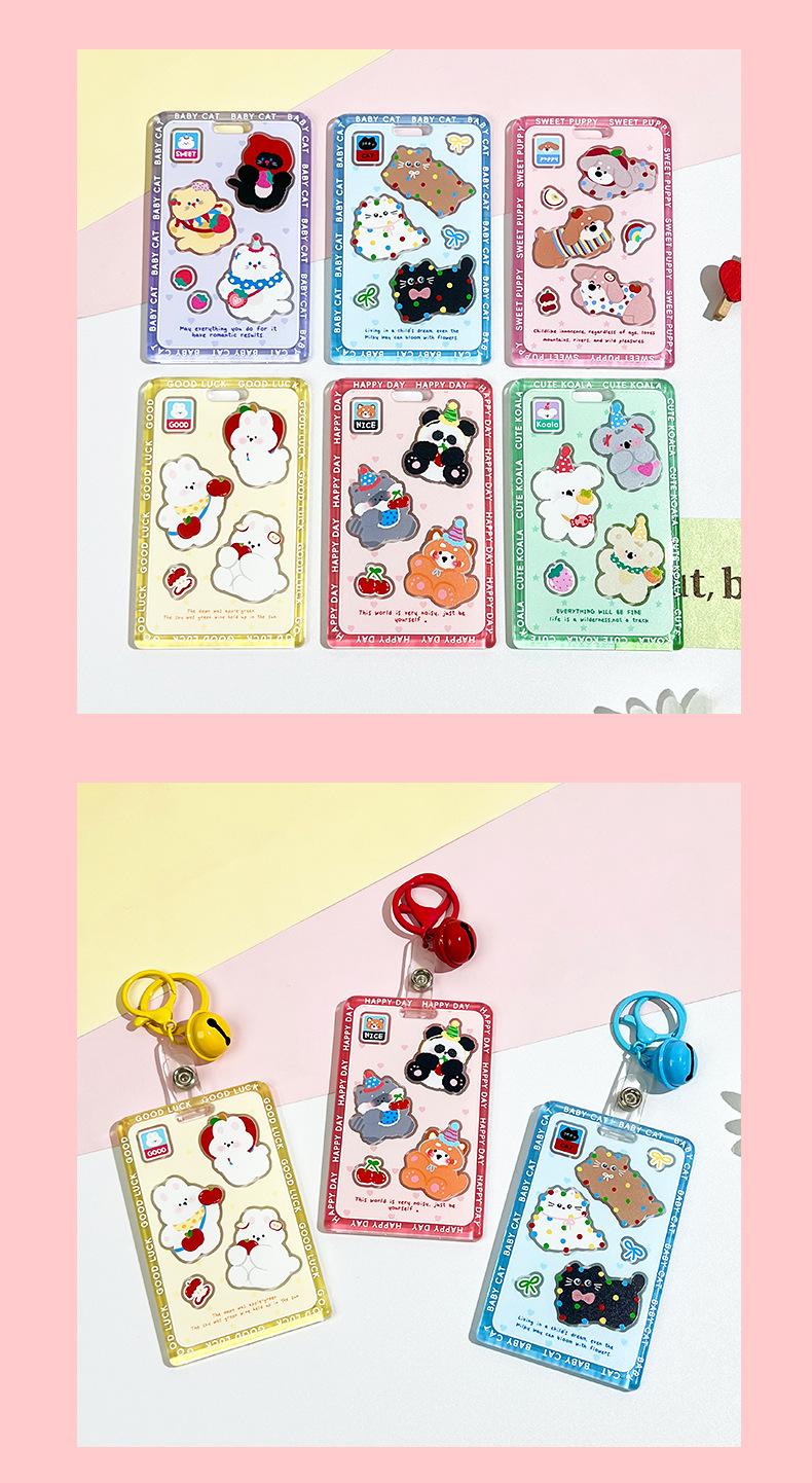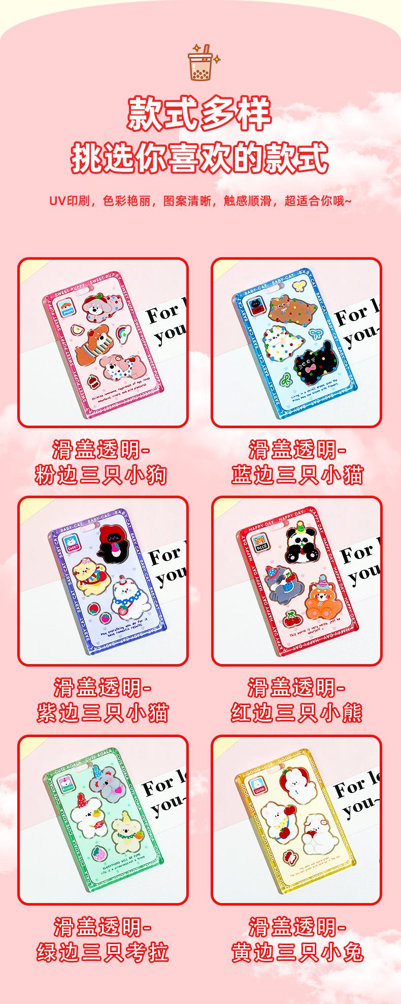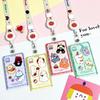 Capa para cartão de desenho animado de animal fofo, transparente, deslizante, cartão de campus para estudantes, bolsa para cartão de refeição, capa protetora para identidade de meninas, com bordas cruzadas