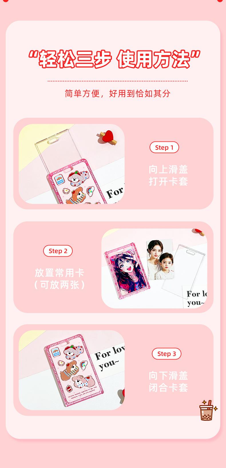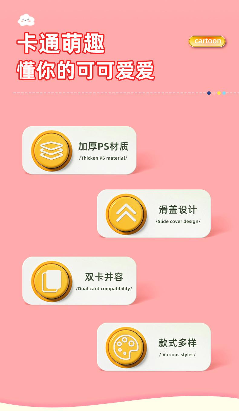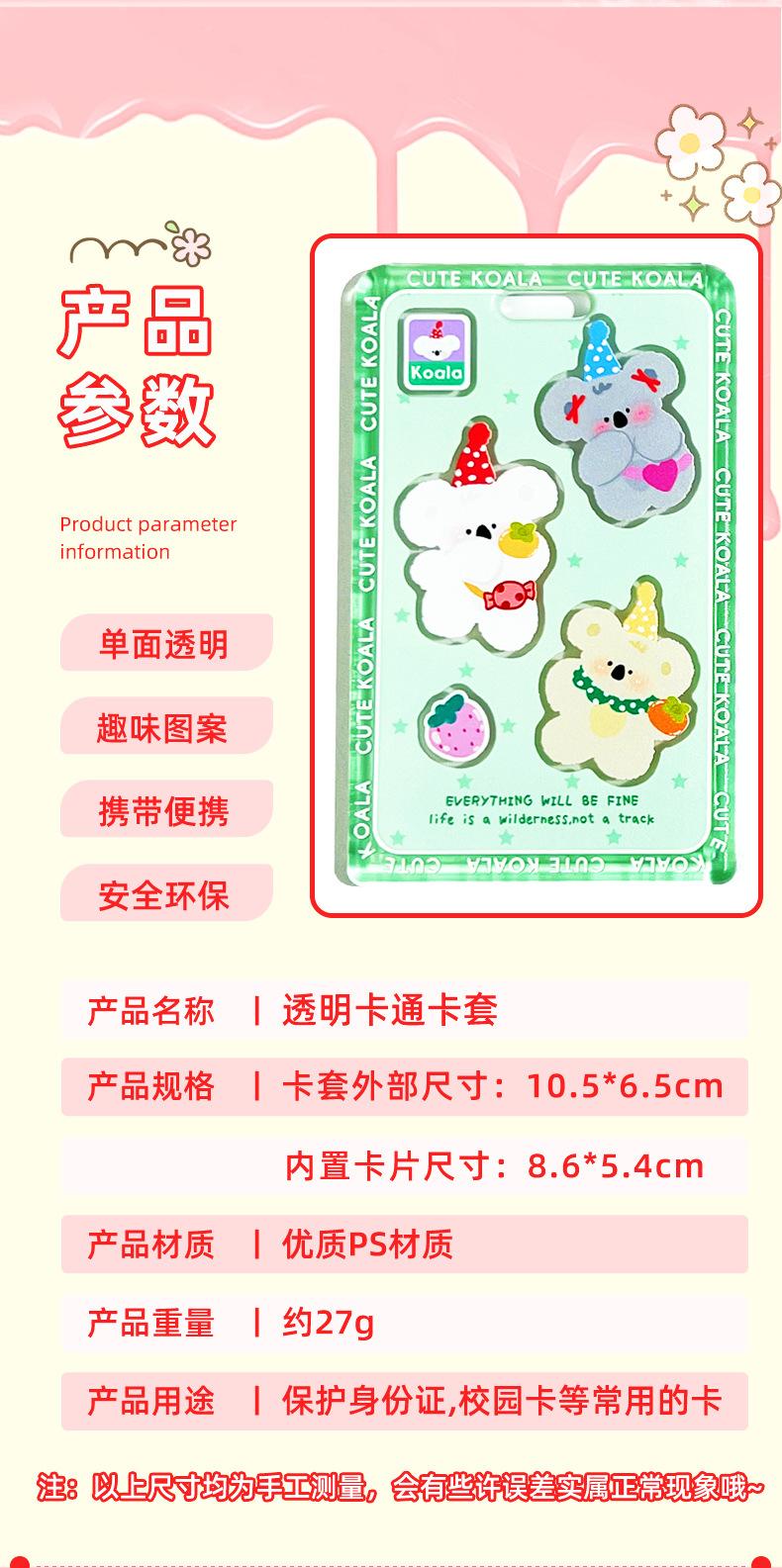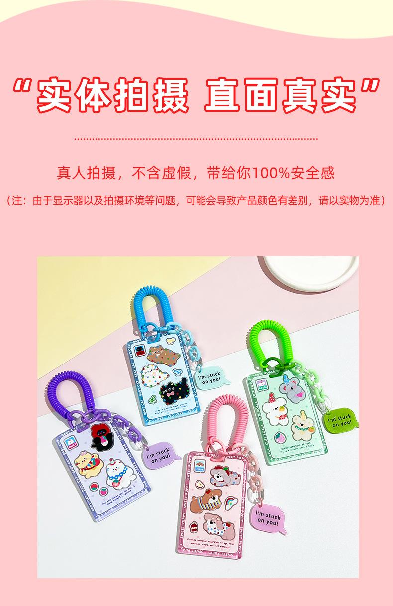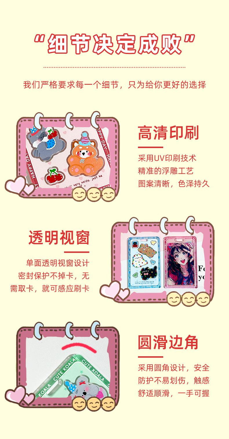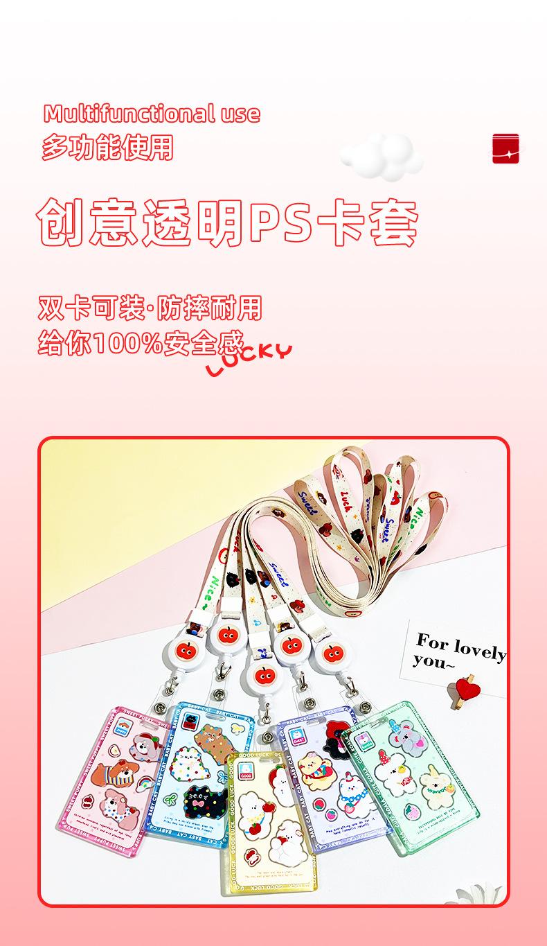 Capa para cartão de desenho animado de animal fofo, transparente, deslizante, cartão de campus para estudantes, bolsa para cartão de refeição, capa protetora para identidade de meninas, com bordas cruzadas