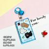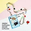 Transparent sliding cover - three bears with red edge + sand dot cartoon cat telescopic lanyard (apple)