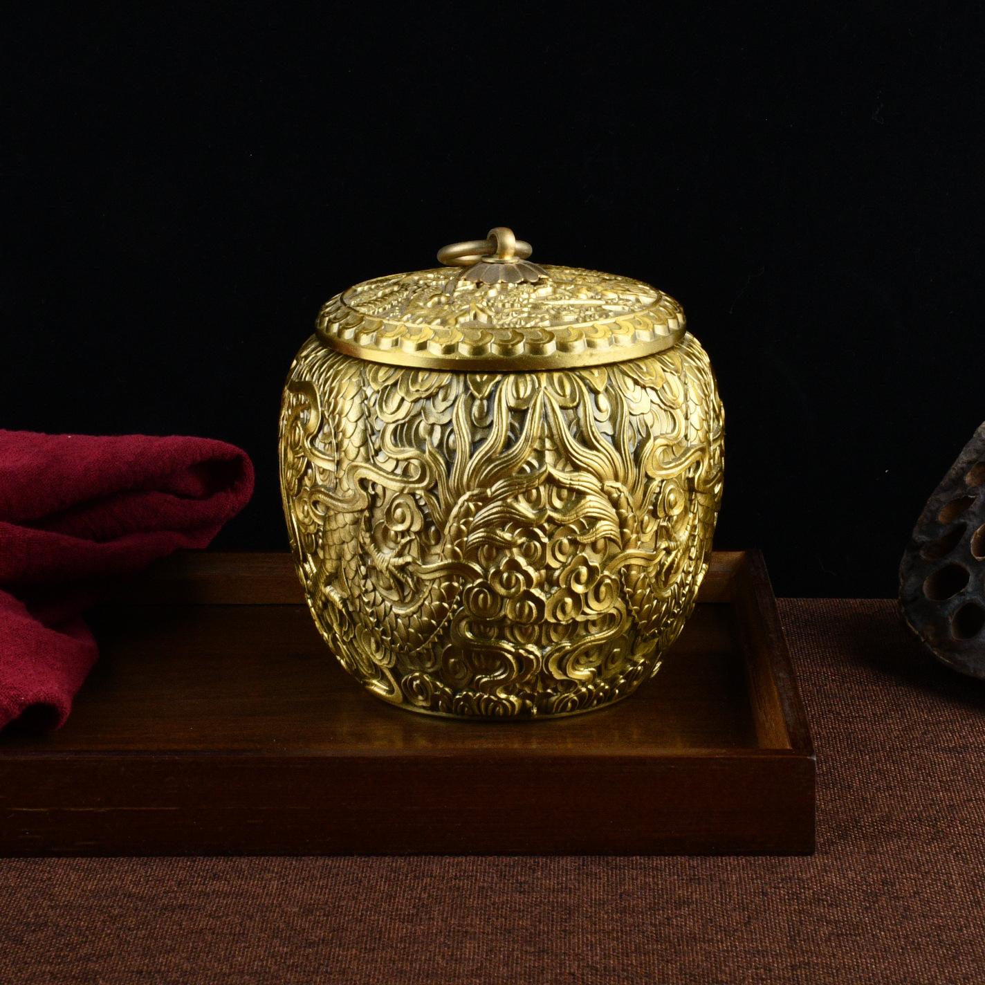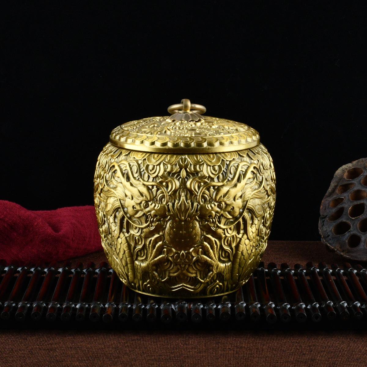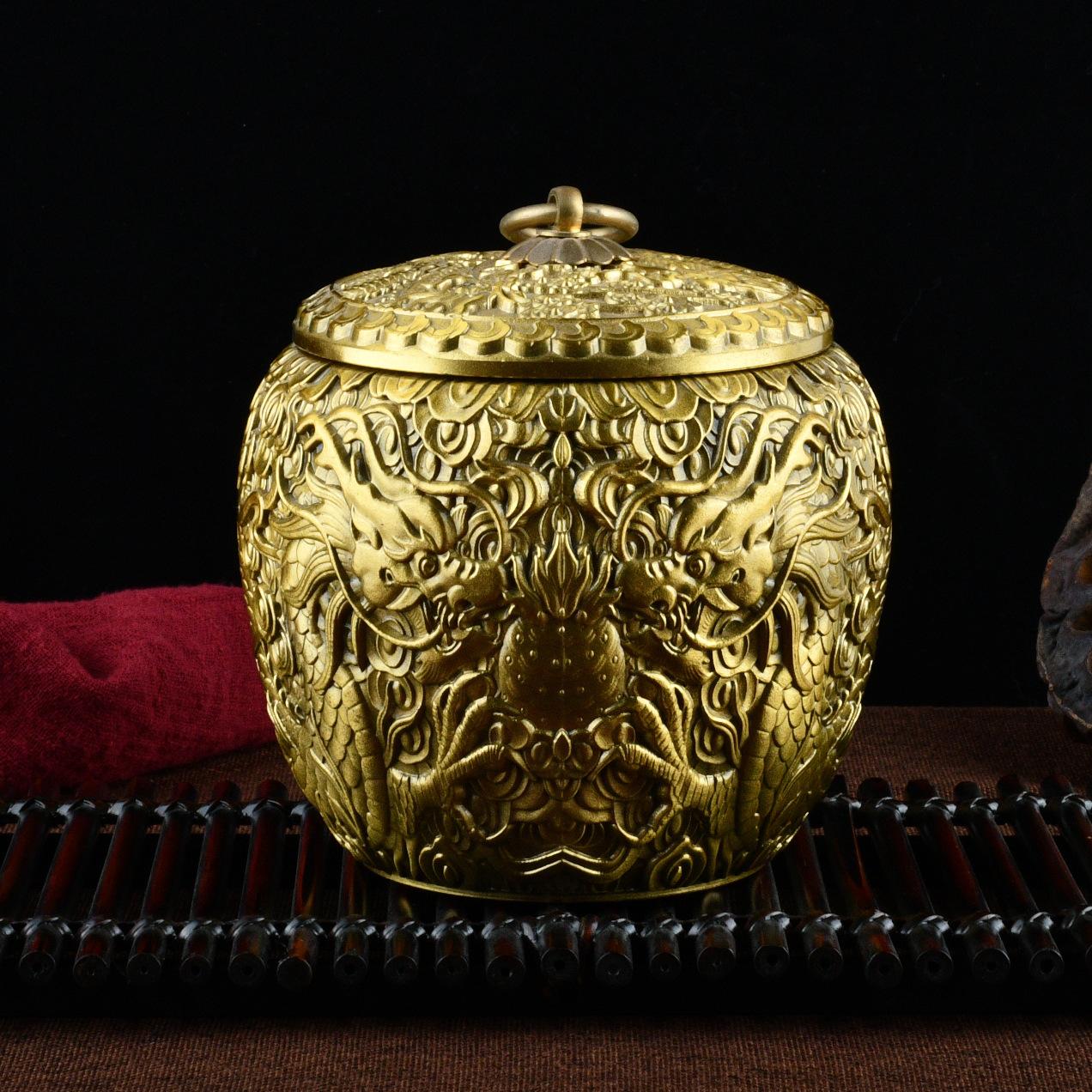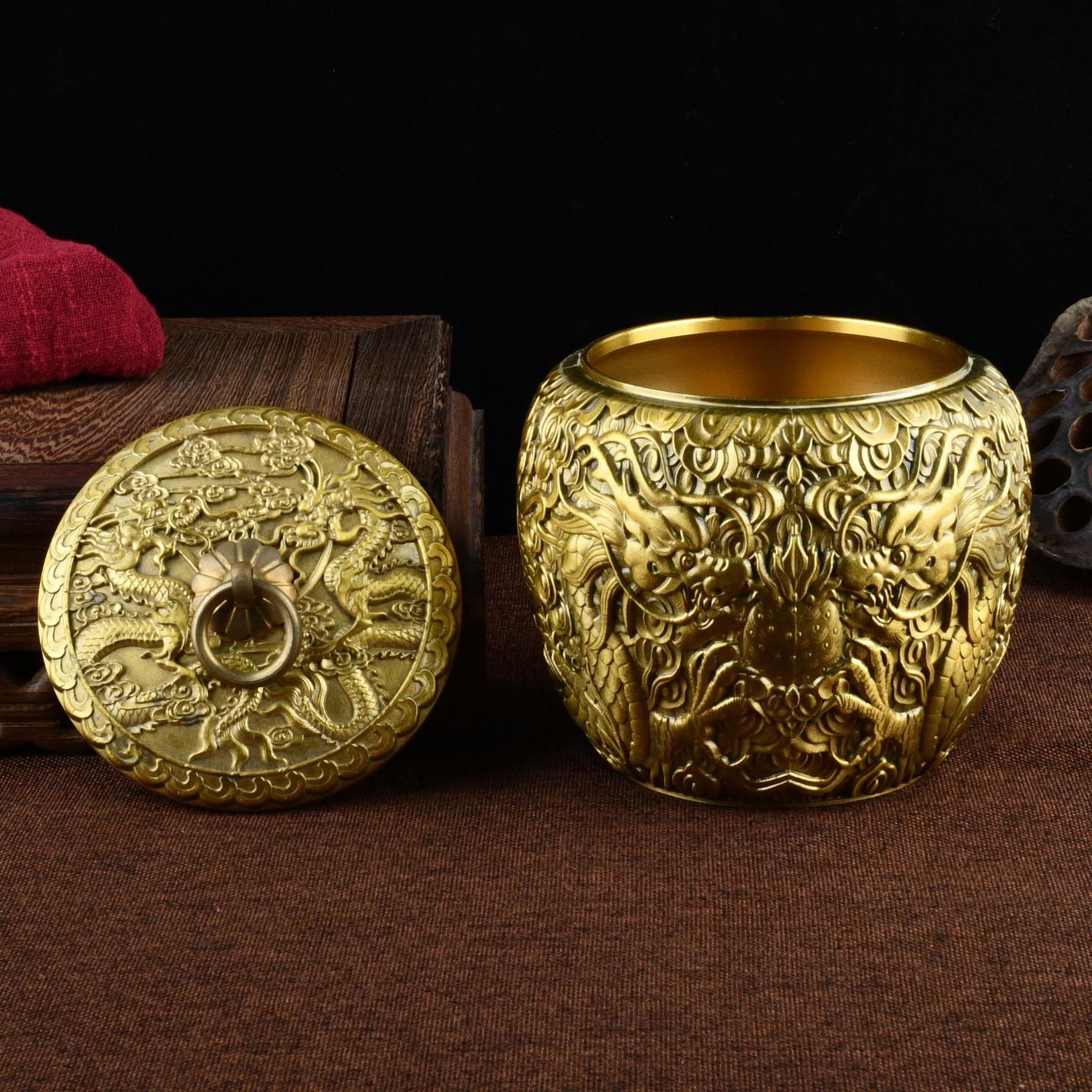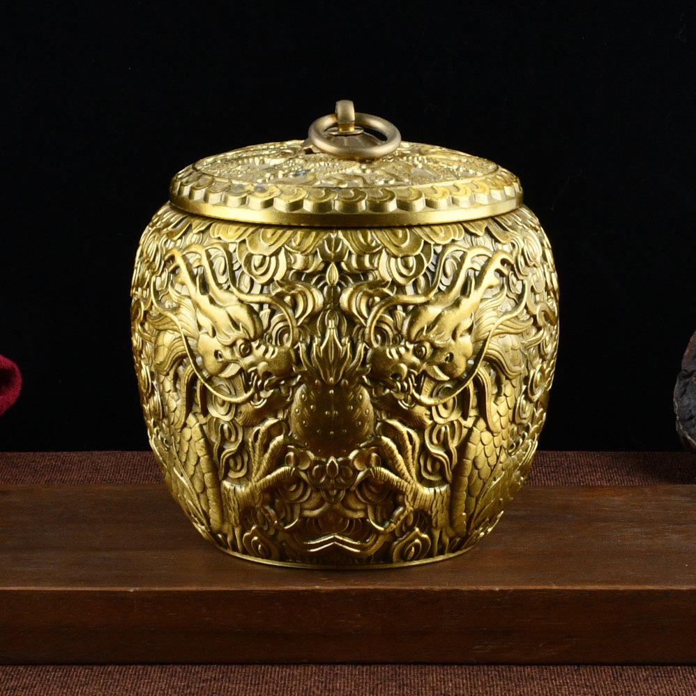Bule de chá de bola de brinquedo de dragão duplo para decoração de casa e escritório de latão