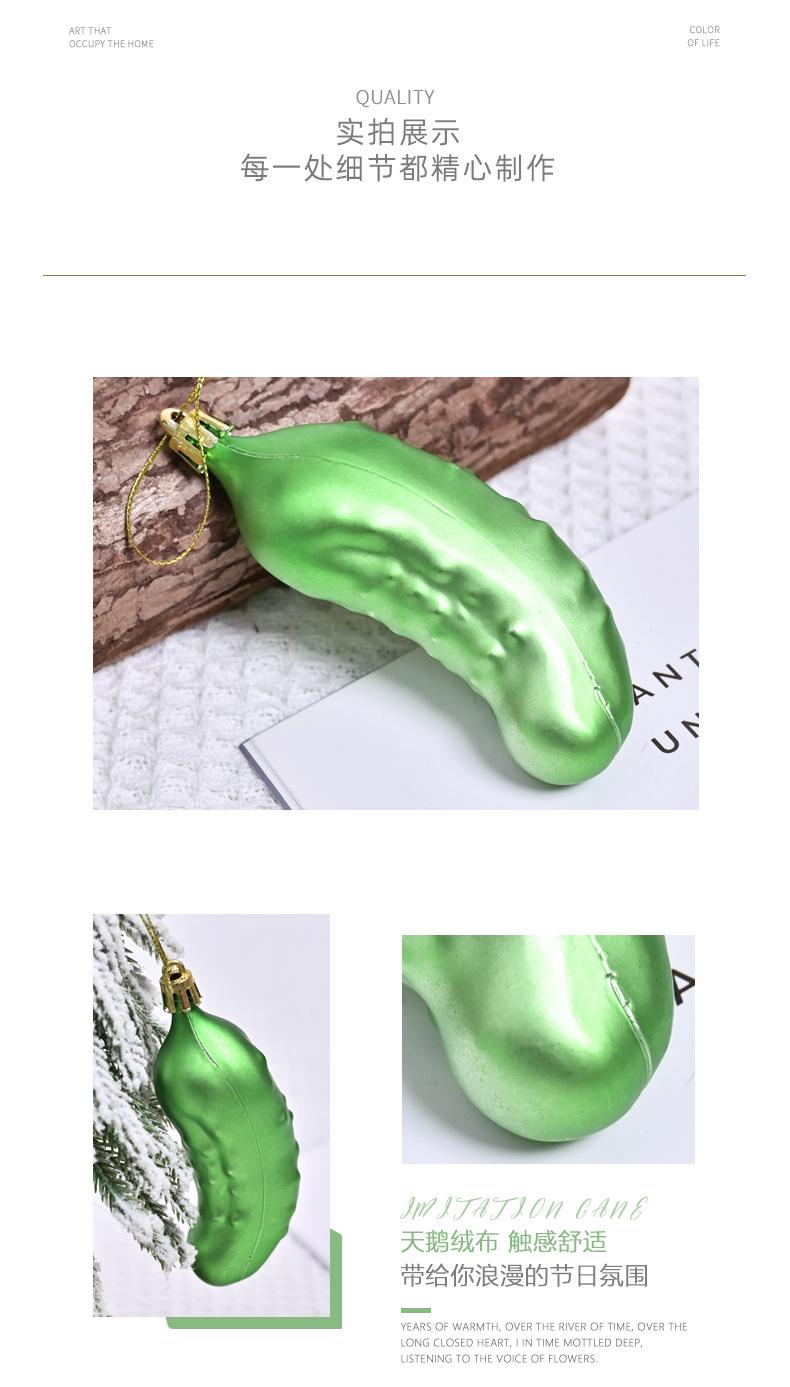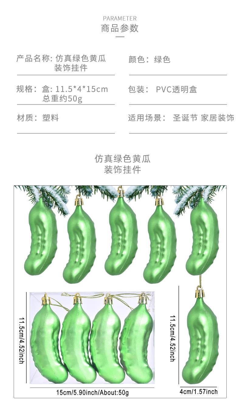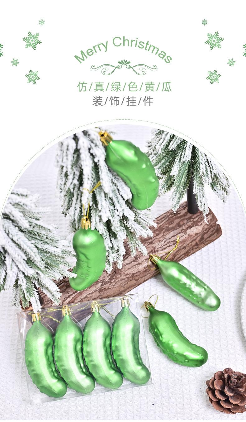 Simulação de decoração de Natal transfronteiriça, enfeites pendurados de árvore de Natal de pepino verde, decorações de plástico para casa de Natal do Velho Mundo