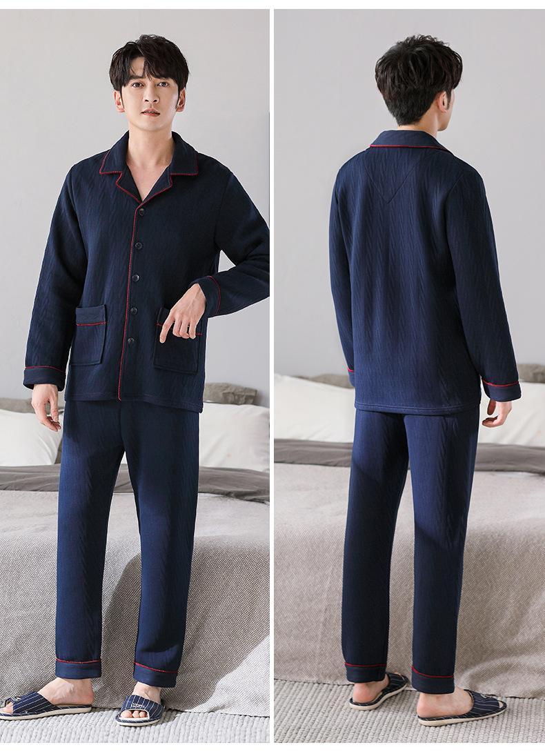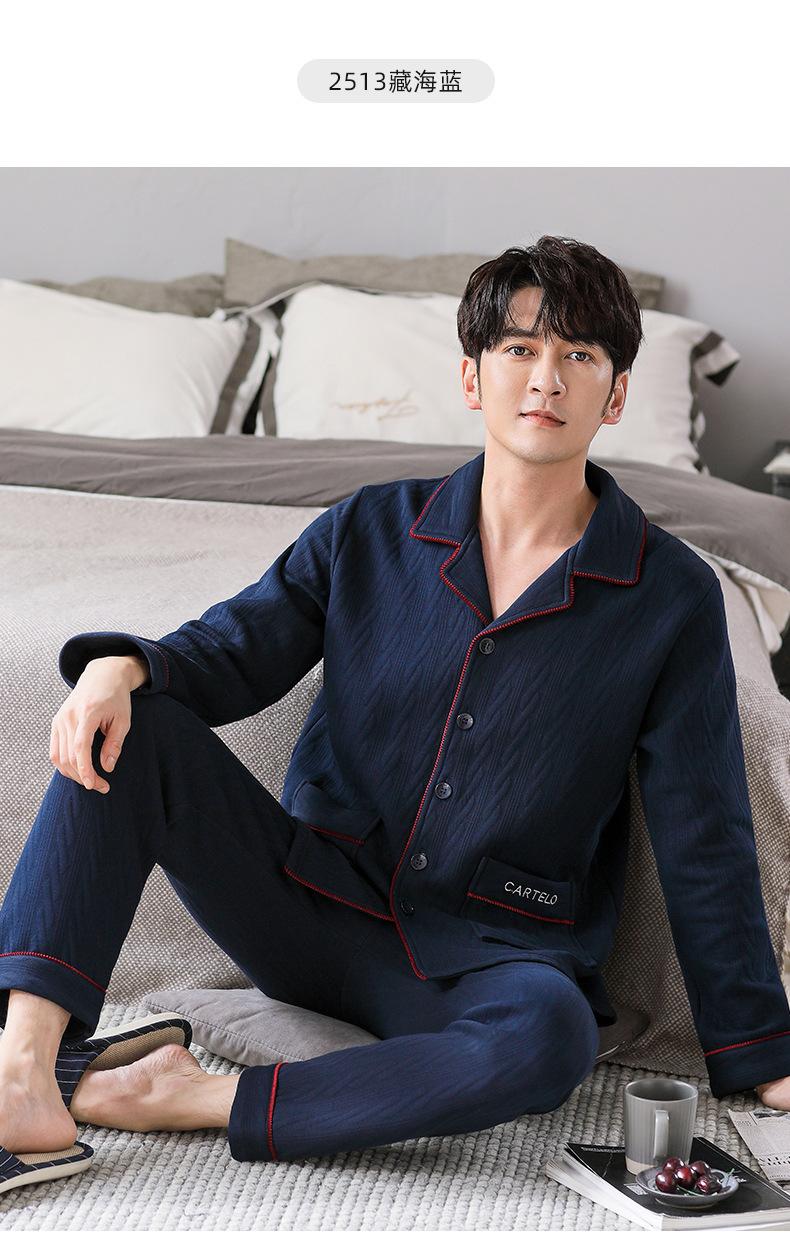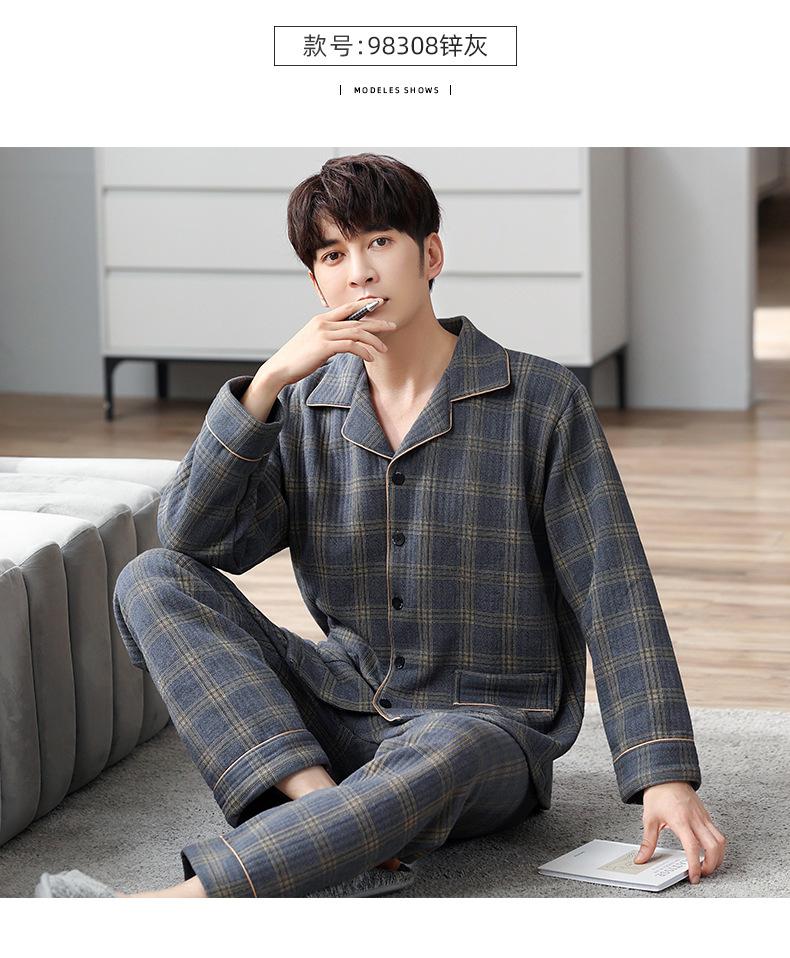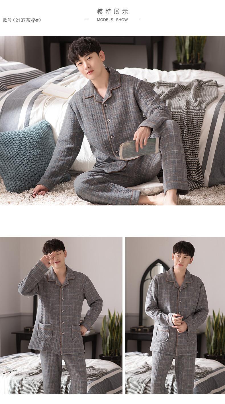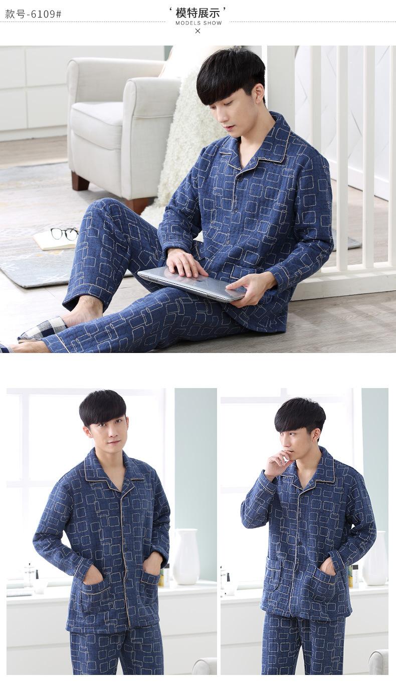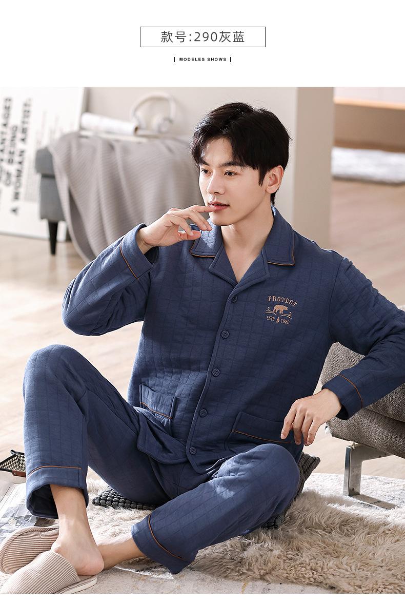 Compre Pijamas masculinos primavera e outono algodão grosso manga comprida outono e inverno algodão fino algodão masculino roupas para casa no atacado no Joom.pro