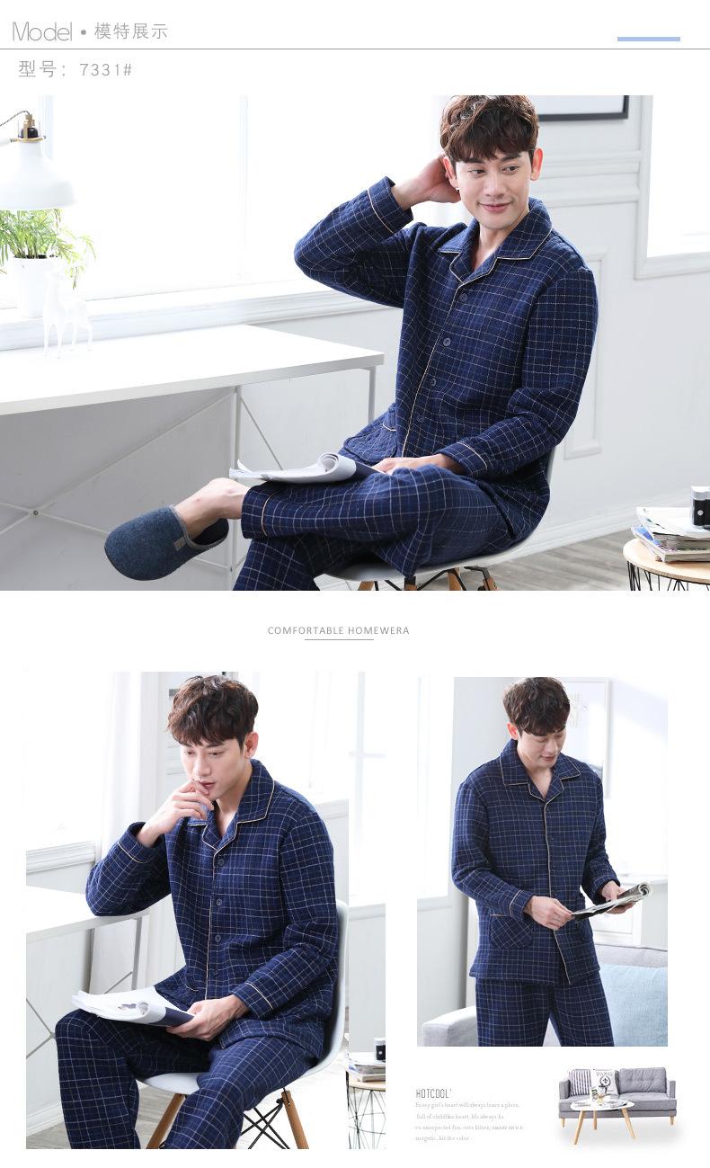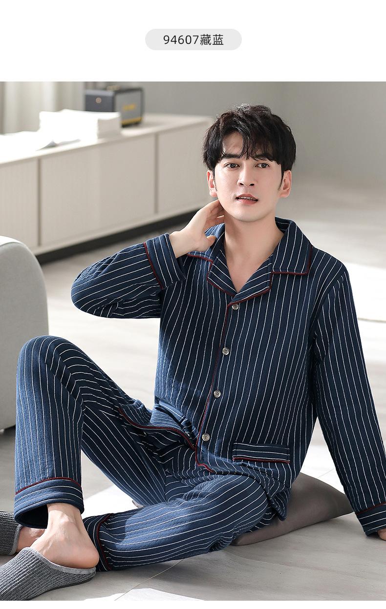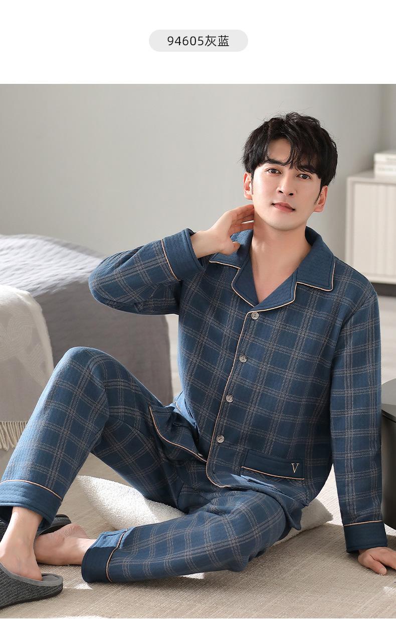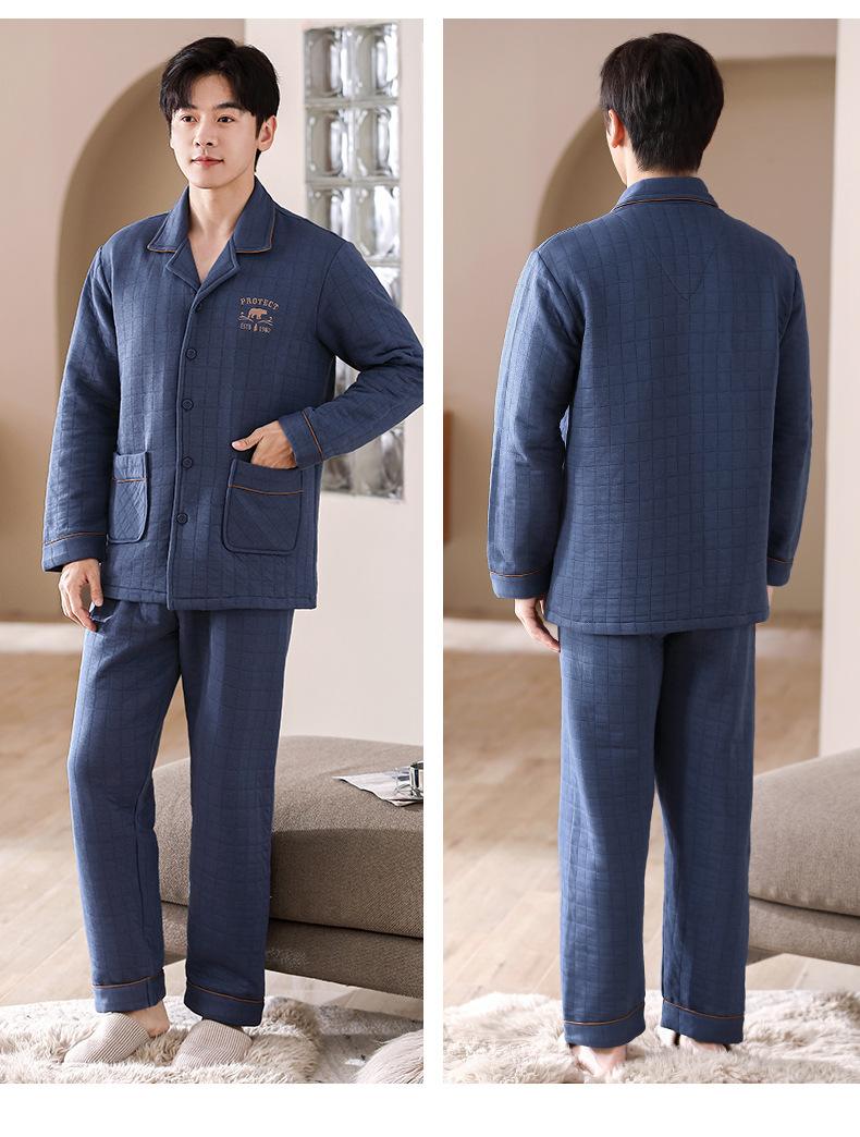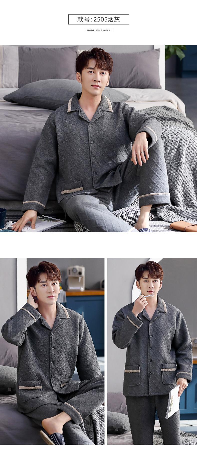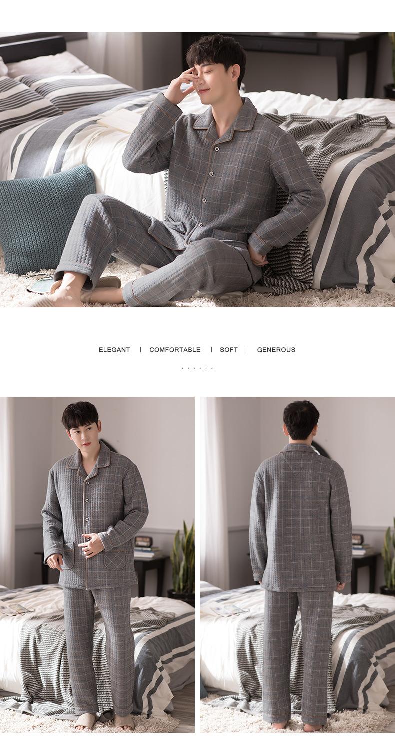 Compre Pijamas masculinos primavera e outono algodão grosso manga comprida outono e inverno algodão fino algodão masculino roupas para casa no atacado no Joom.pro