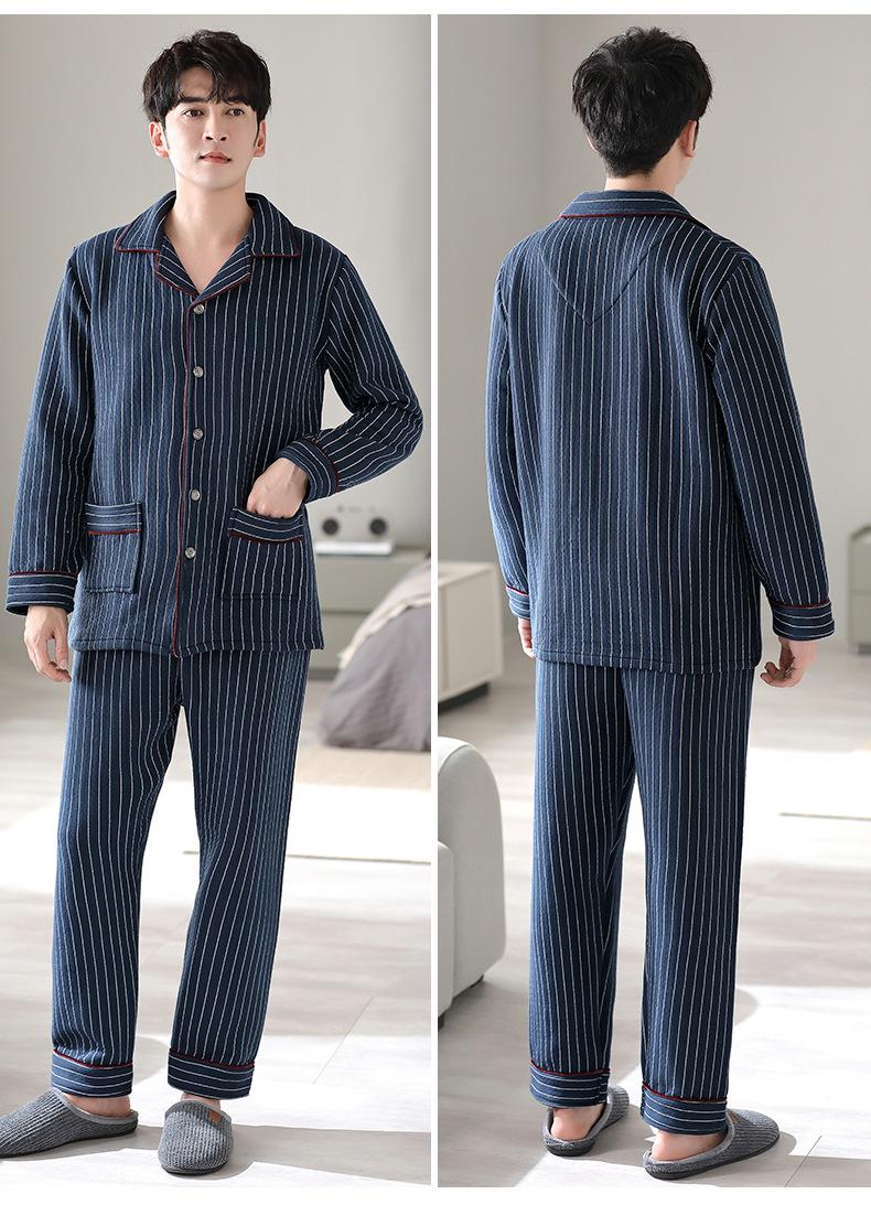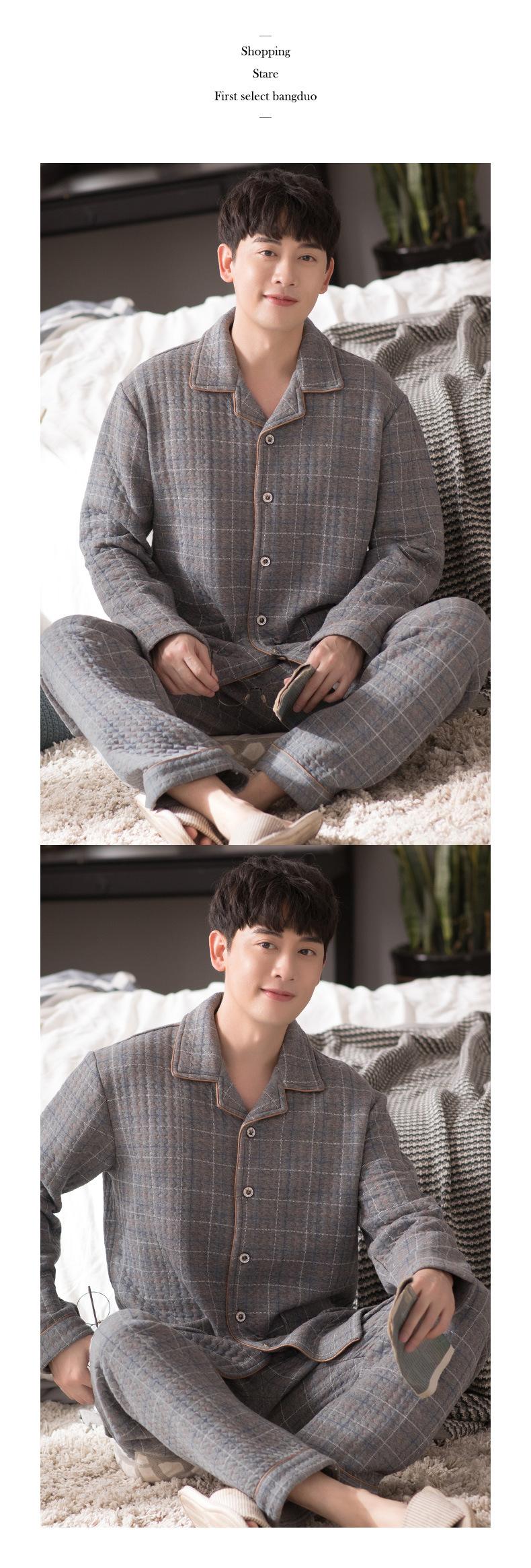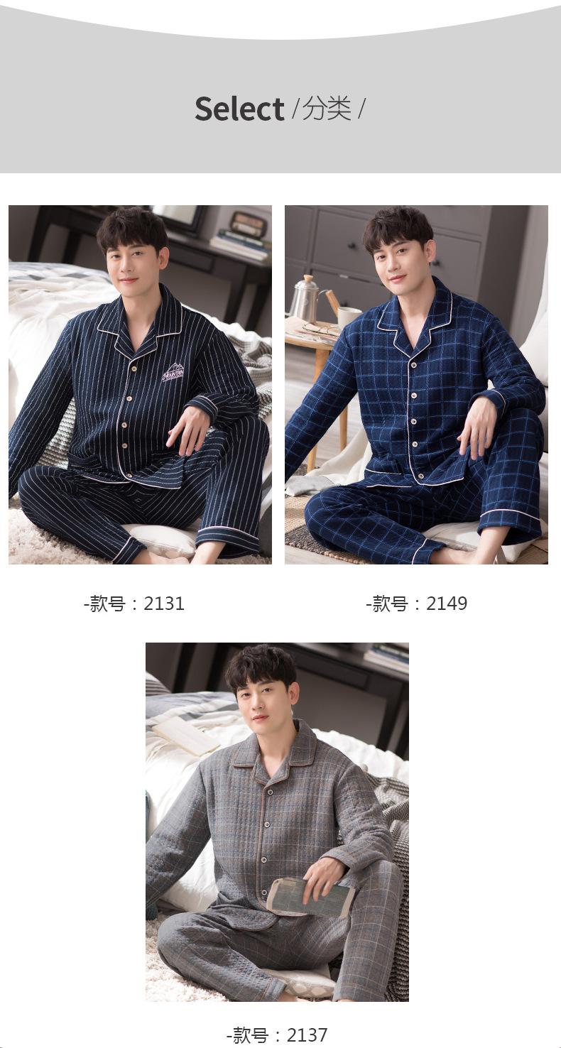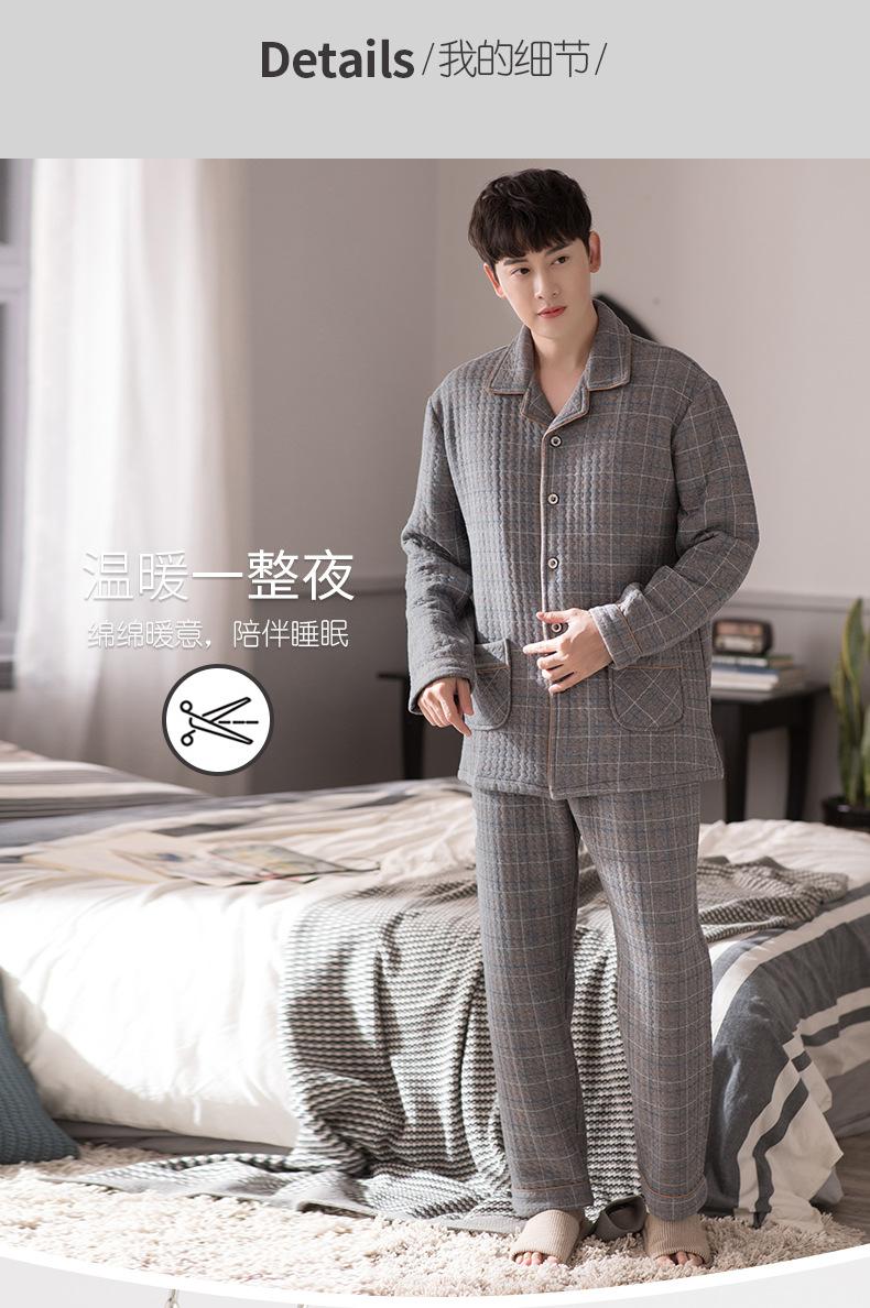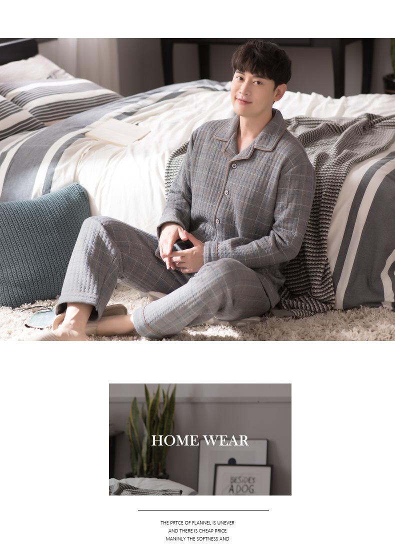 Compre Pijamas masculinos primavera e outono algodão grosso manga comprida outono e inverno algodão fino algodão masculino roupas para casa no atacado no Joom.pro