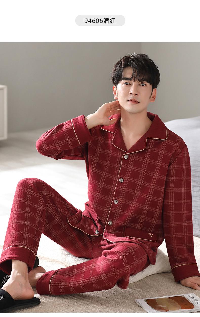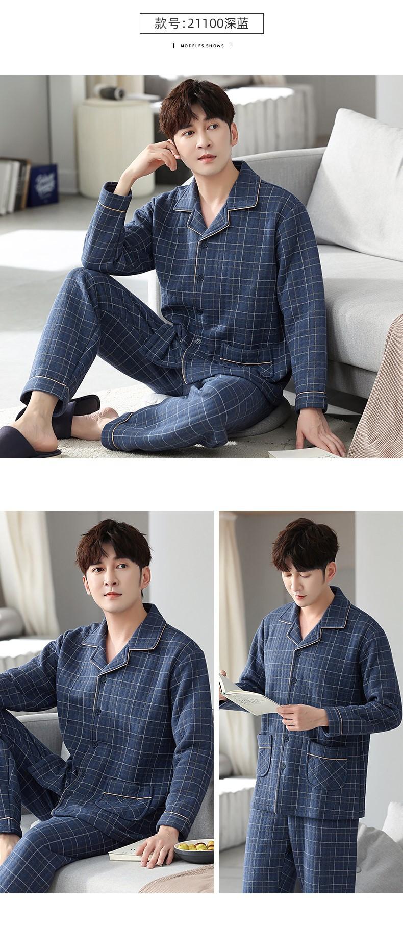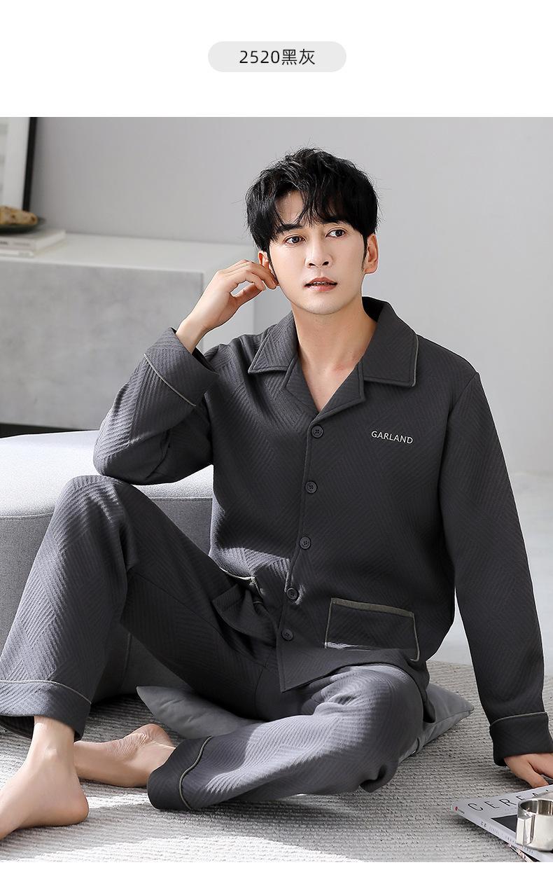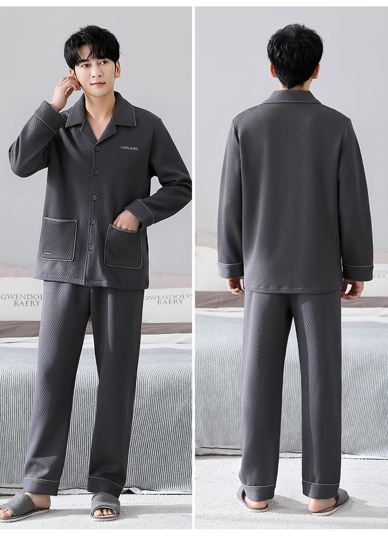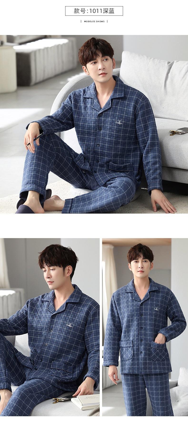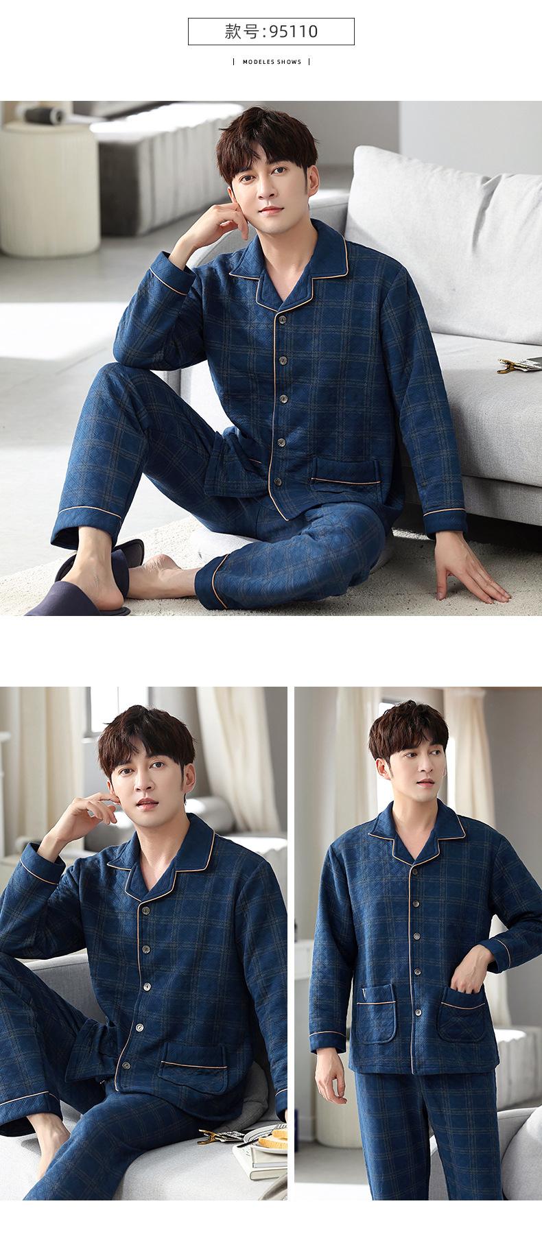 Compre Pijamas masculinos primavera e outono algodão grosso manga comprida outono e inverno algodão fino algodão masculino roupas para casa no atacado no Joom.pro