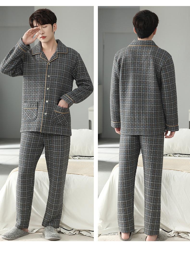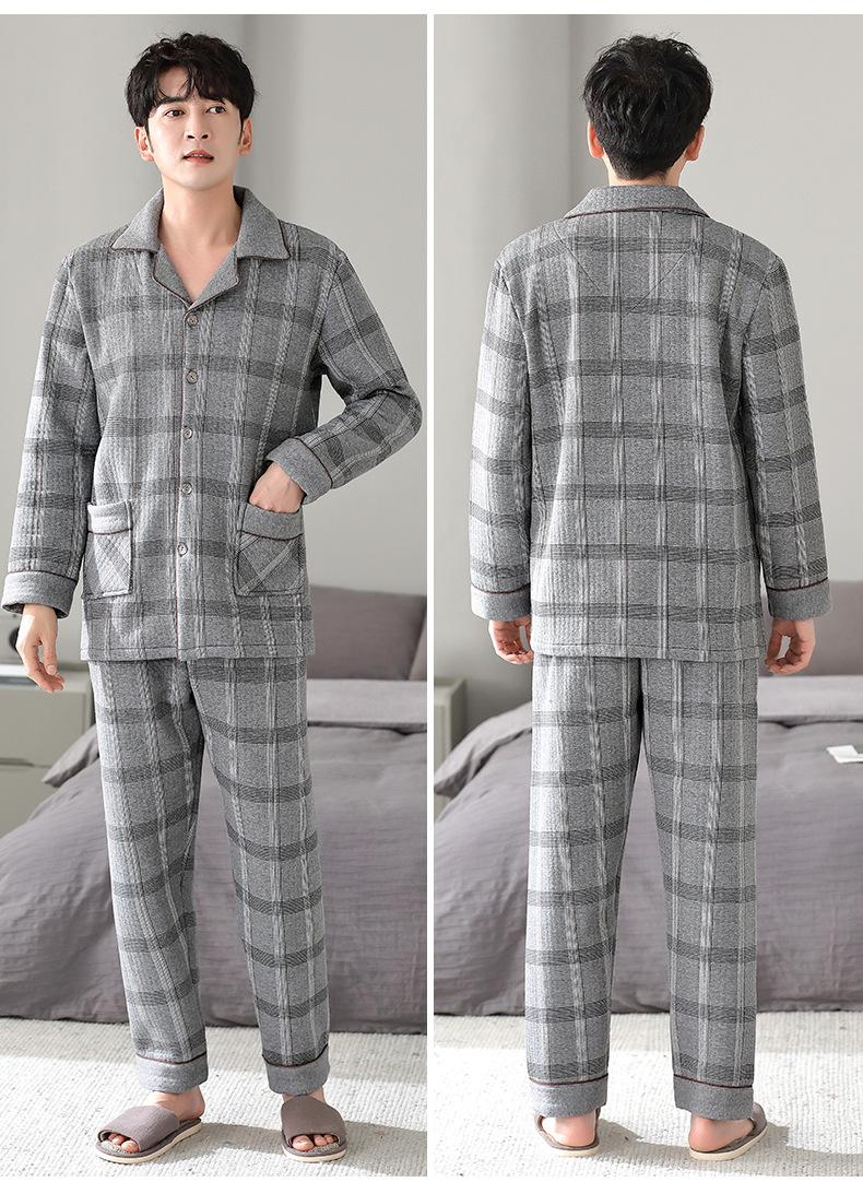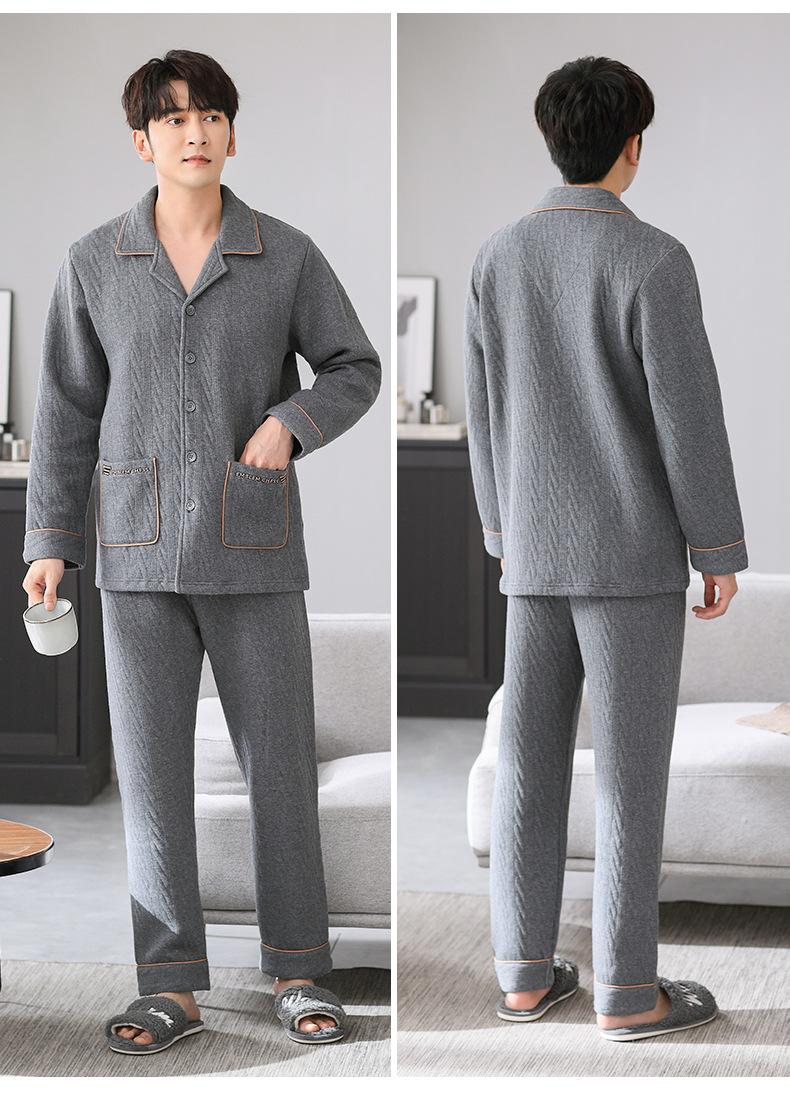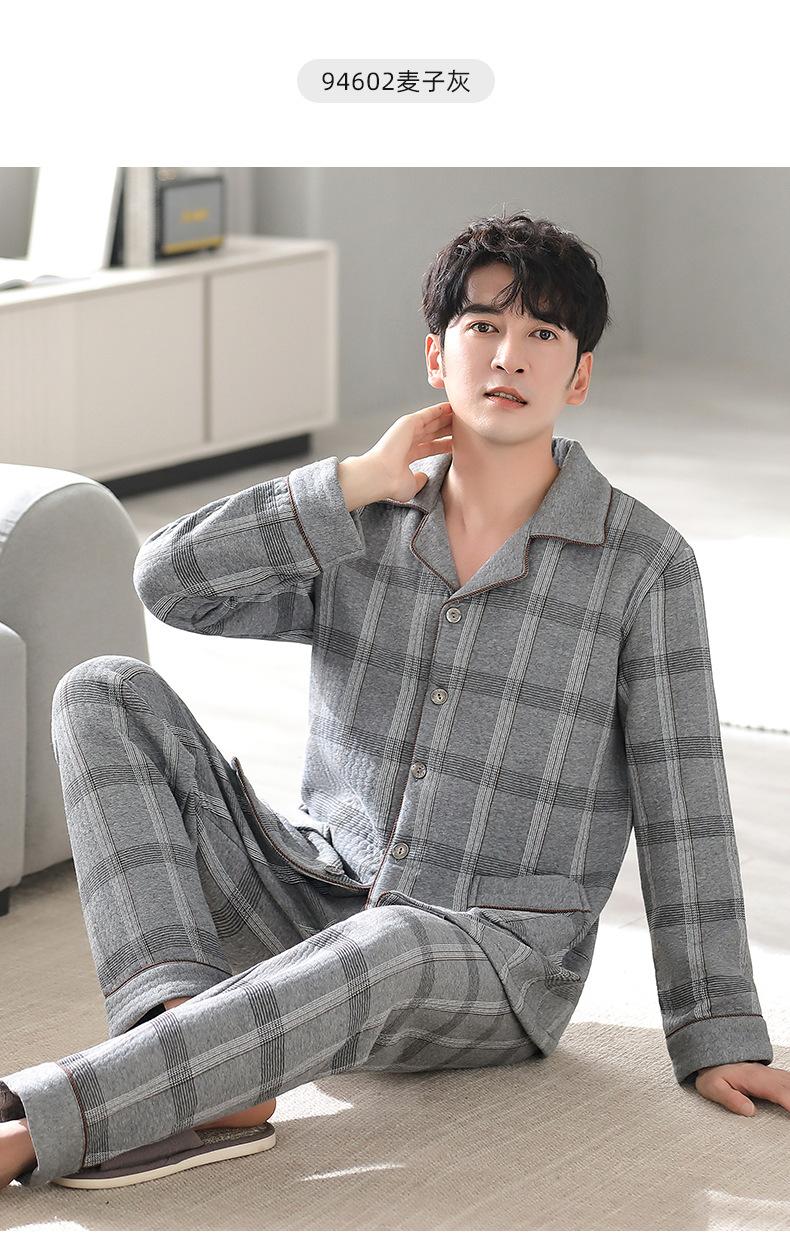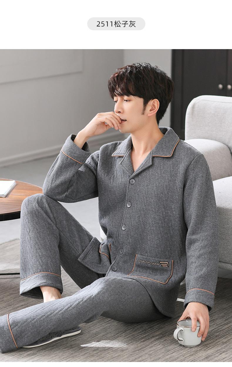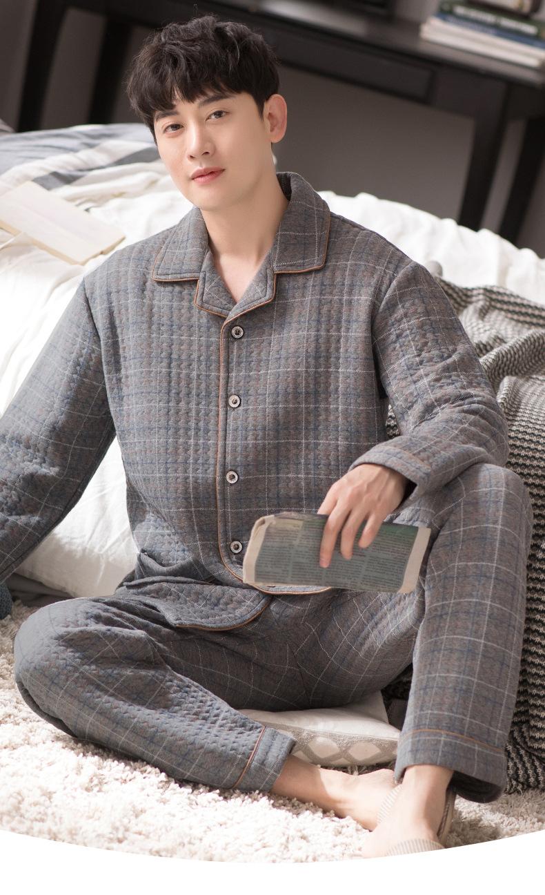 Pijamas masculinos primavera e outono algodão grosso manga comprida outono e inverno algodão fino algodão masculino roupas para casa