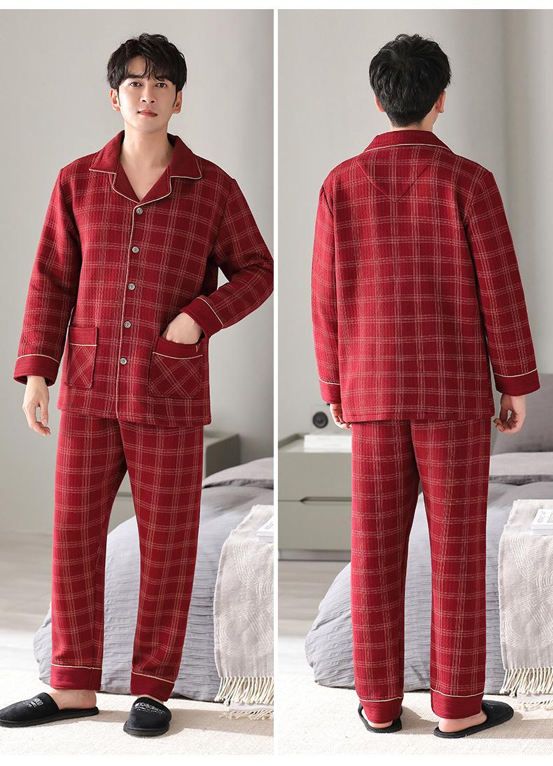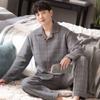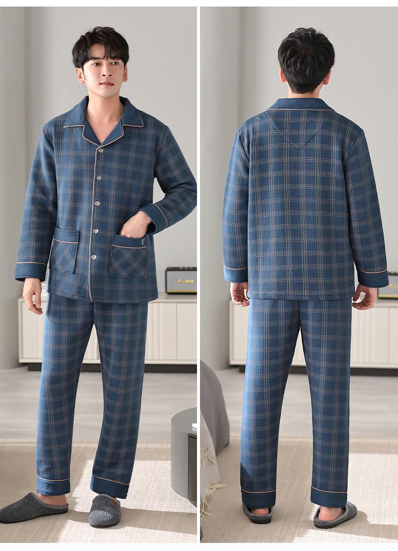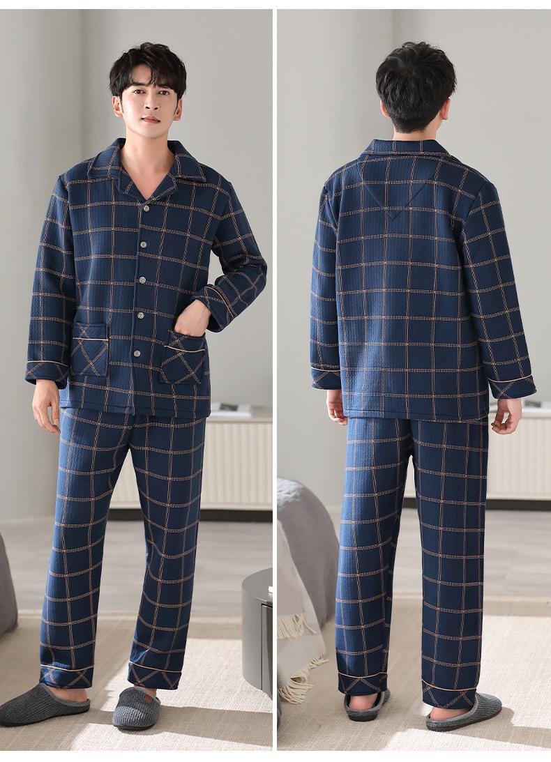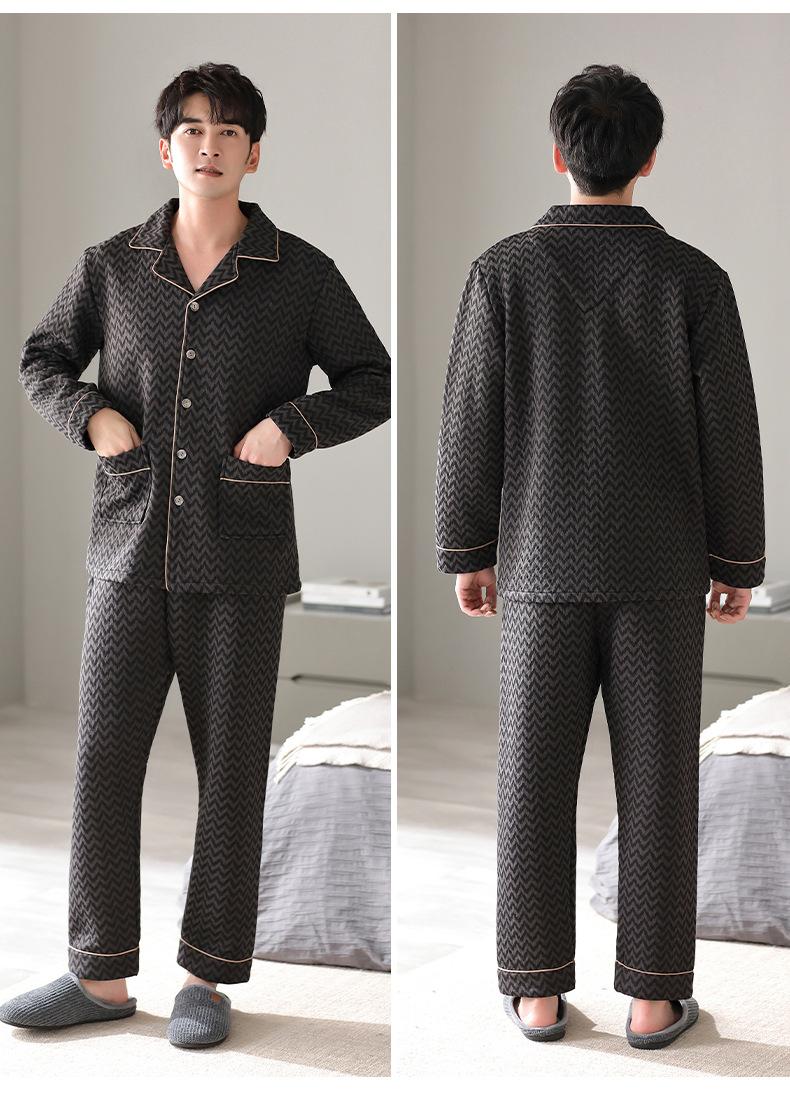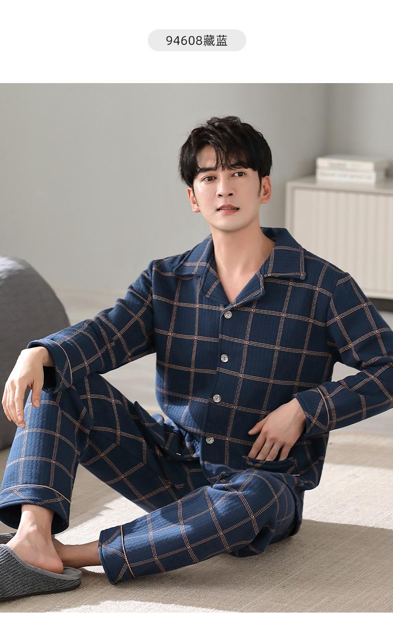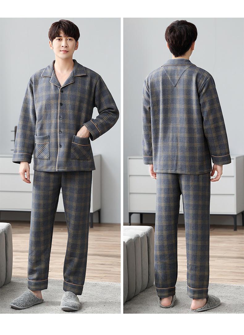 Pijamas masculinos primavera e outono algodão grosso manga comprida outono e inverno algodão fino algodão masculino roupas para casa