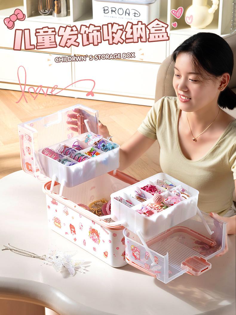 Caixa de armazenamento de acessórios para cabelo para meninas Faixa de cabelo Grampo de cabelo Faixa de cabeça de bebê Faixa de borracha Caixa de joias Grande capacidade Caixa de joias para chapéus infantis