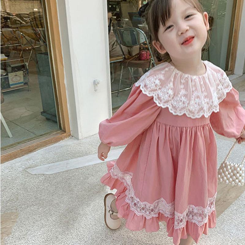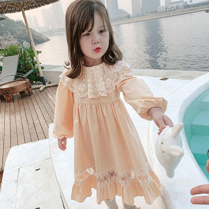 Vestido de menina primavera e outono manga comprida renda princesa vestido estilo coreano estilo ocidental vestido cross-border cabelo para bebê meninas
