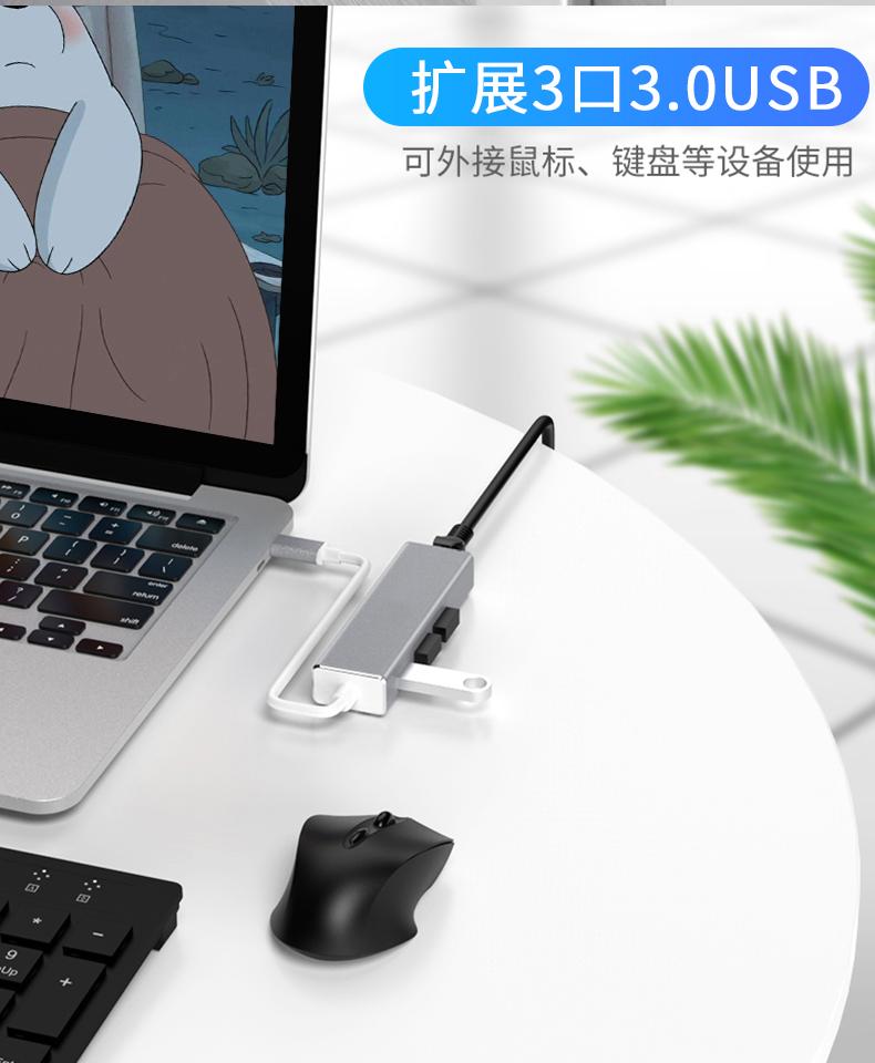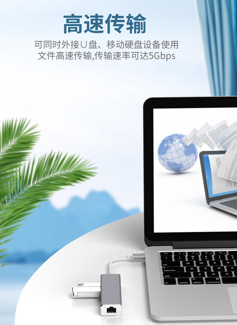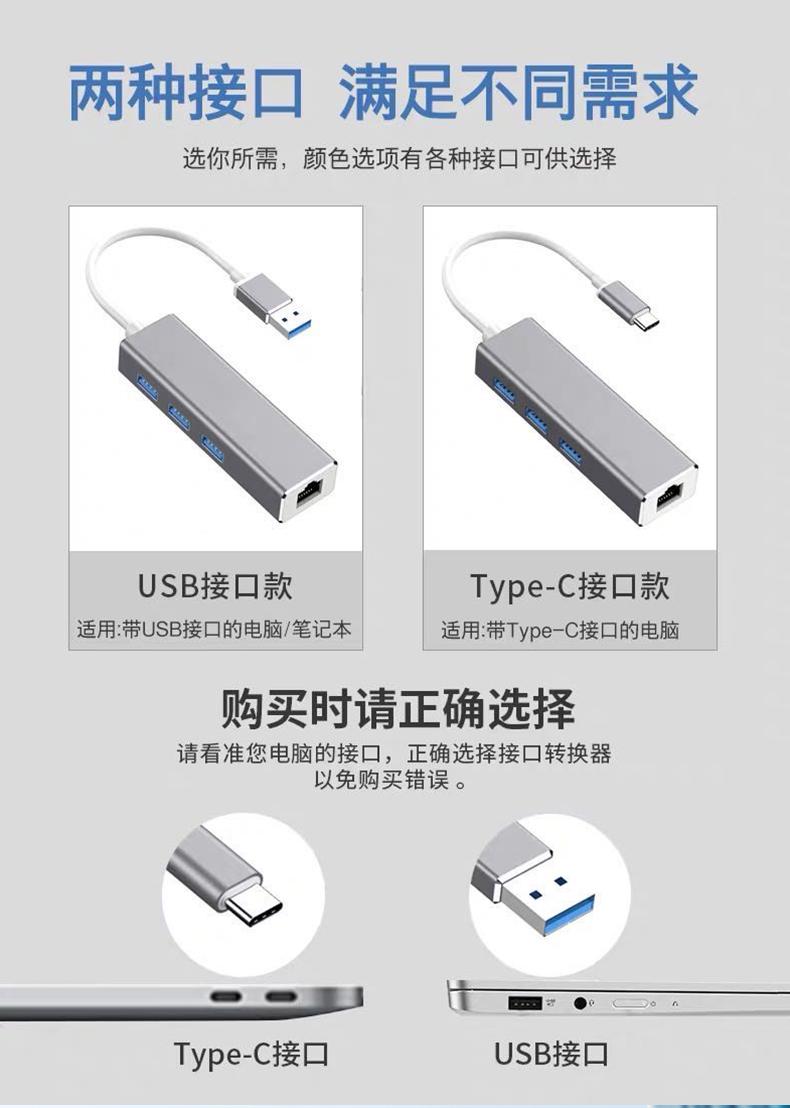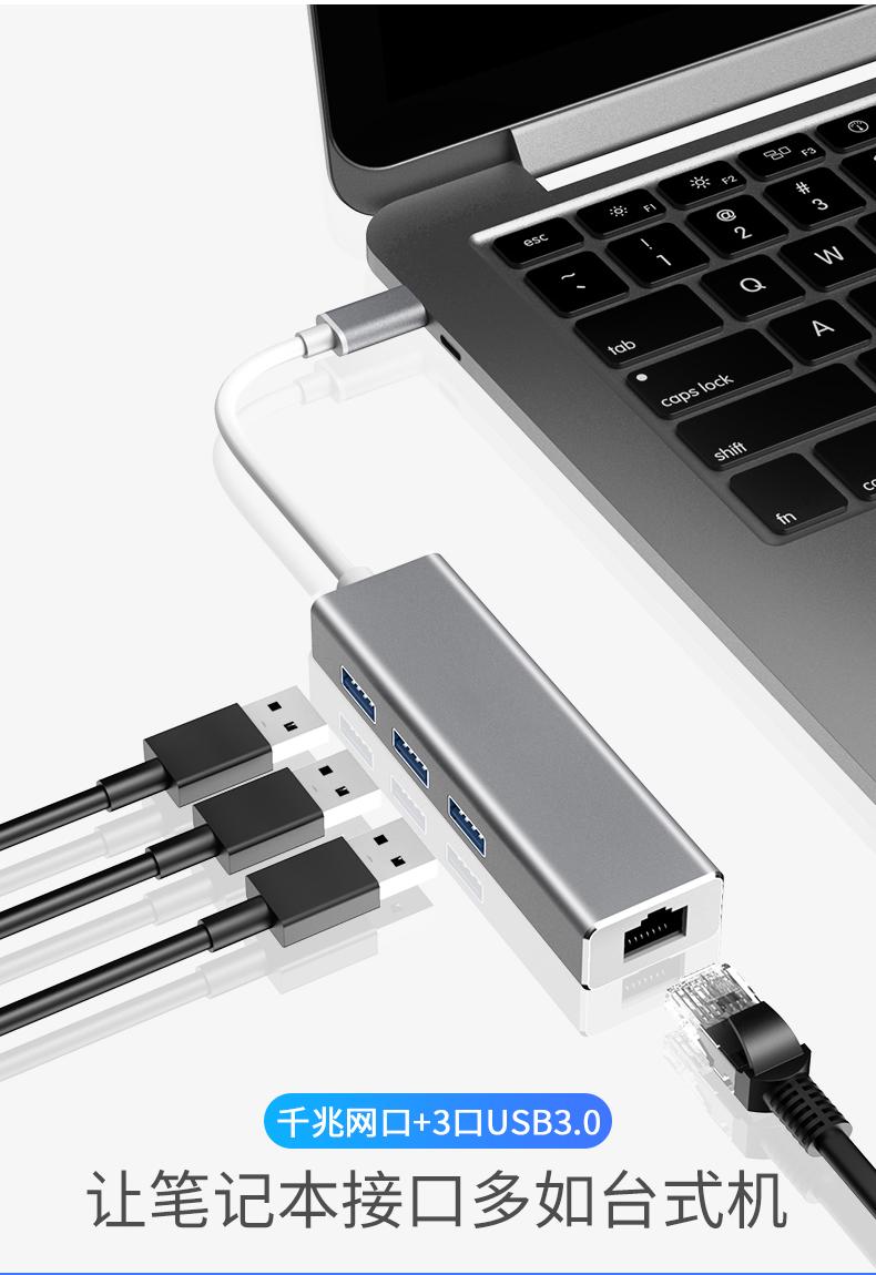 Hub Tipo-C para Usb3.0 + Placa de Rede Gigabit Rj45 Adequado para Conversor de Cabo de Rede para Laptop Apple