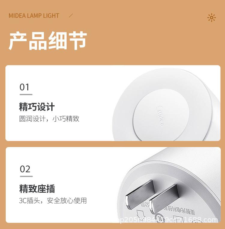 Midea Luz Noturna Inteligente Sensor de Corpo Humano Economia de Energia Quarto Escada Cabeceira Carregamento Bateria Banheiro Regulável