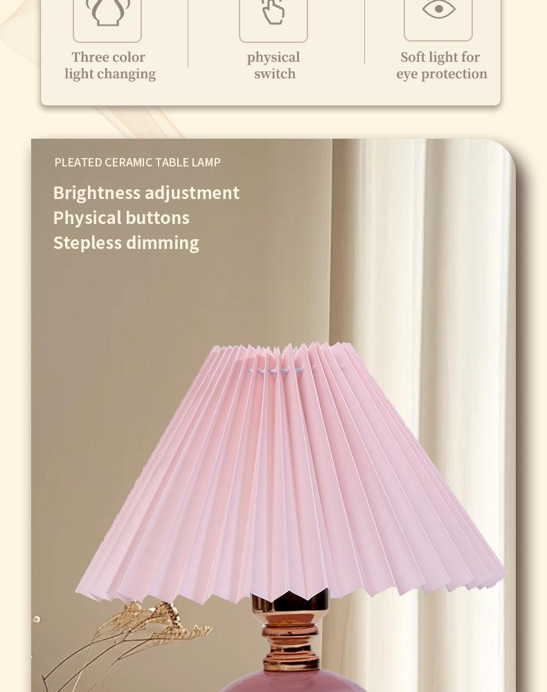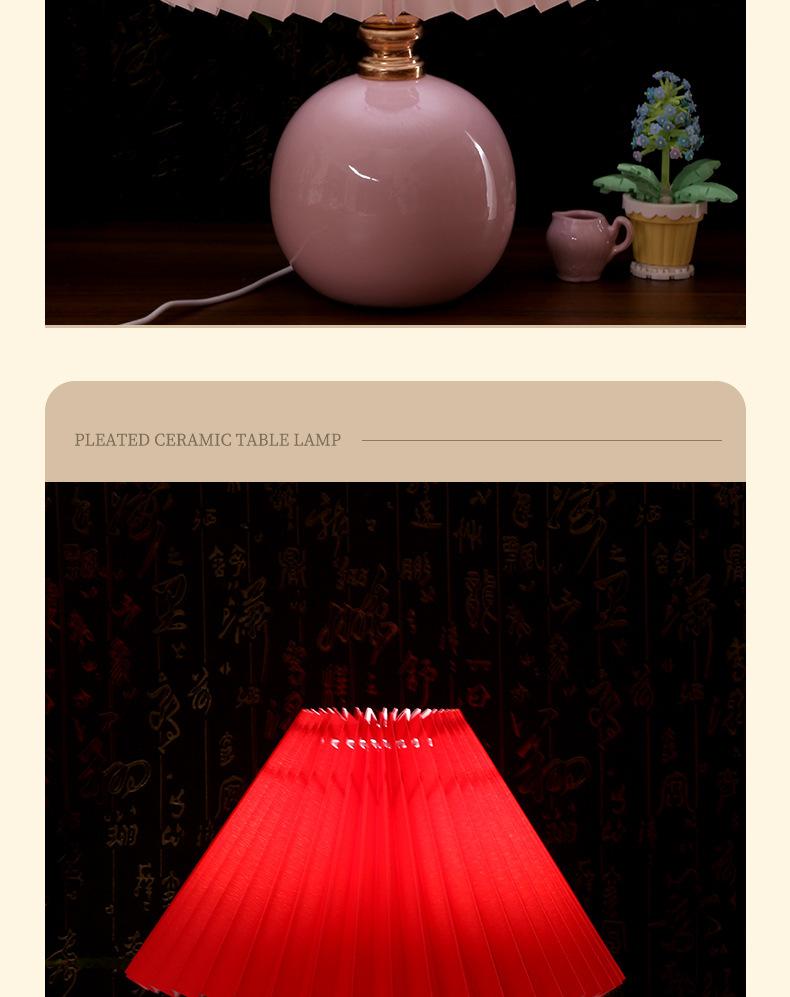 Red ceramic (red lampshade), White ceramic (white lampshade), Custard ceramic (beige lampshade), Ceramic (pink...
