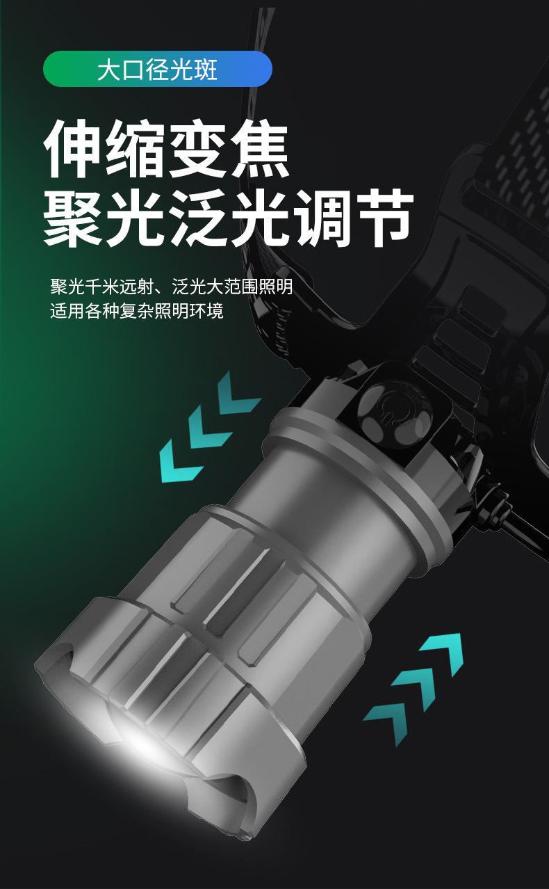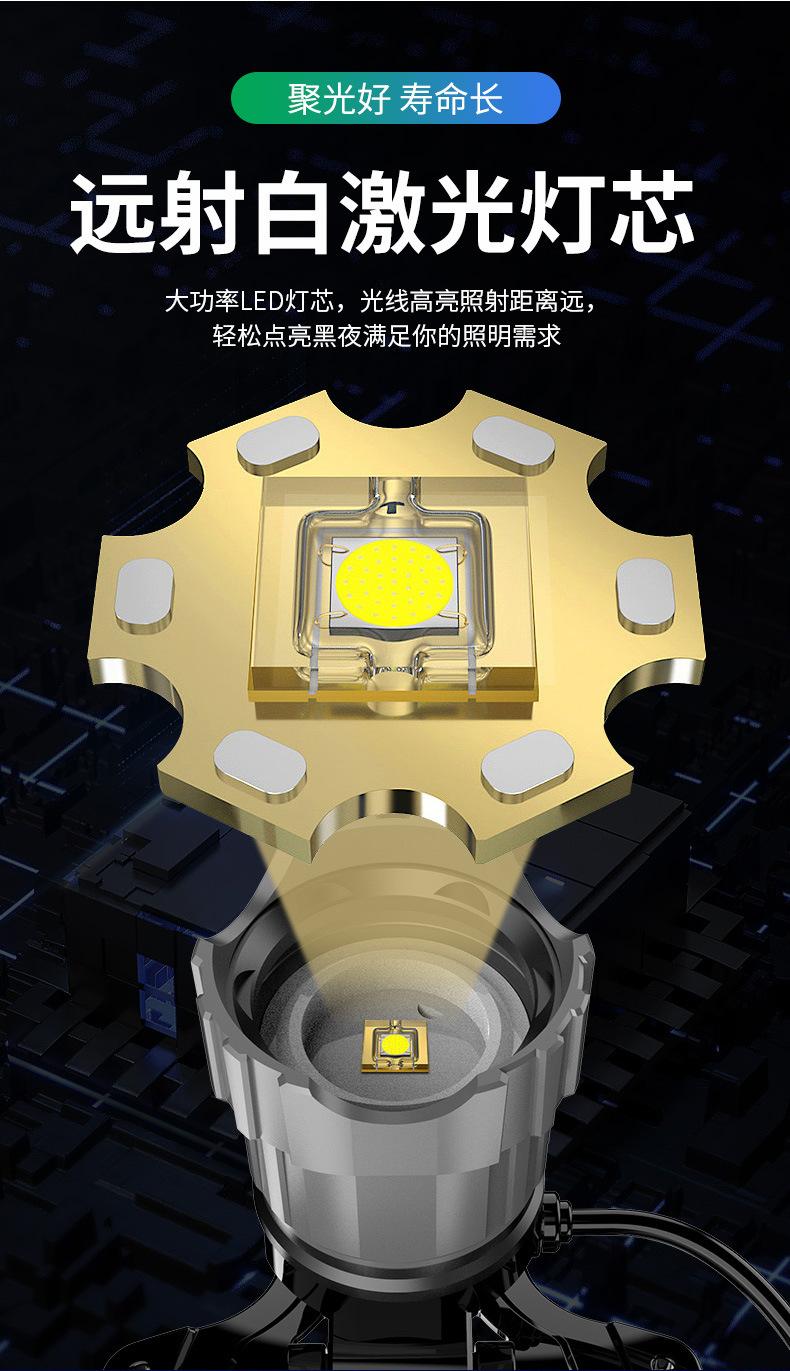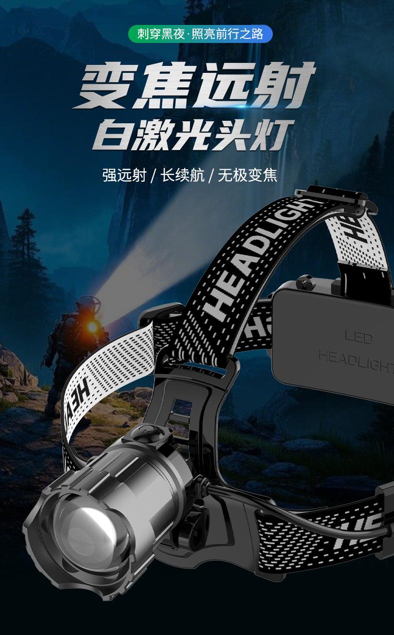 Farol de indução com laser branco, destaque, zoom, farol externo, acampamento ao ar livre, pesca noturna, farol portátil, personalização por atacado