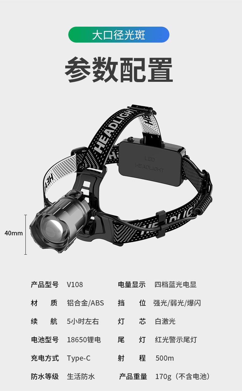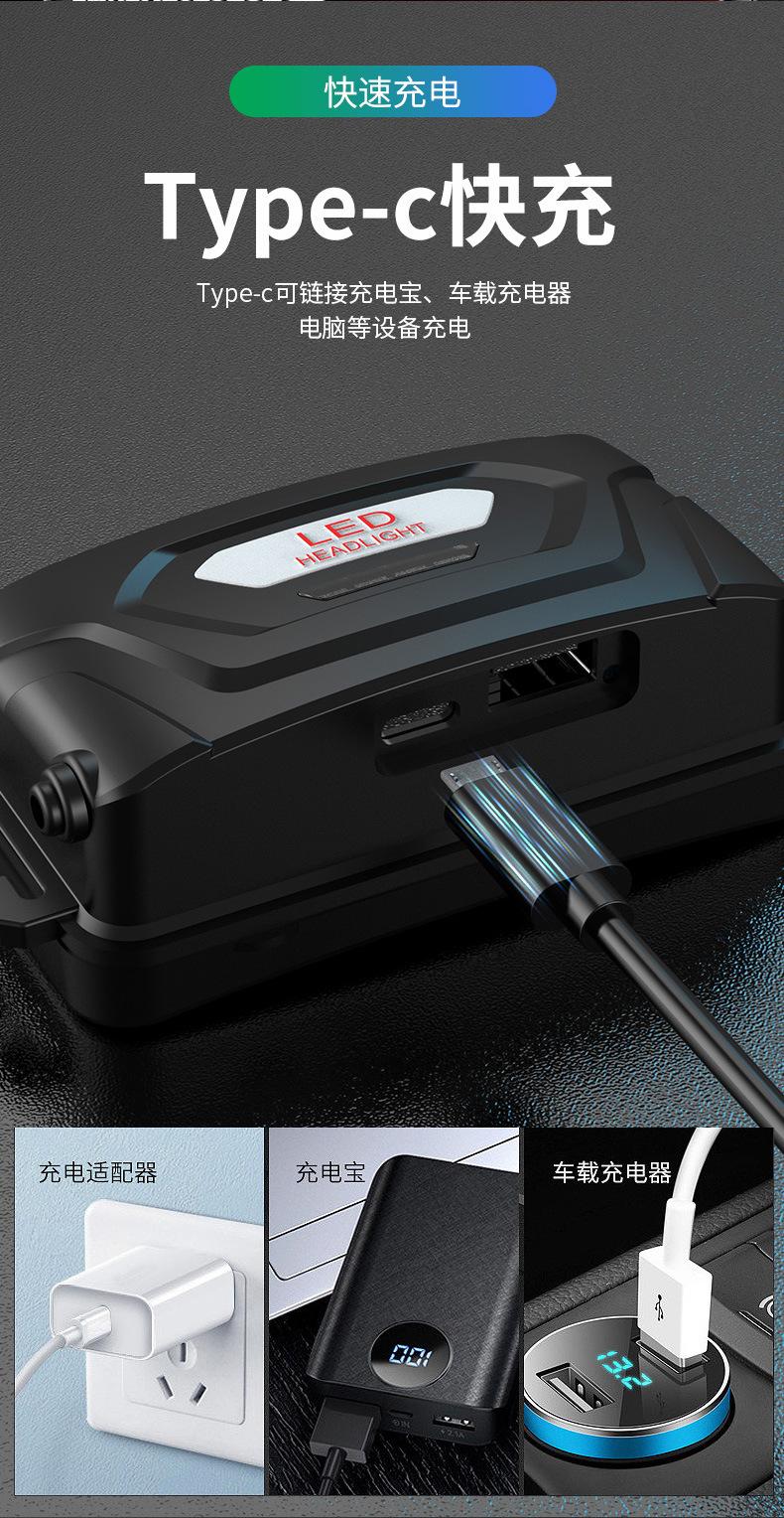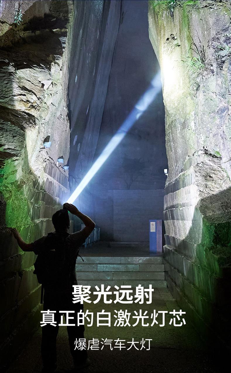Farol de indução com laser branco, destaque, zoom, farol externo, acampamento ao ar livre, pesca noturna, farol portátil, personalização por atacado