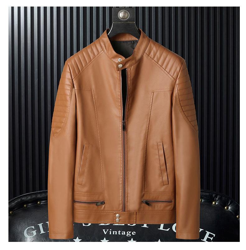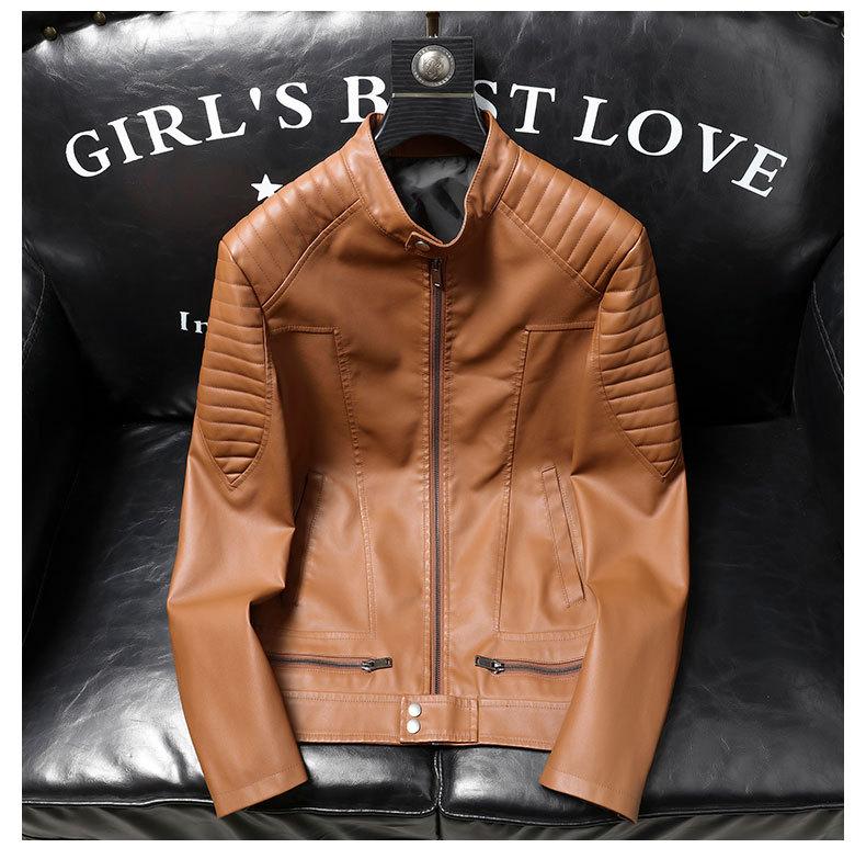 Compre Casaco de couro slim fit masculino estilo coreano bonito 2022 primavera nova juventude na moda gola alta jaqueta curta de couro de motocicleta no atacado no Joom.pro
