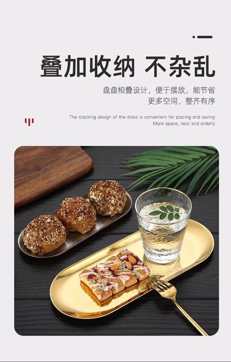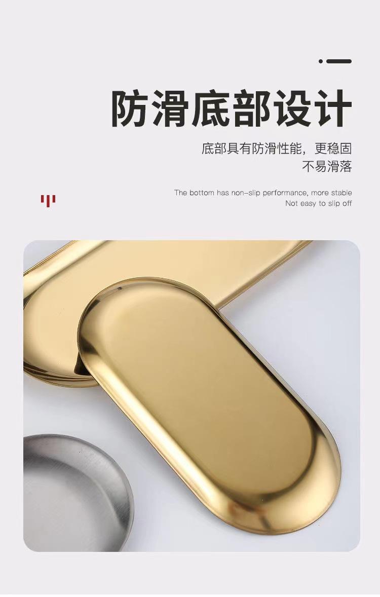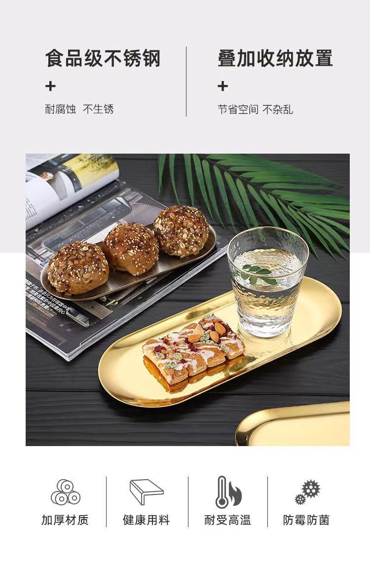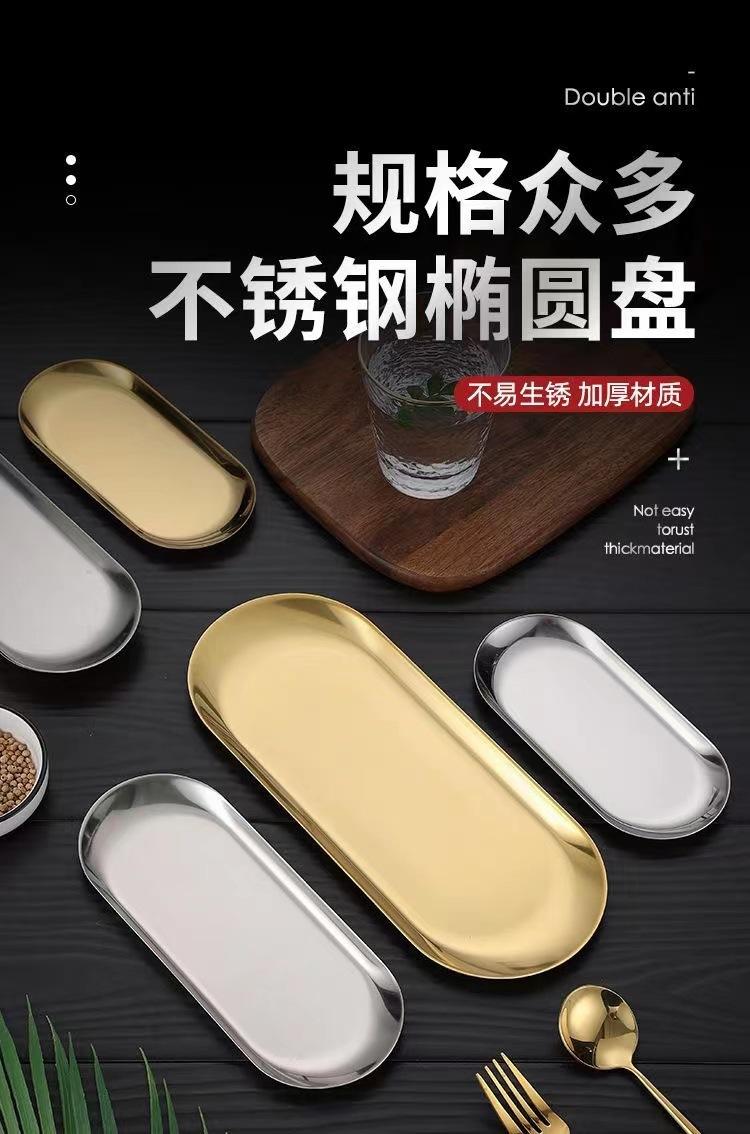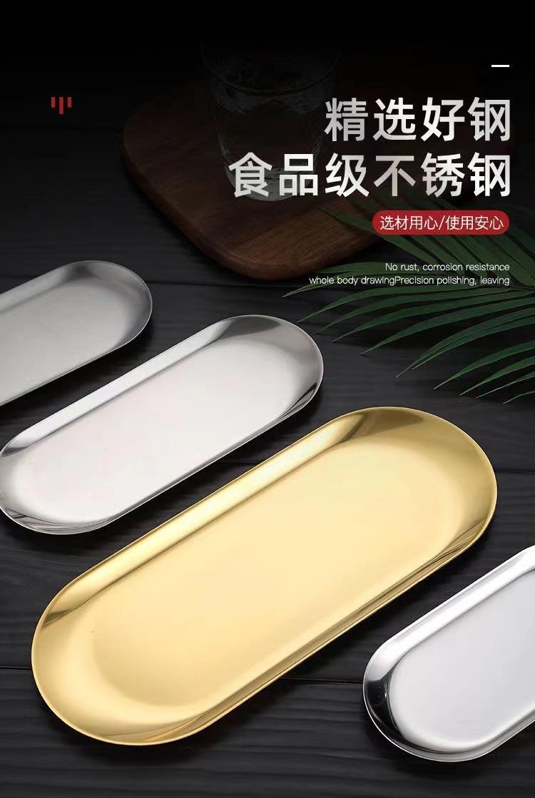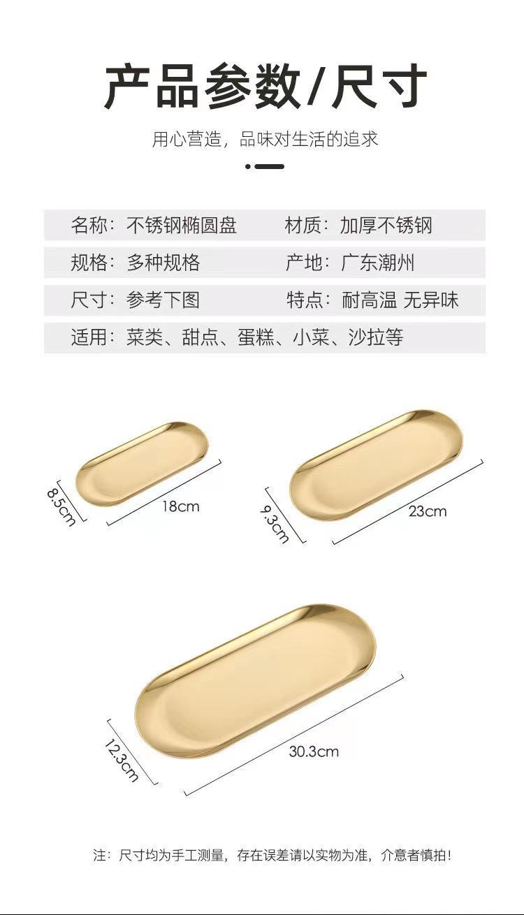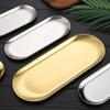 Prato Nórdico de Aço Inoxidável Oval Bandeja para Toalhas Restaurante Bandeja para Armazenamento de Joias Fundo Plano Dourado Bandeja Pequena Bandeja Multiuso