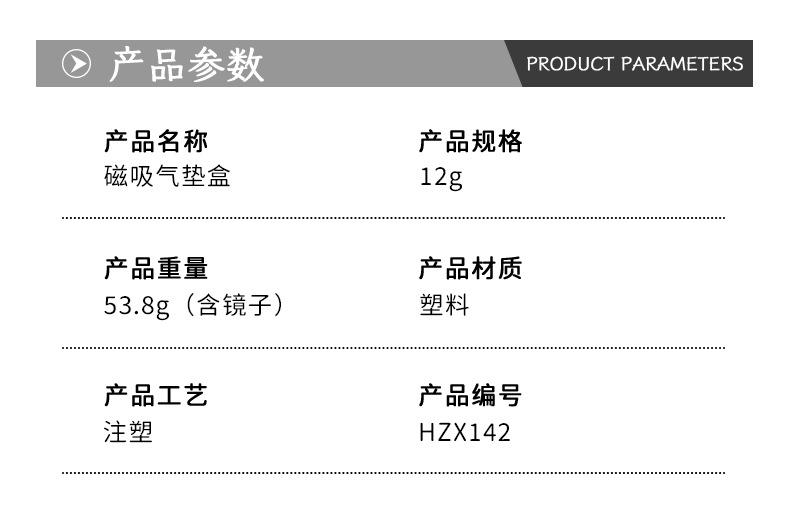 12g redondo fivela magnética caixa de almofada de ar material de embalagem pó pó pó BB creme com espelho base líquido almofada de ar caixa vazia vendas diretas