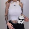 Colete curto slim fit bordado com letras sexy cropped feminino de verão