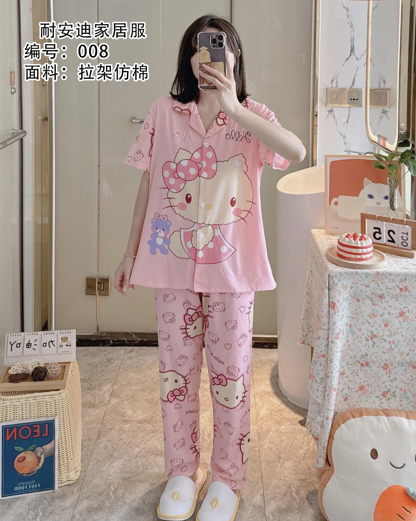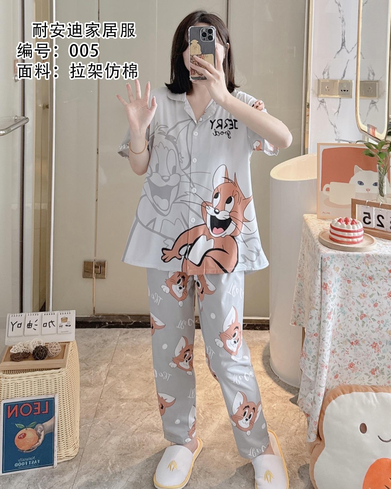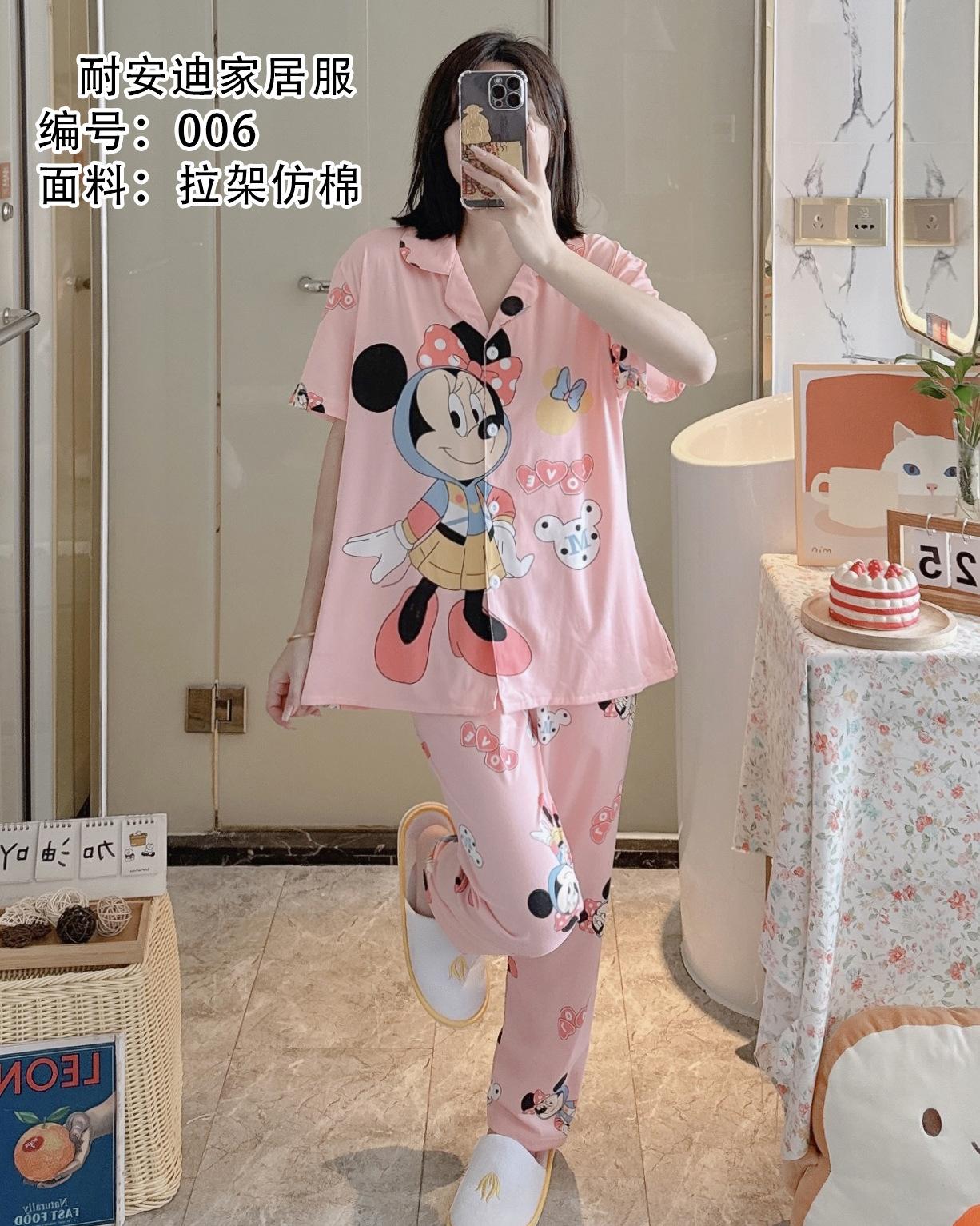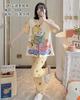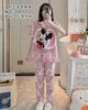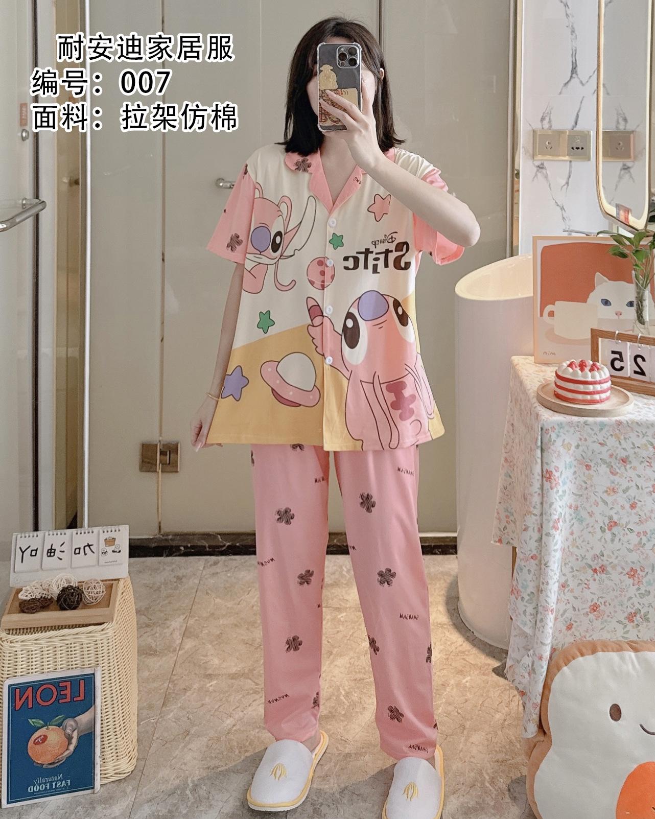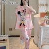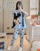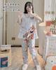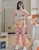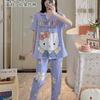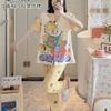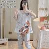 Pijama de algodão imitação feminino primavera e outono terno de manga curta doce casual simples calças roupa confortável