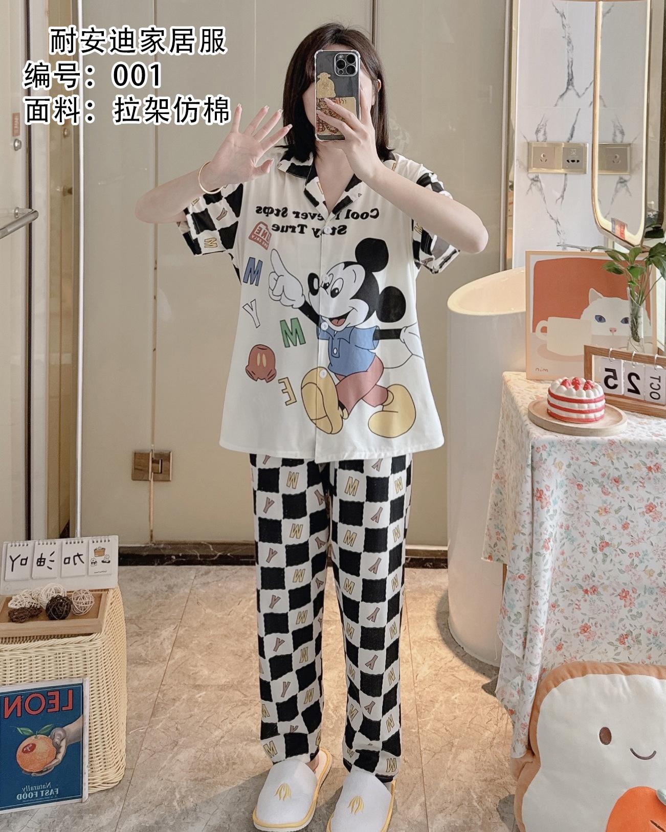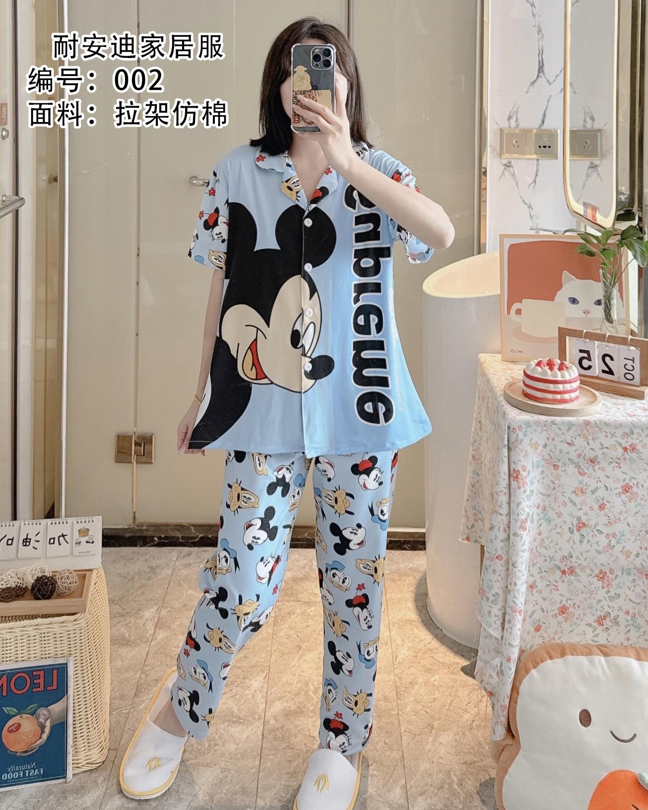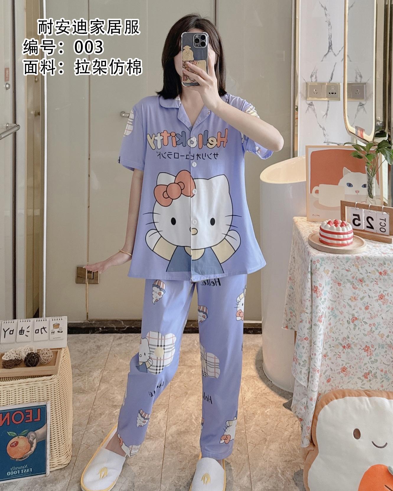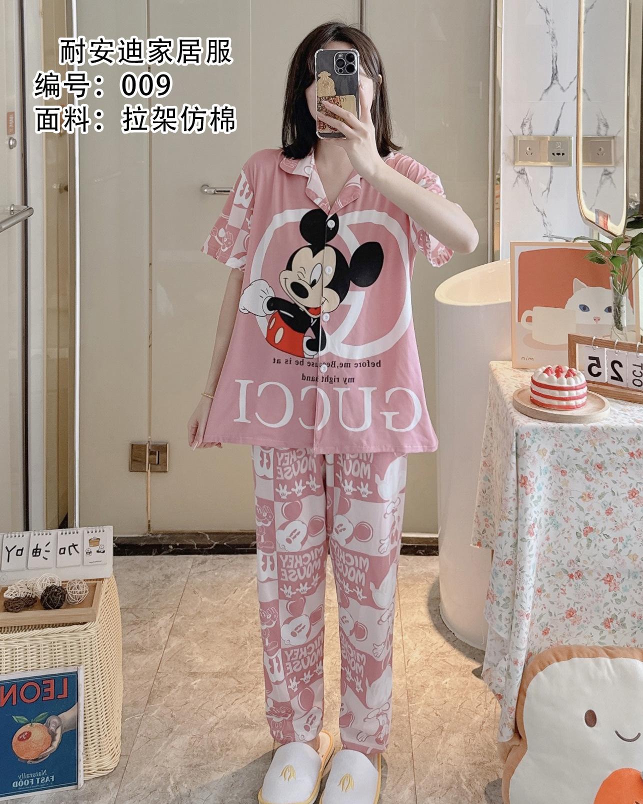 Pijama de algodão imitação feminino primavera e outono terno de manga curta doce casual simples calças roupa confortável