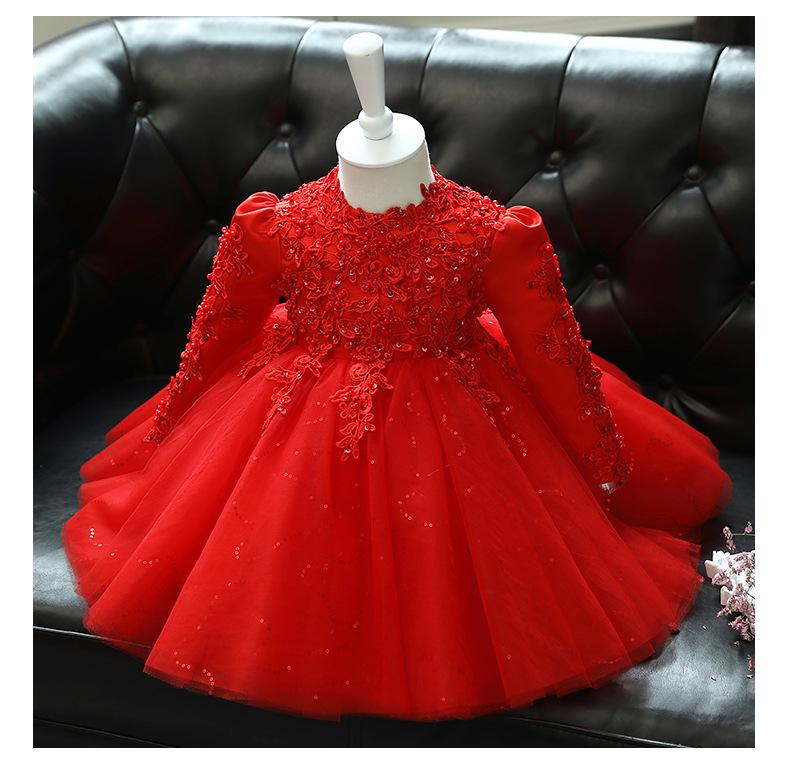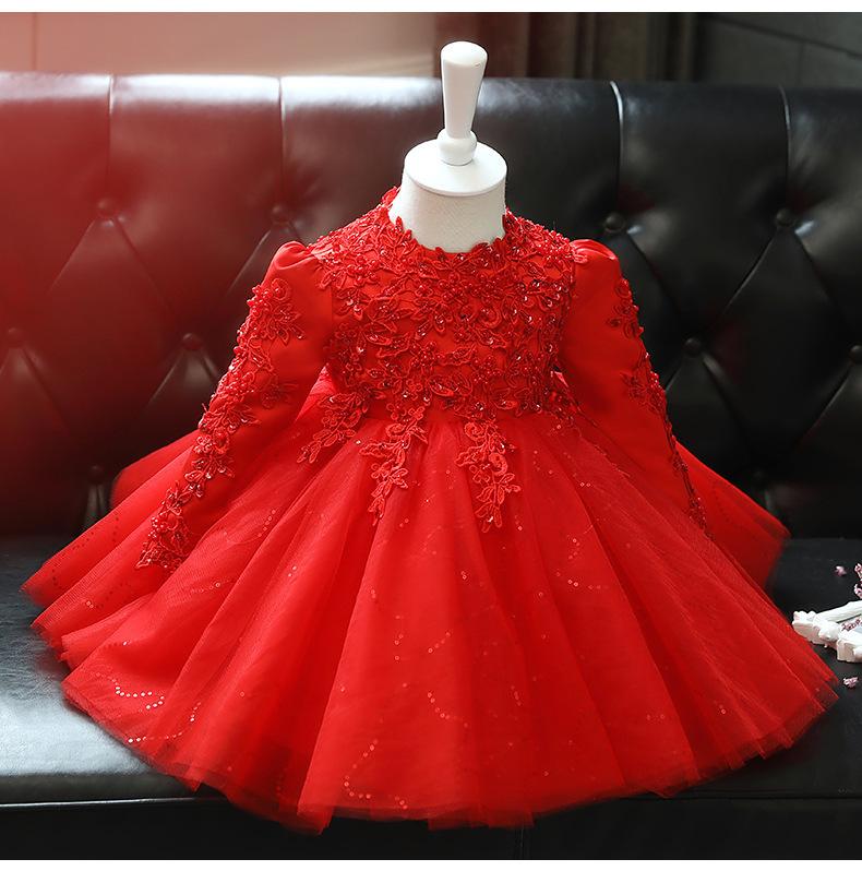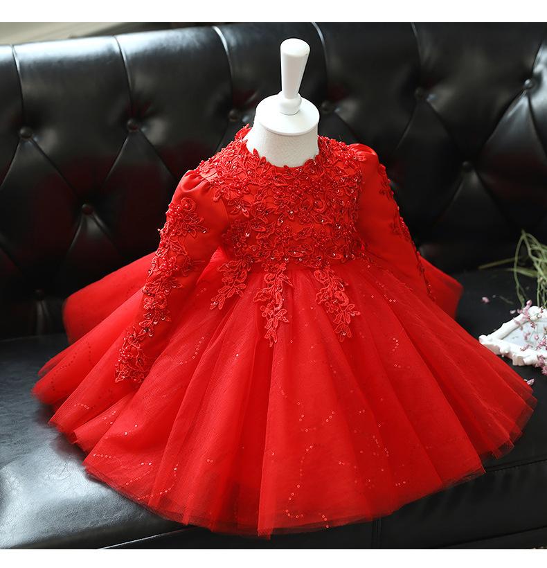 Vestido de um ano para menina, vestido de princesa para menina, vestido de aniversário infantil, vestido de gaze fofo para florista, vestido de outono espesso