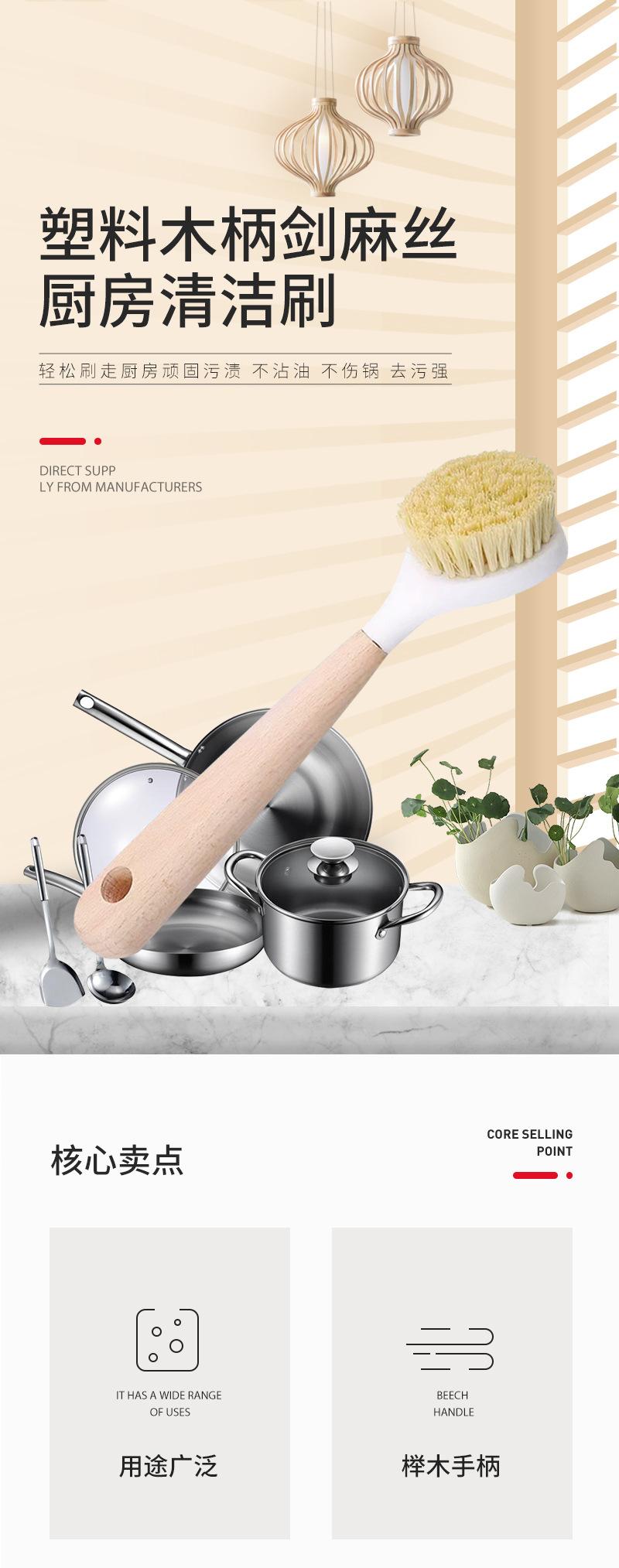 Escova para Lavar Panelas de Sisal com Cabo de Madeira Atacado Multifuncional Cabo Longo Limpeza de Cozinha Escova para Panelas Antiaderente Escova para Panelas Escova para Pratos