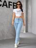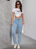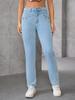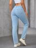 Jeans Casuais Europeus e Americanos 2024 Novos de Cintura Alta Amazon Transfronteiriços Femininos Ajustados Emagrecedores Azul Claro Calças de Perna Reta