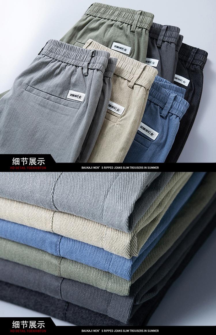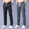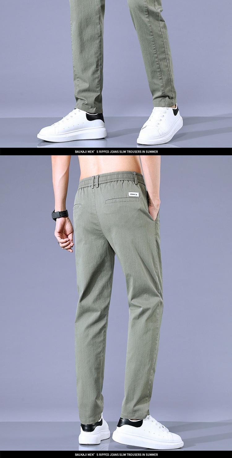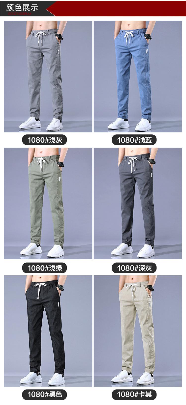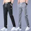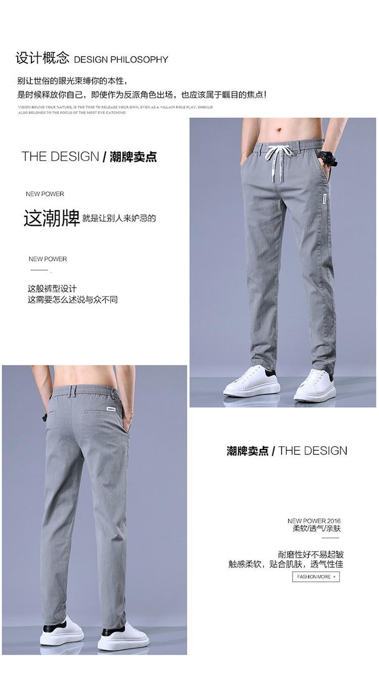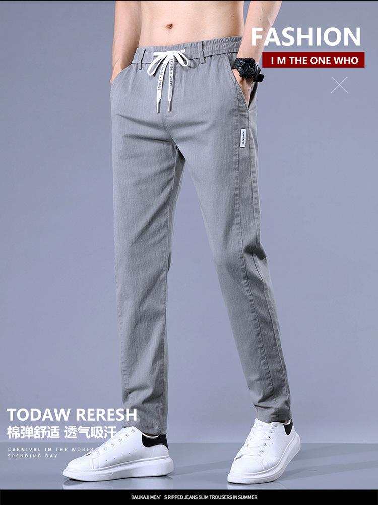 Calças casuais masculinas regulares de primavera e verão, pequenas, retas, finas, com cintura elástica, da moda, calças compridas para todos os tipos de homens jovens
