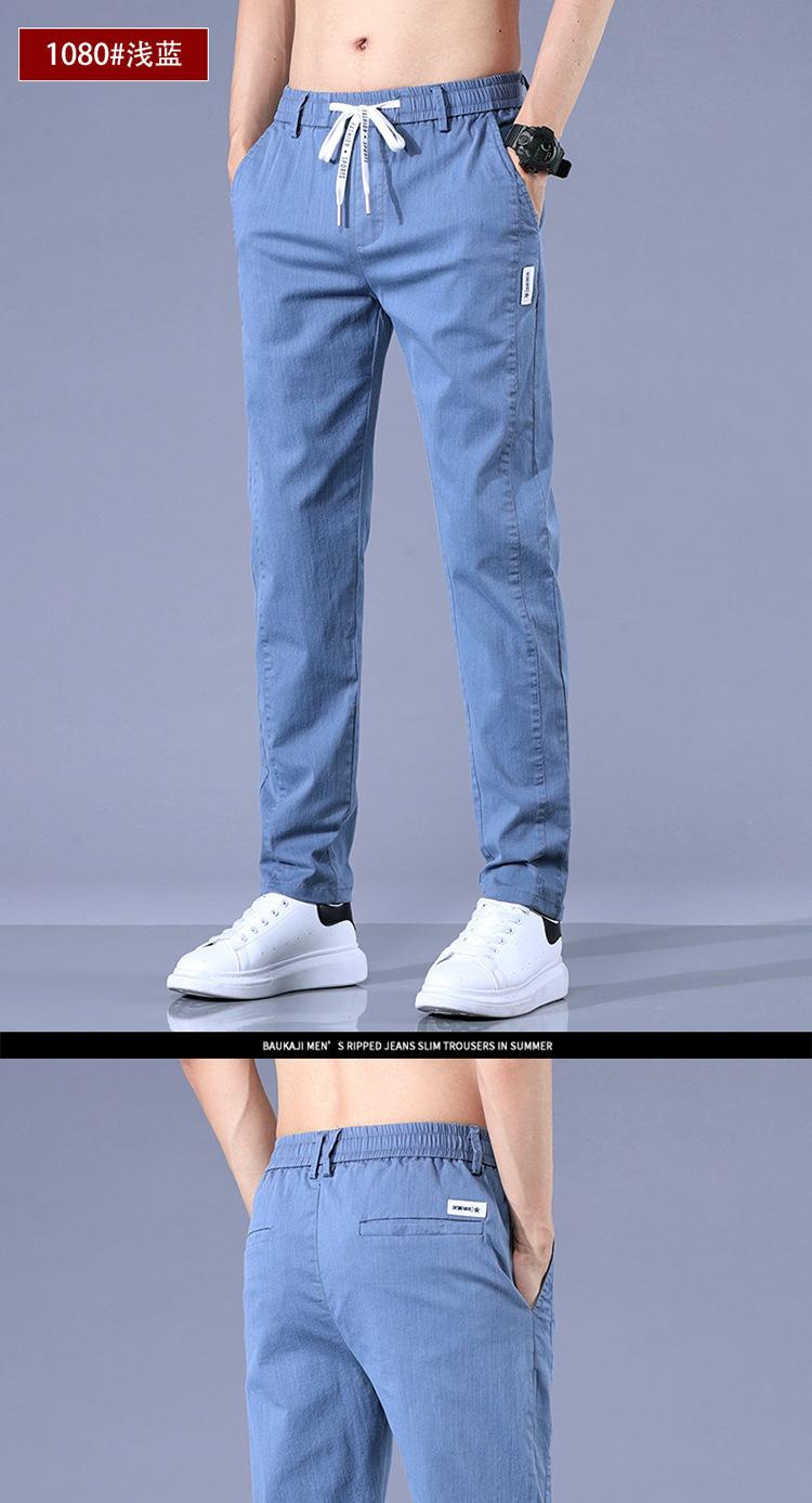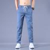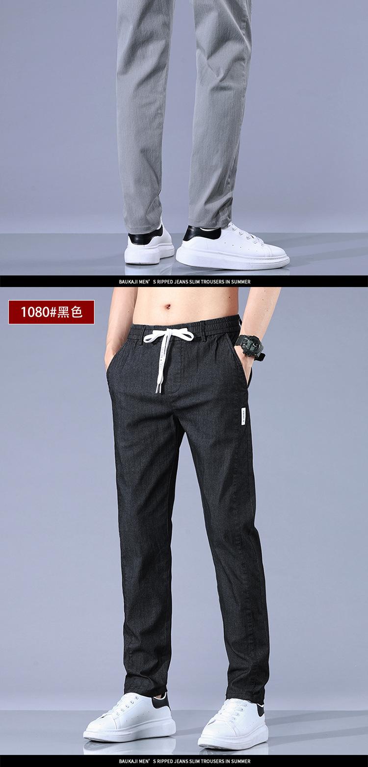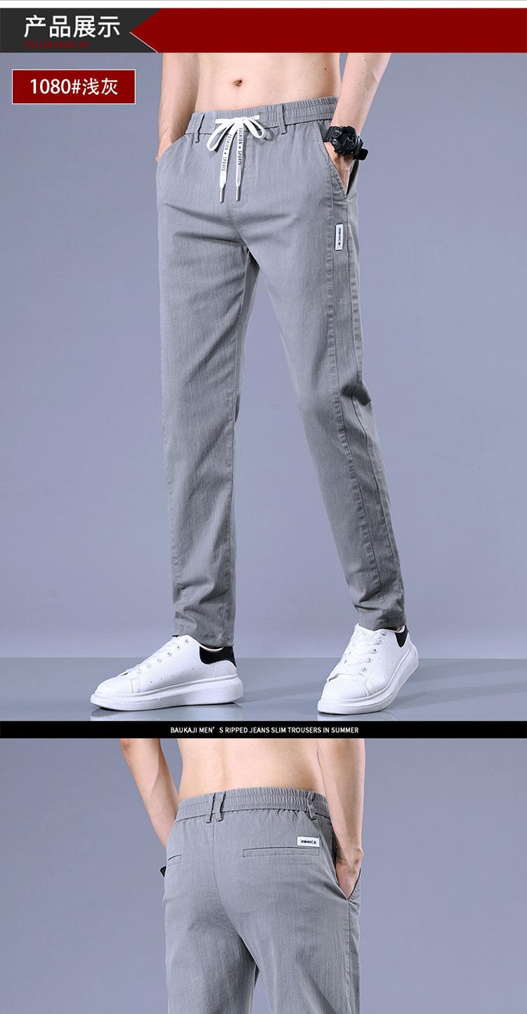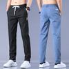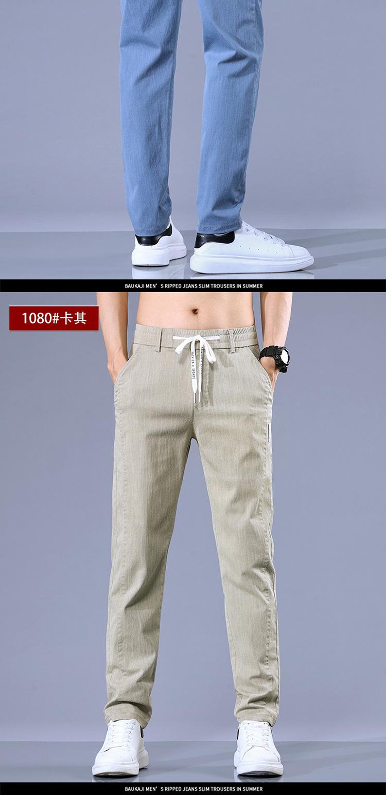 Calças casuais masculinas regulares de primavera e verão, pequenas, retas, finas, com cintura elástica, da moda, calças compridas para todos os tipos de homens jovens